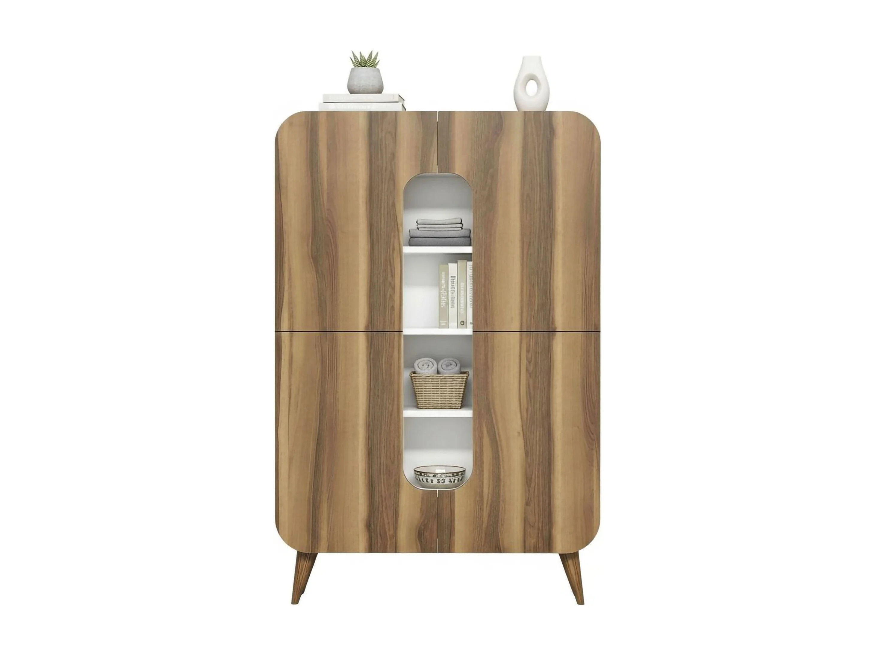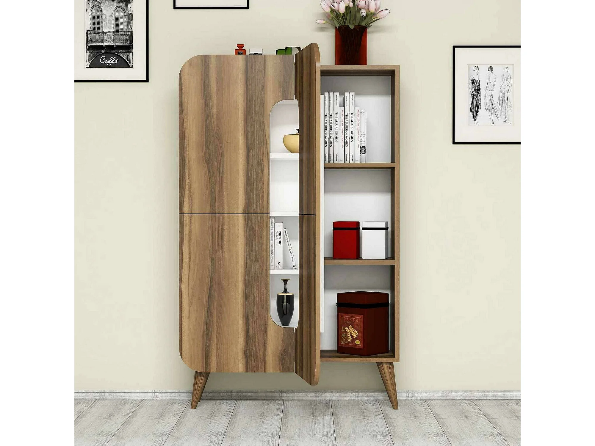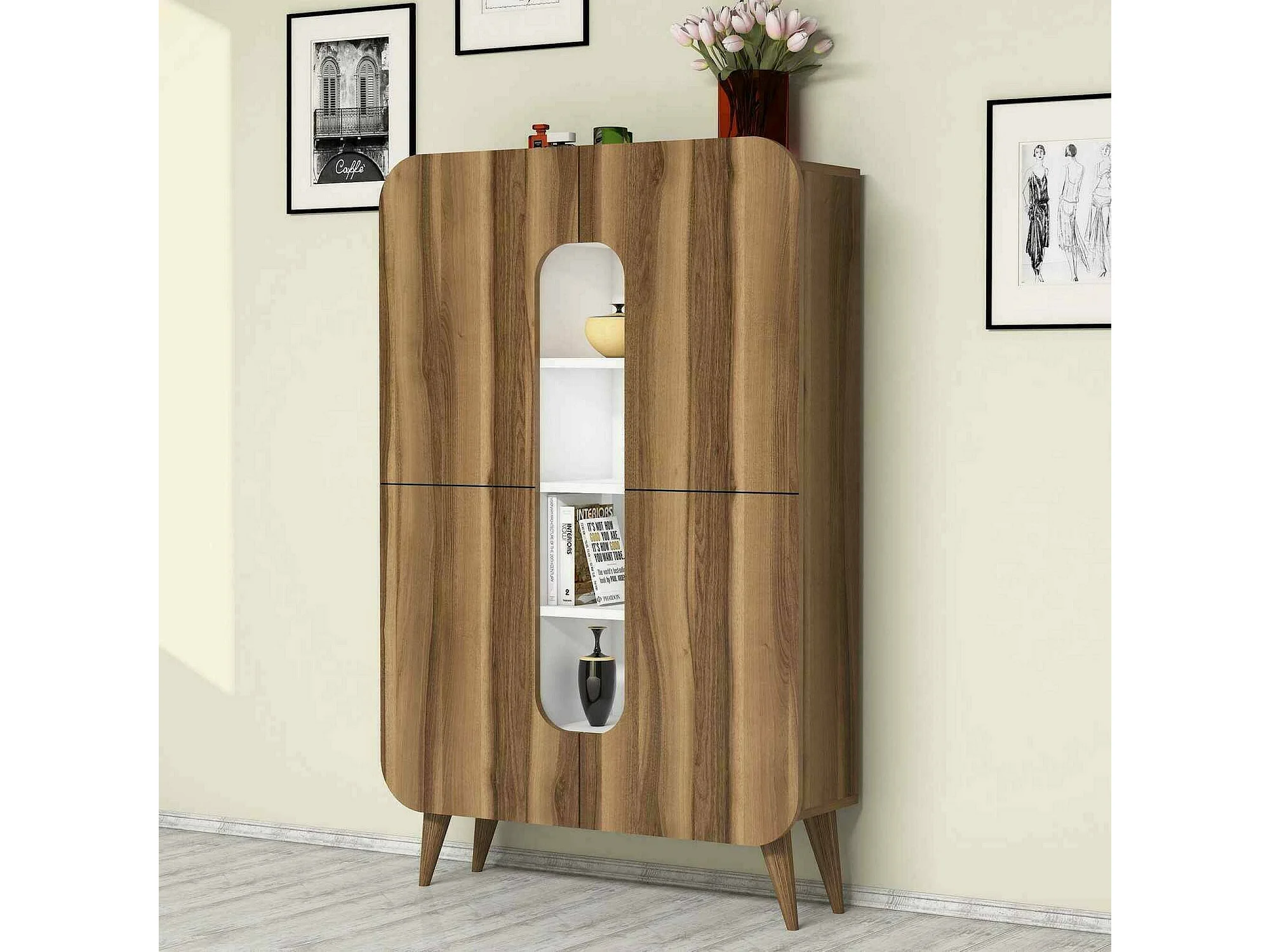 Aparador Dgaudenz, Buffet de sala de estar, Madia de sala de estar,Despensa de cozinha, 93x32h144 cm, Noz e Branco