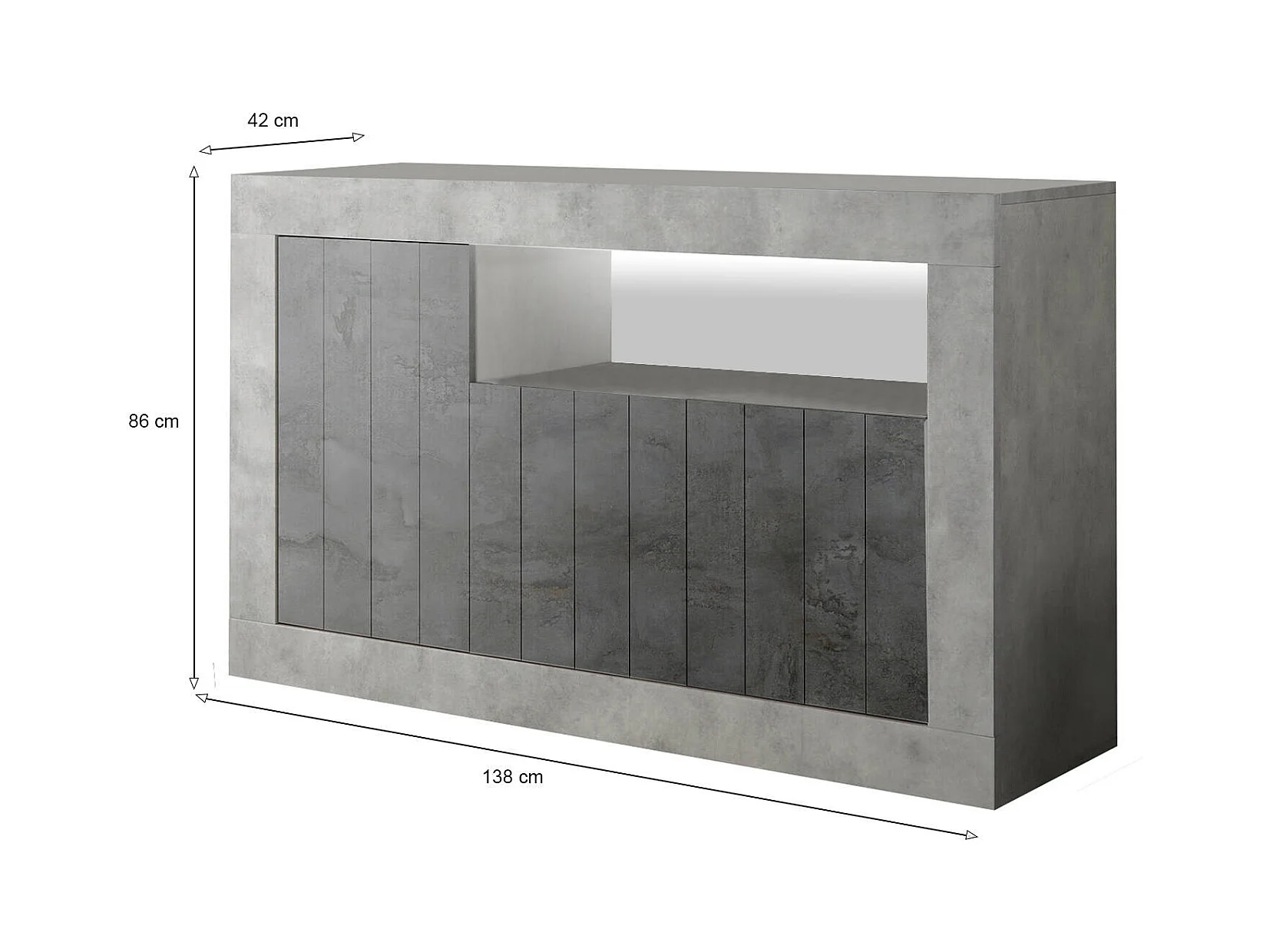 Aparador diguodal, Buffet de sala, Aparador de sala, Despensa de cozinha, Fabricado em Itália, 138x42 h86 cm, Cimento e Ardósia