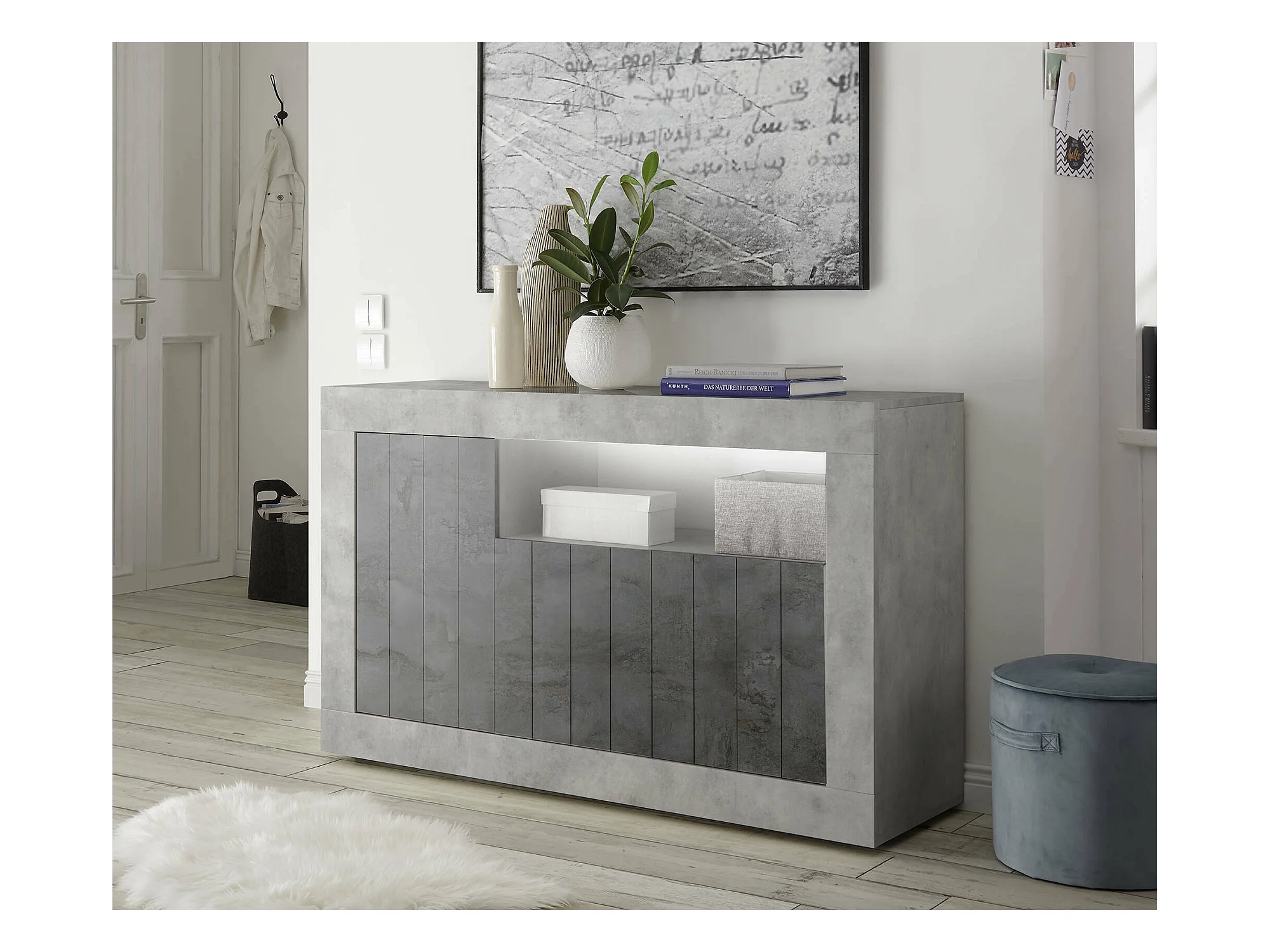 Aparador Noel, Aparador de cozinha com 4 portas, Buffet de sala, 100% Fabricado na Itália, 162x44h86 cm, Cimento