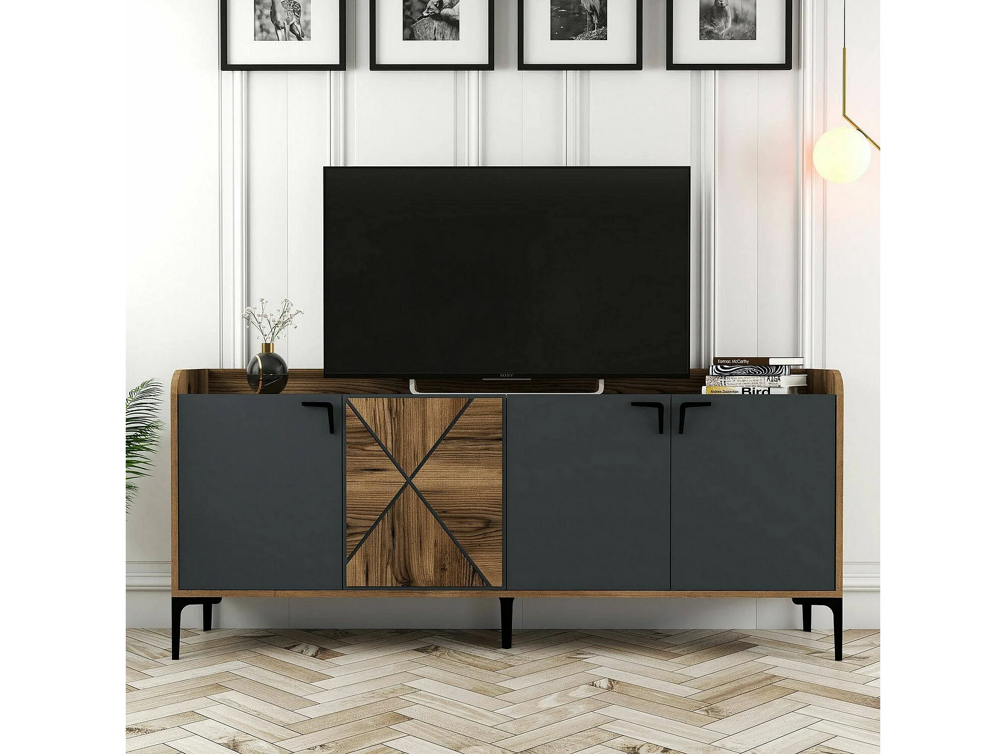 Aparador Dilici, Buffet de sala de estar, Madia de sala de estar, Despensa de cozinha, 180x35h78 cm, Nogueira e Antracite