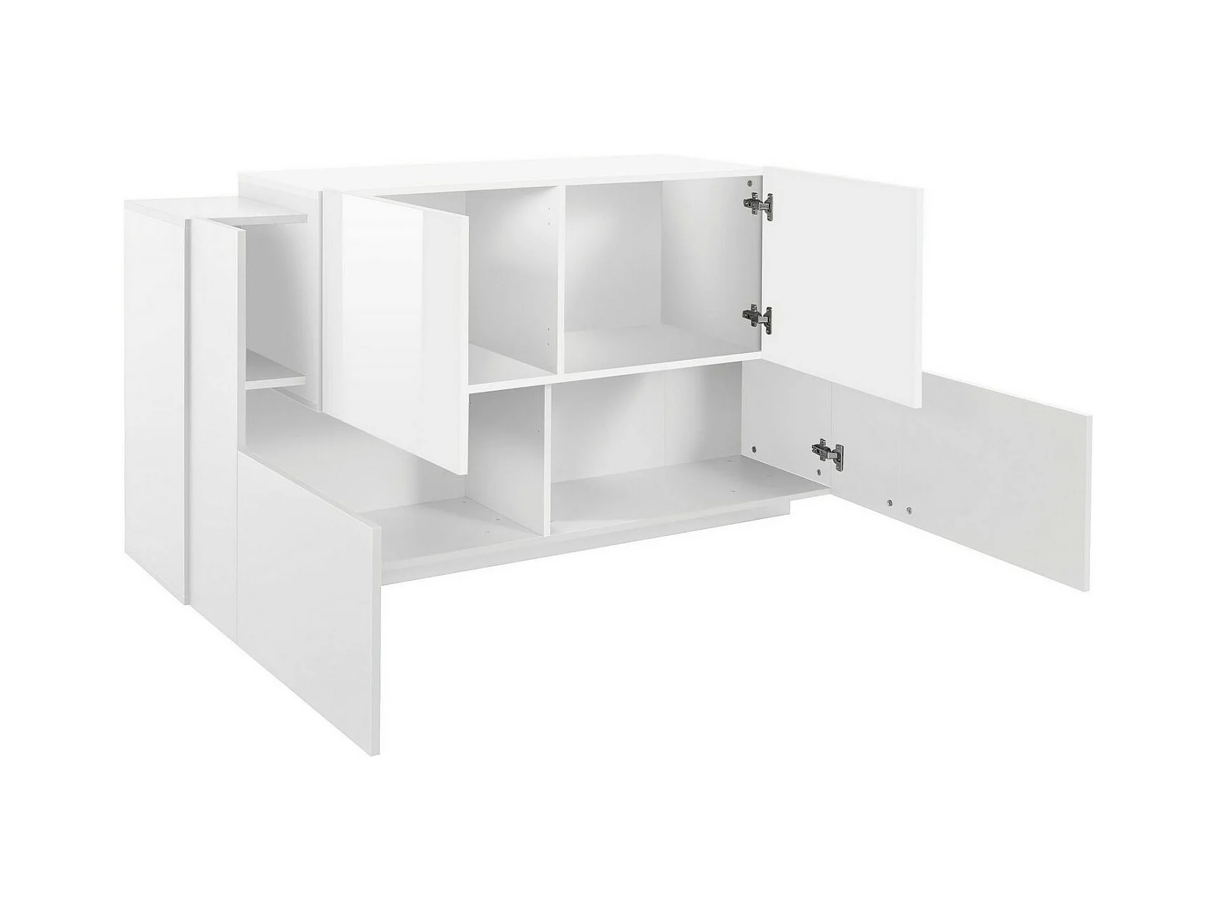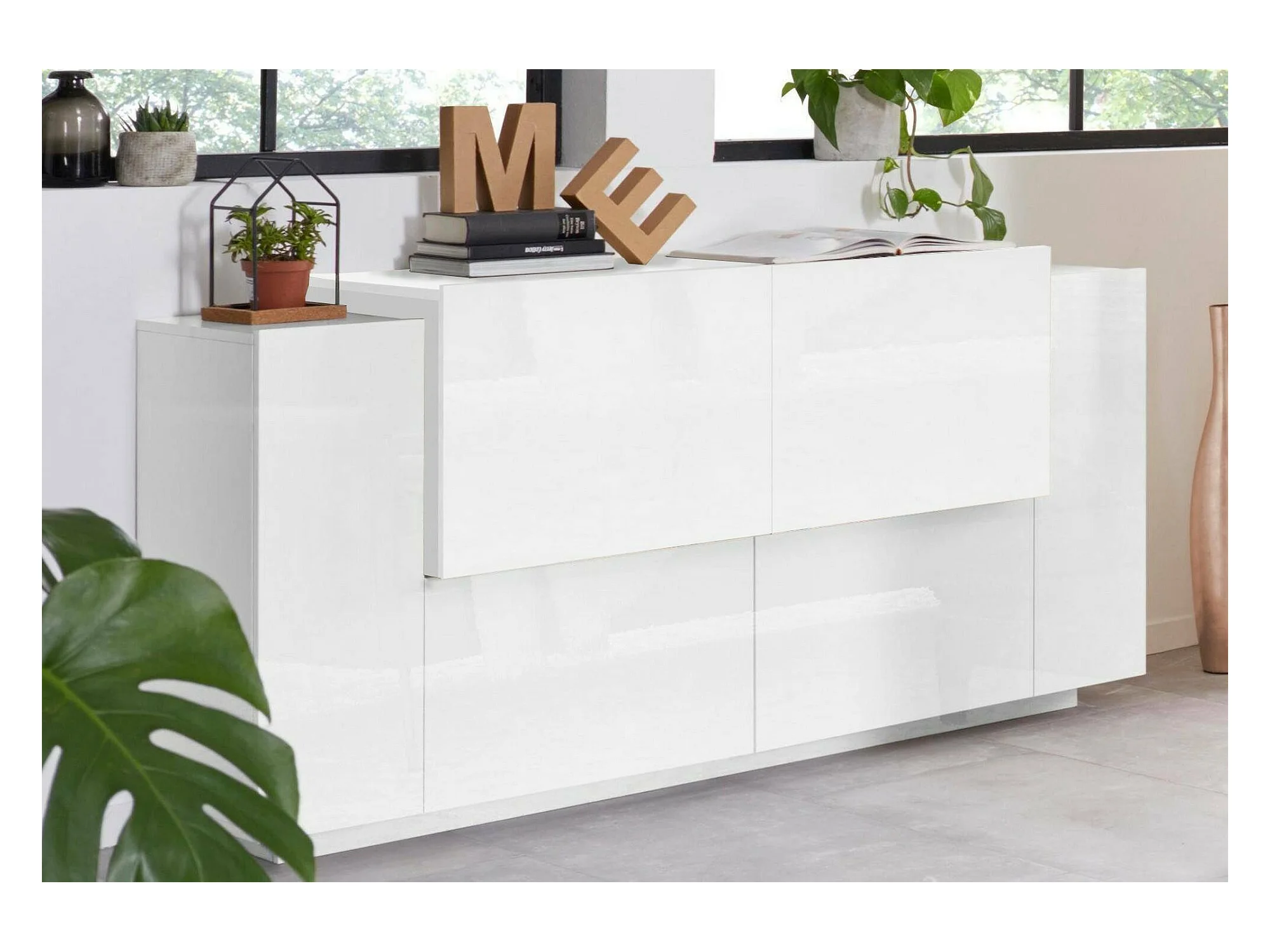 Aparador Dlenz, Aparador de cozinha com 2 portas e 2 gavetas, Buffet de sala, 100% Fabricado na Itália, 160x45h86 cm, Branco brilhante