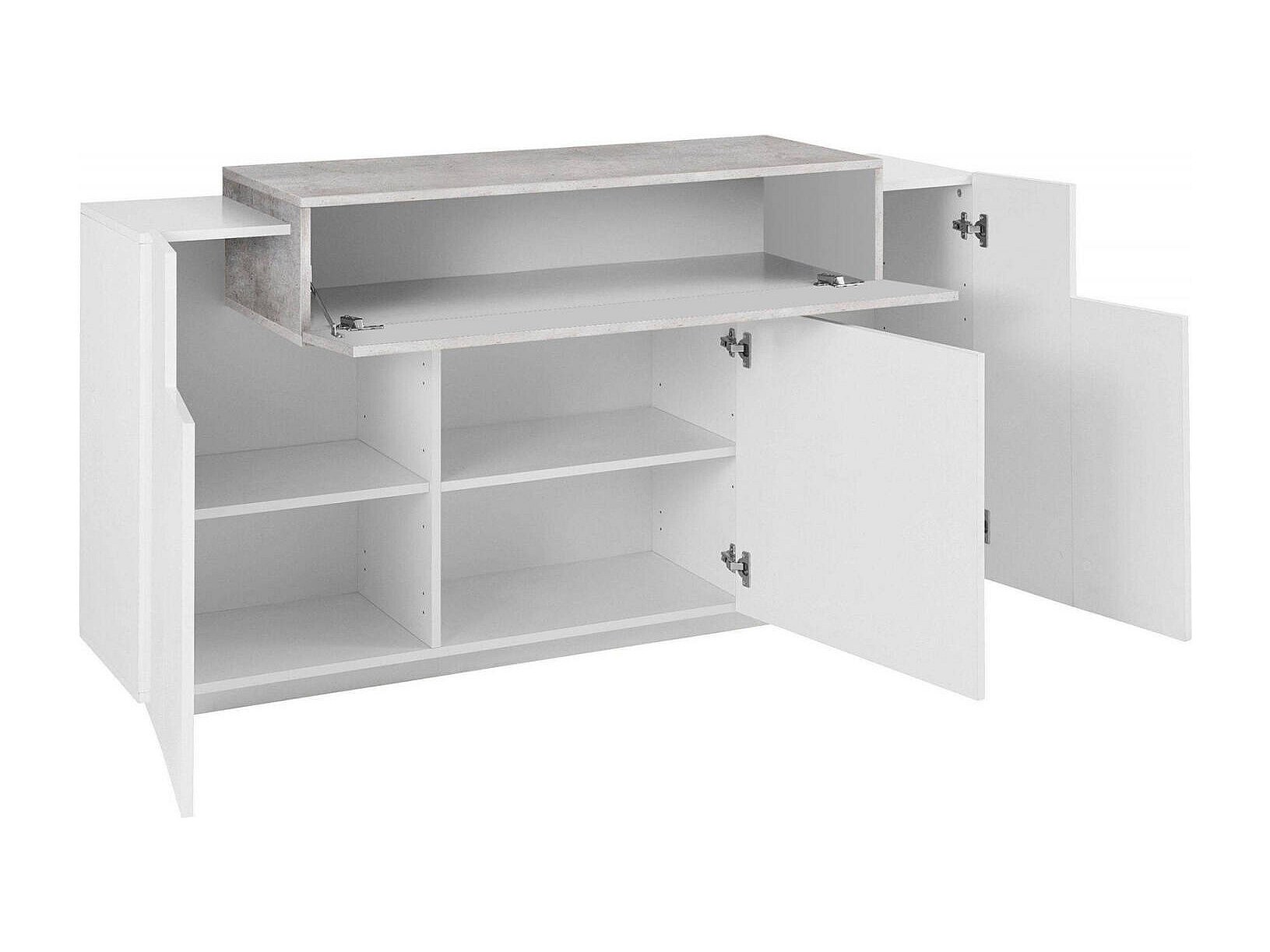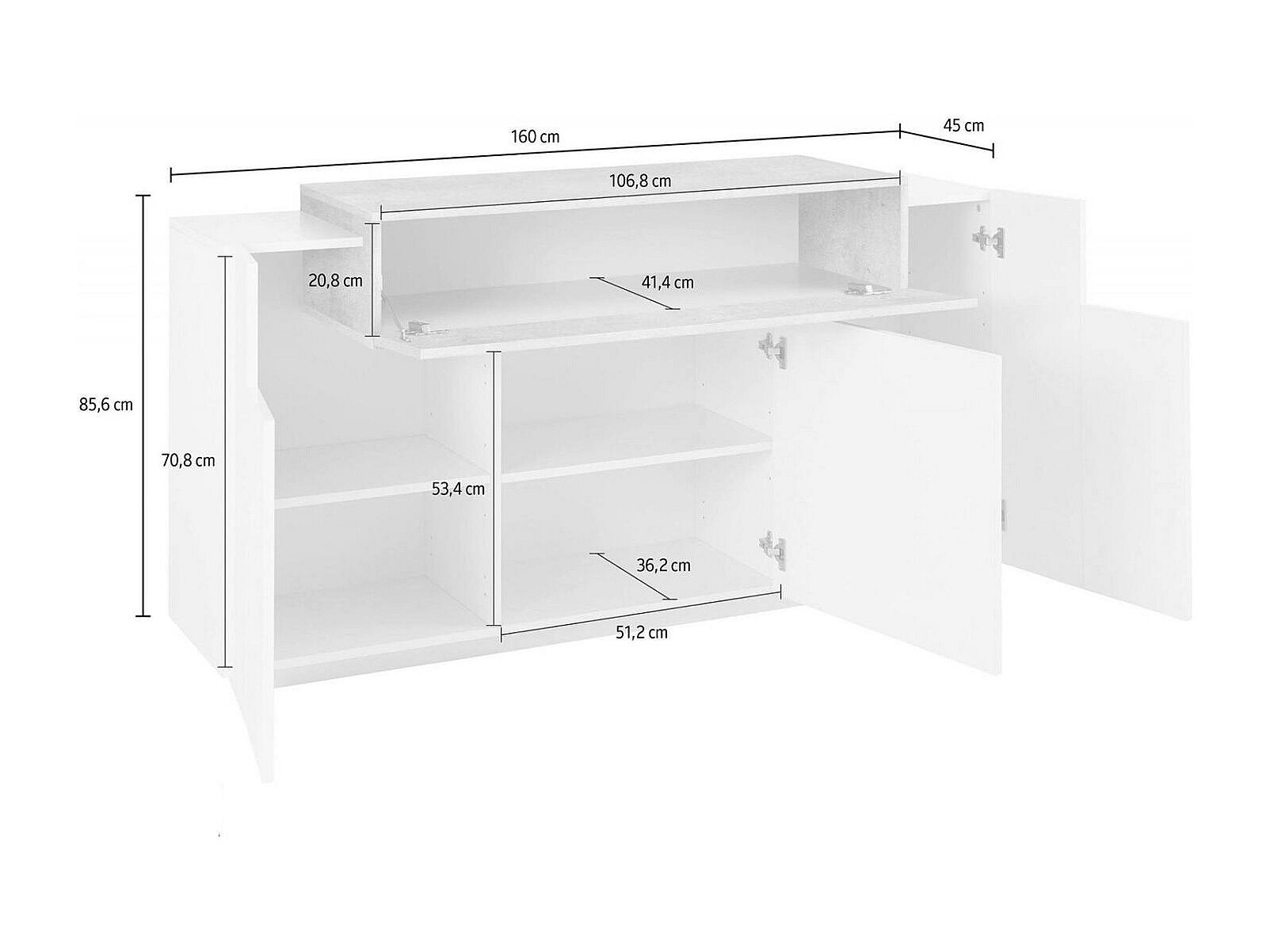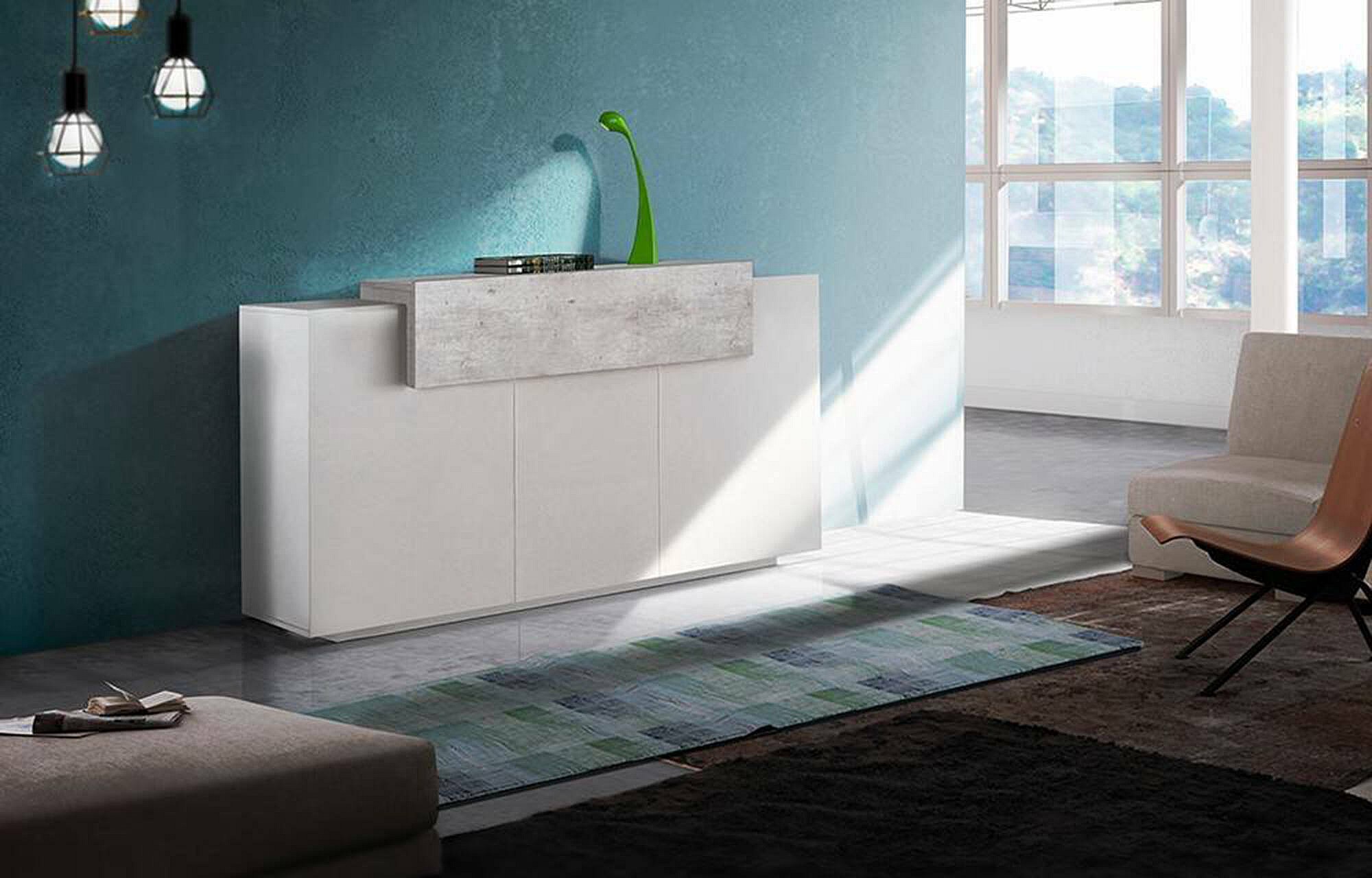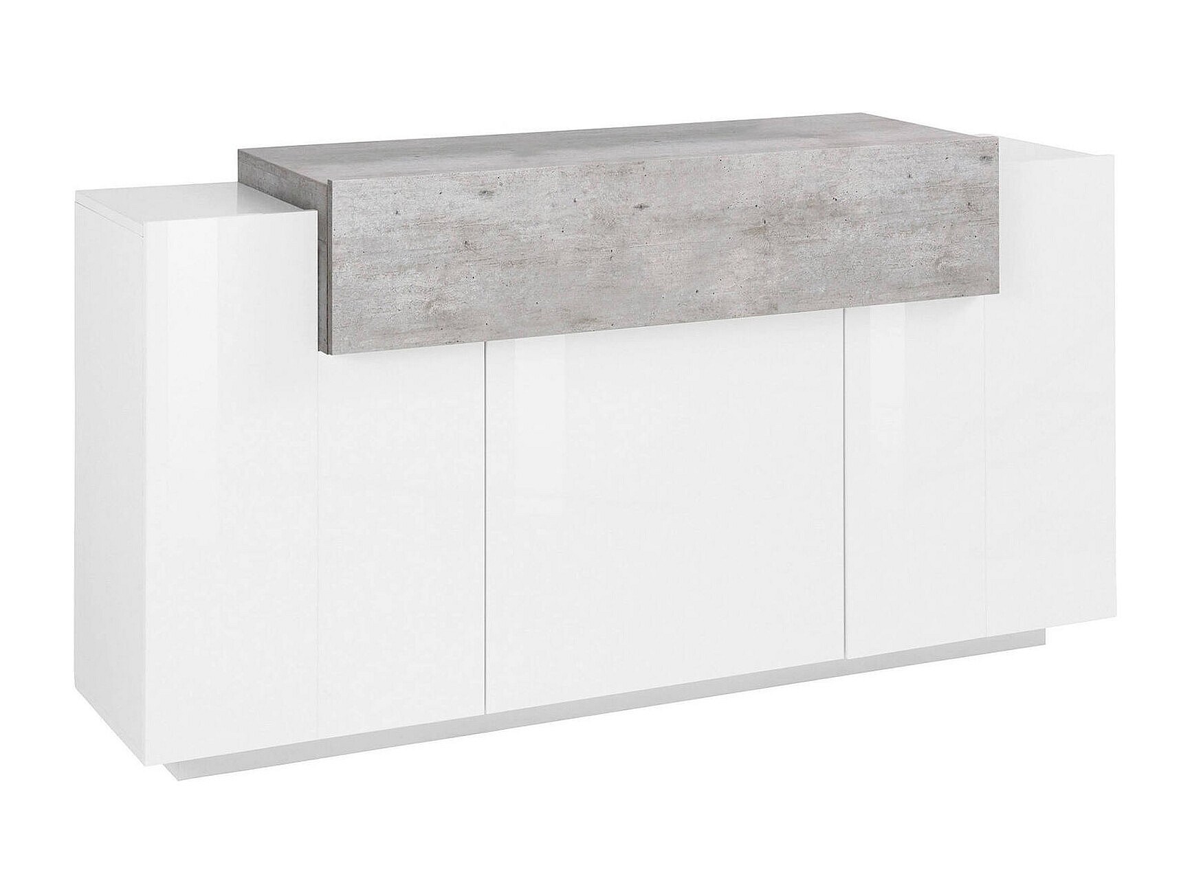 Aparador Dmem, aparador de cozinha 3 portas, Buffet de sala, 100% Fabricado na Itália, 160x45h86 cm, Branco brilhante e concreto