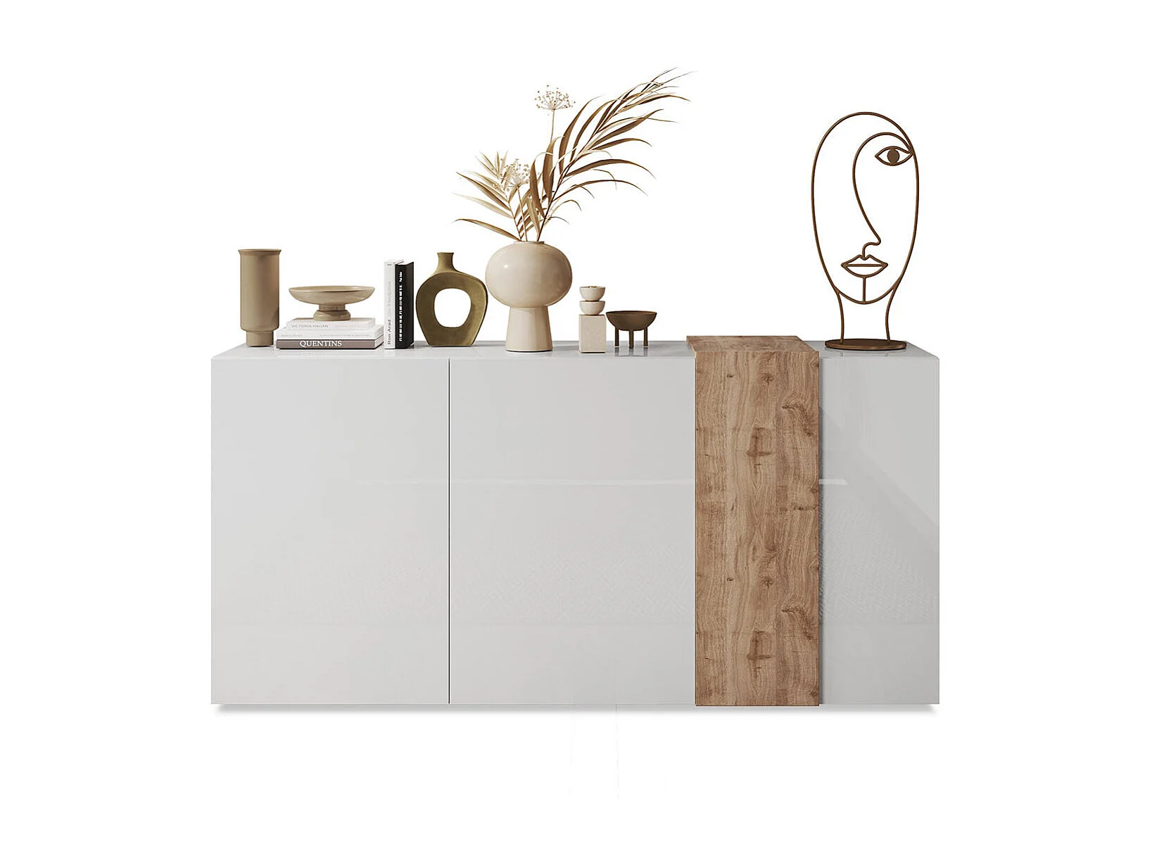 Aparador Dmiddleto, Buffet de sala, Aparador de sala, despensa de cozinha, Fabricado em Itália, 181x44 h86 cm, Knot Oak e Branco Brilhante