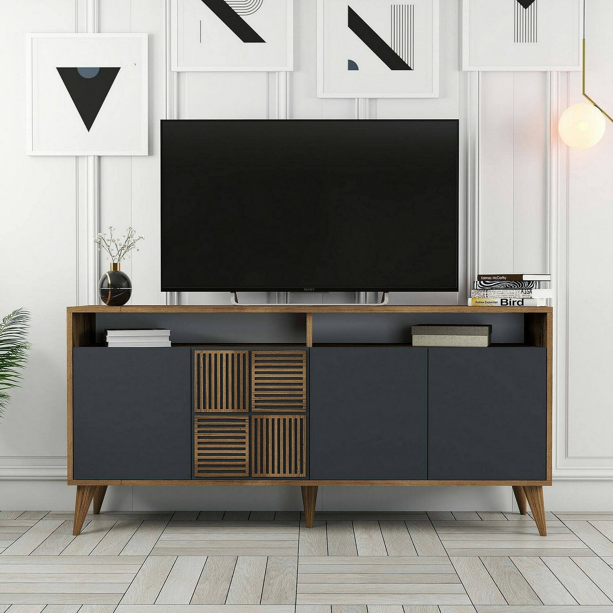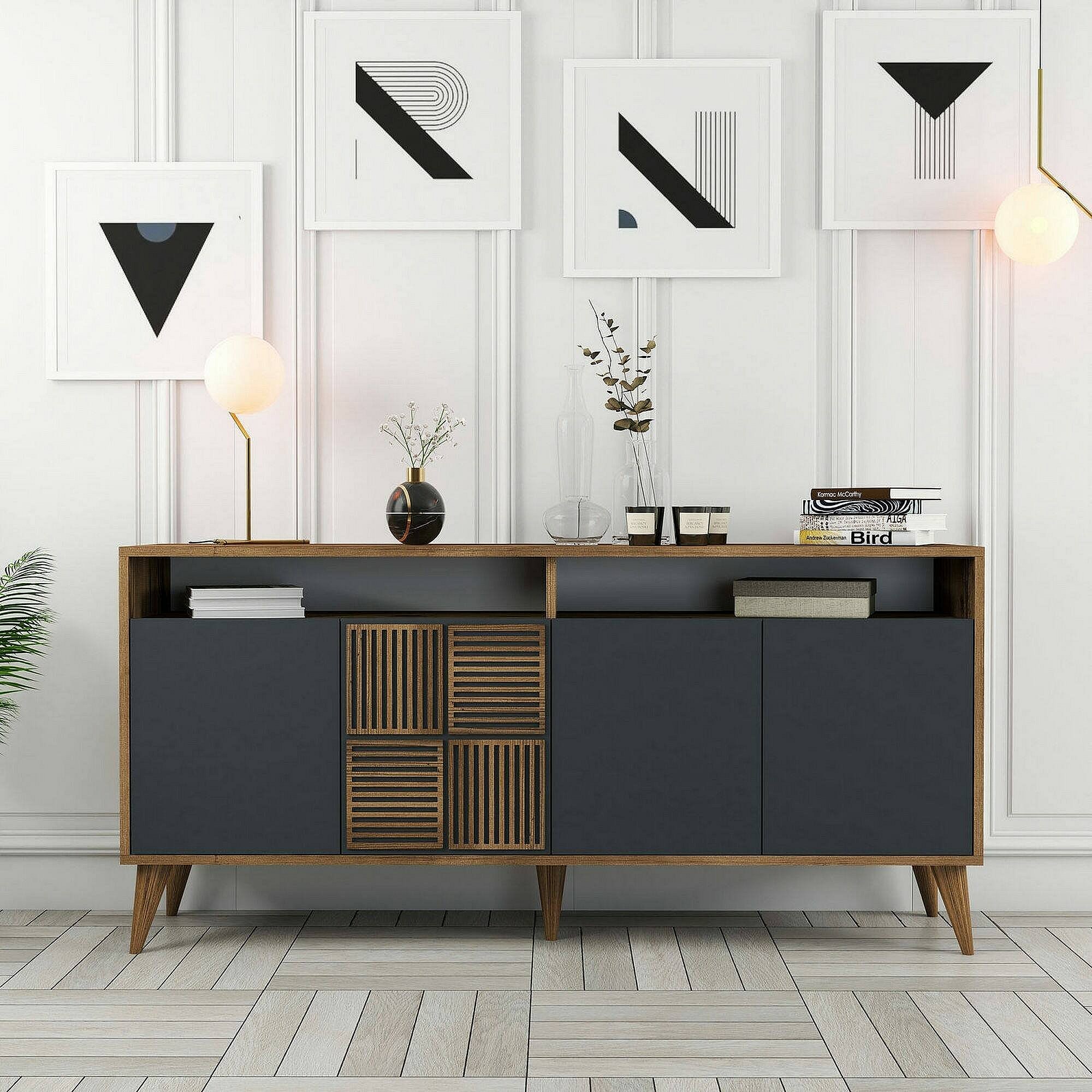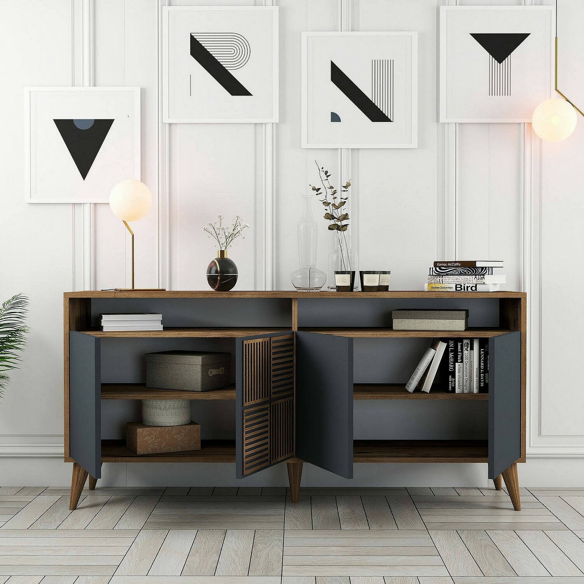 Aparador Dpiccion, BuffetSala de estar, Madia para sala de estar, Despensa de cozinha, 160x35h79 cm, Noz e Antracite