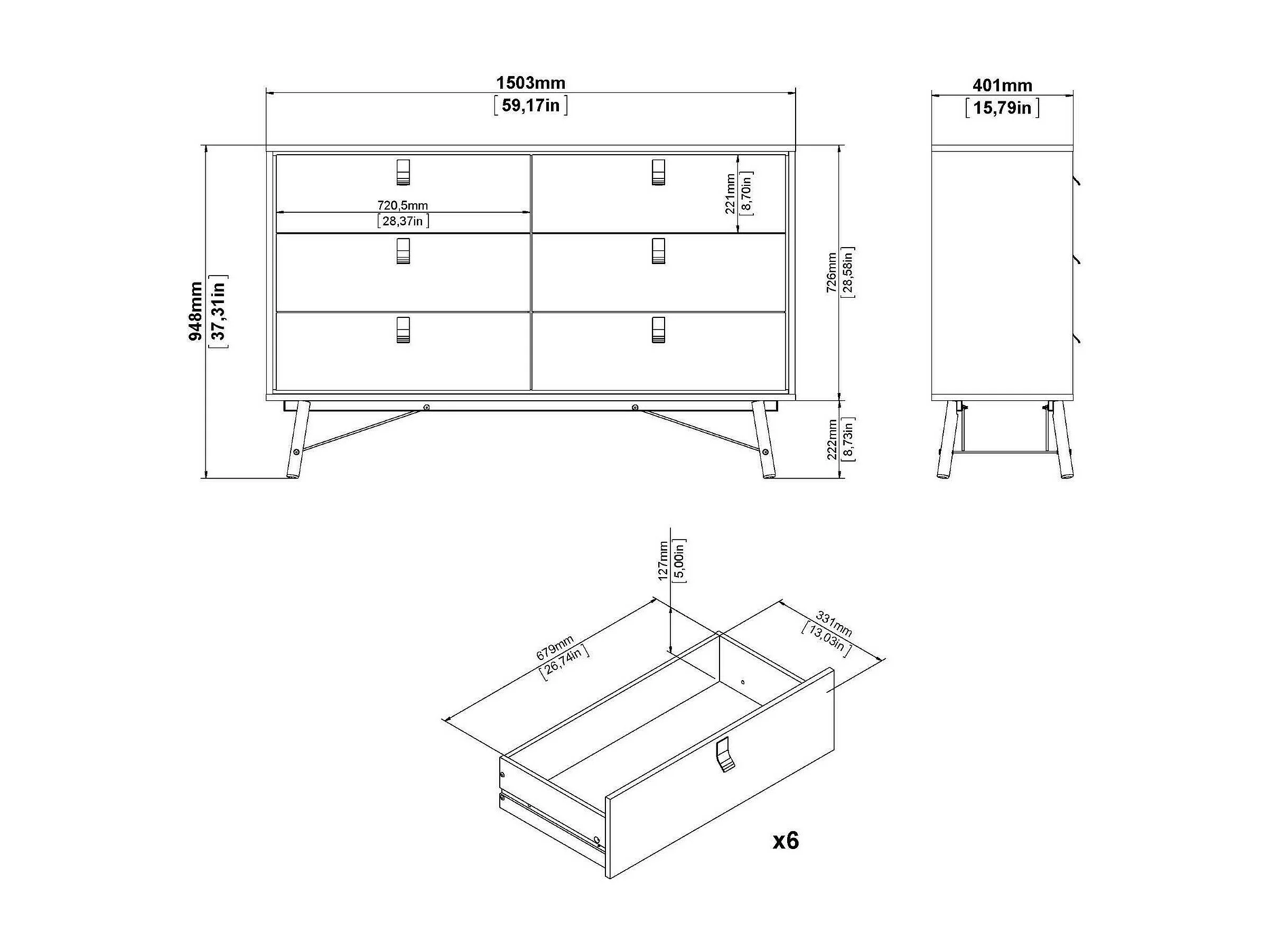 Cómoda 8 gavetas 67,5x30x100cm - Estrutura em metal, gavetas com puxadores em tecido - Padrões retro - Preto
