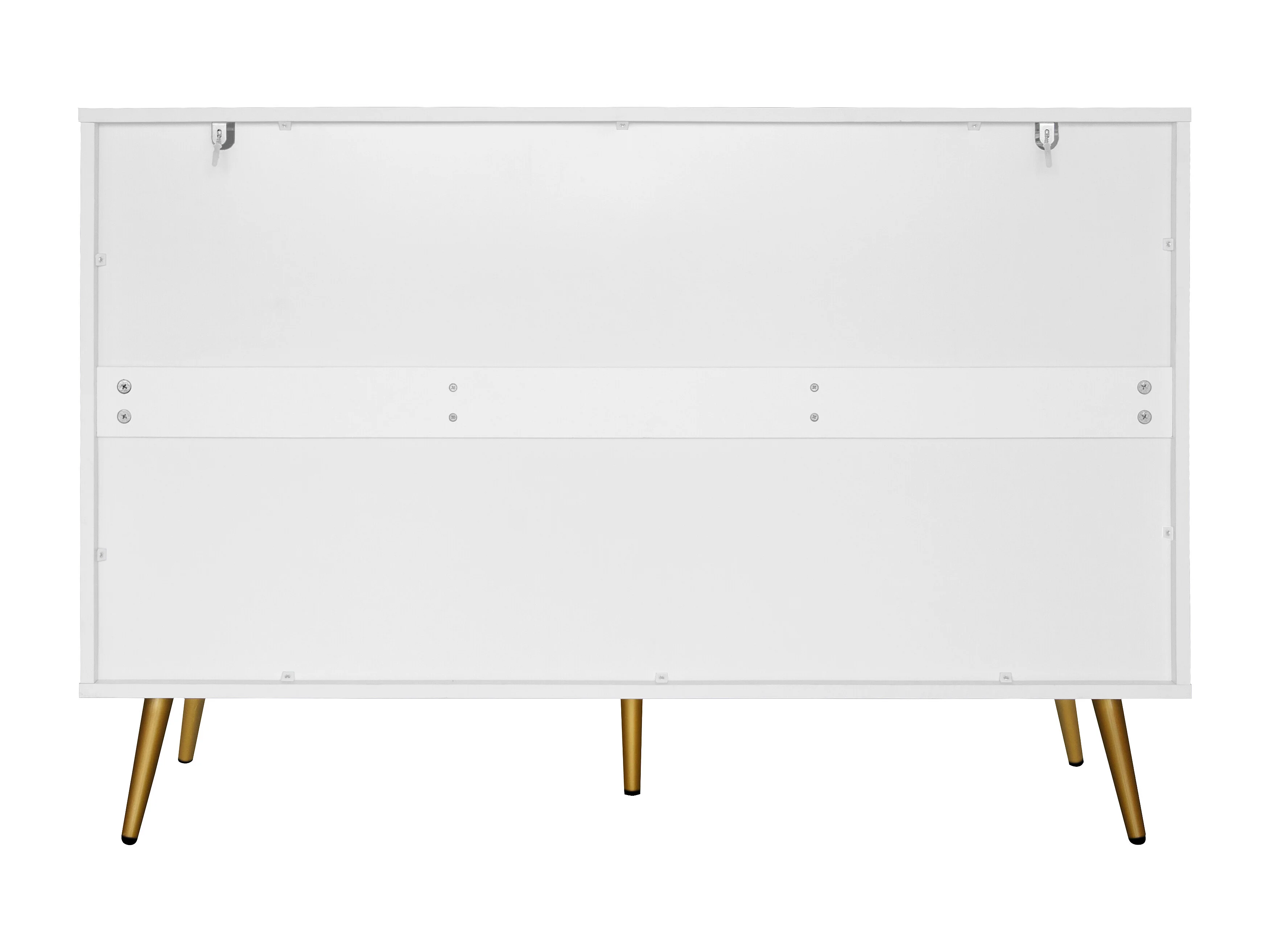 Aparador elegante branco, 120 x 40 x 80 cm, 3 gavetas, 2 portas, pés dourados, padrão diamante.