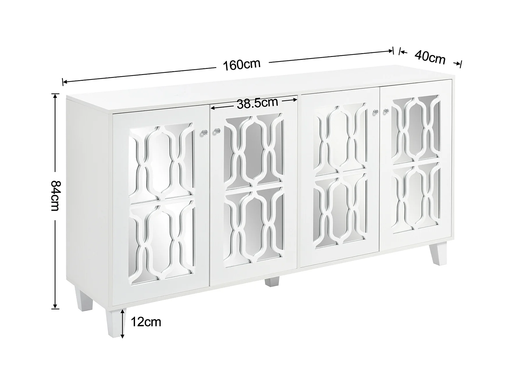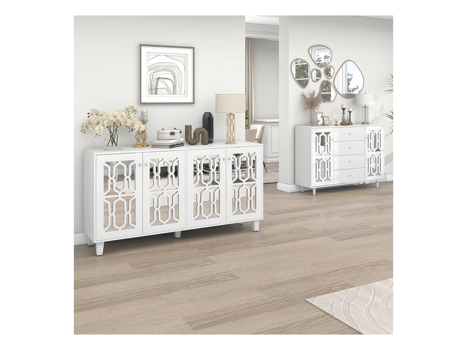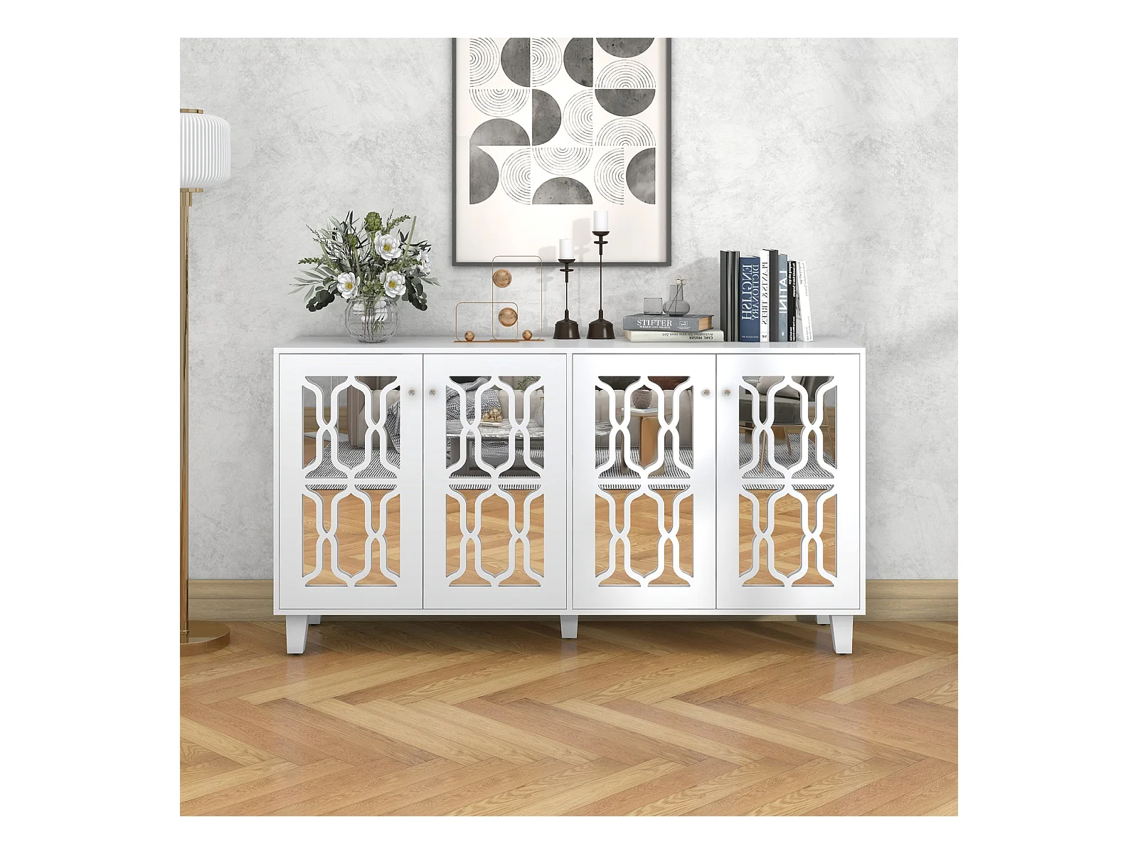 Aparador elegante com espelho branco, aparador versátil – 4 portas, prateleira ajustável