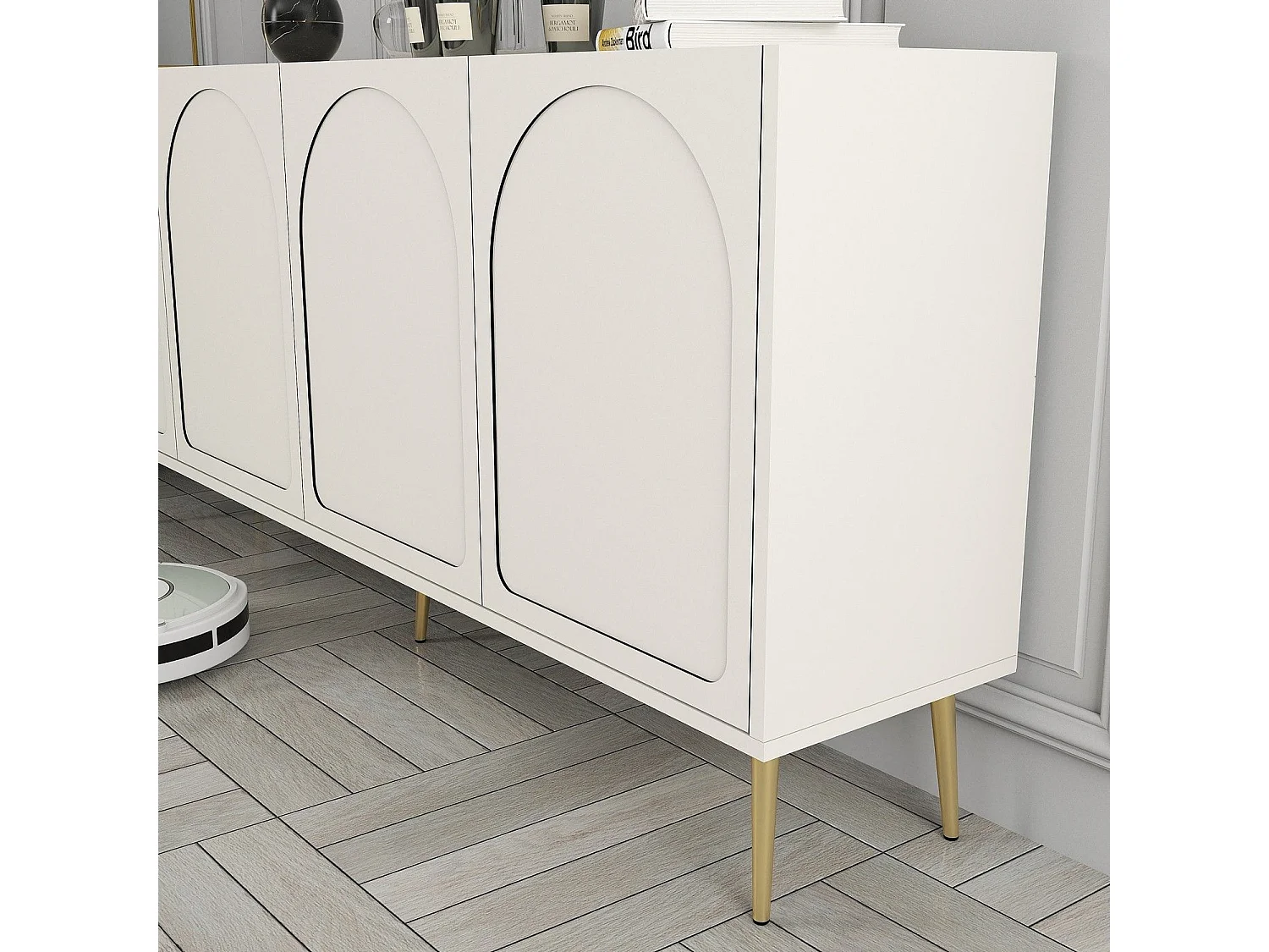 Aparador Elegante em Creme e Dourado – 180 x 80 x 35 cm – Aglomerado de partículas revestido a melamina
