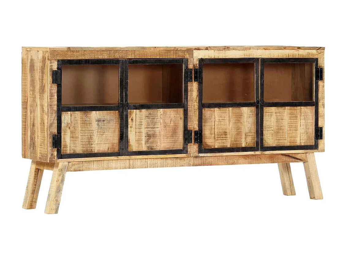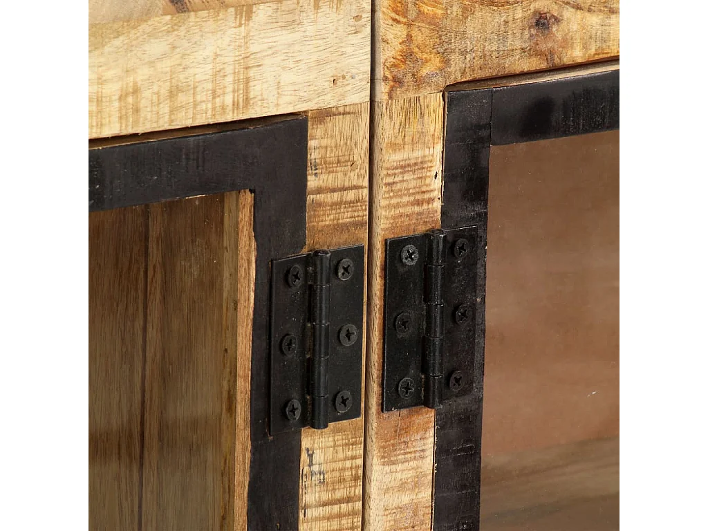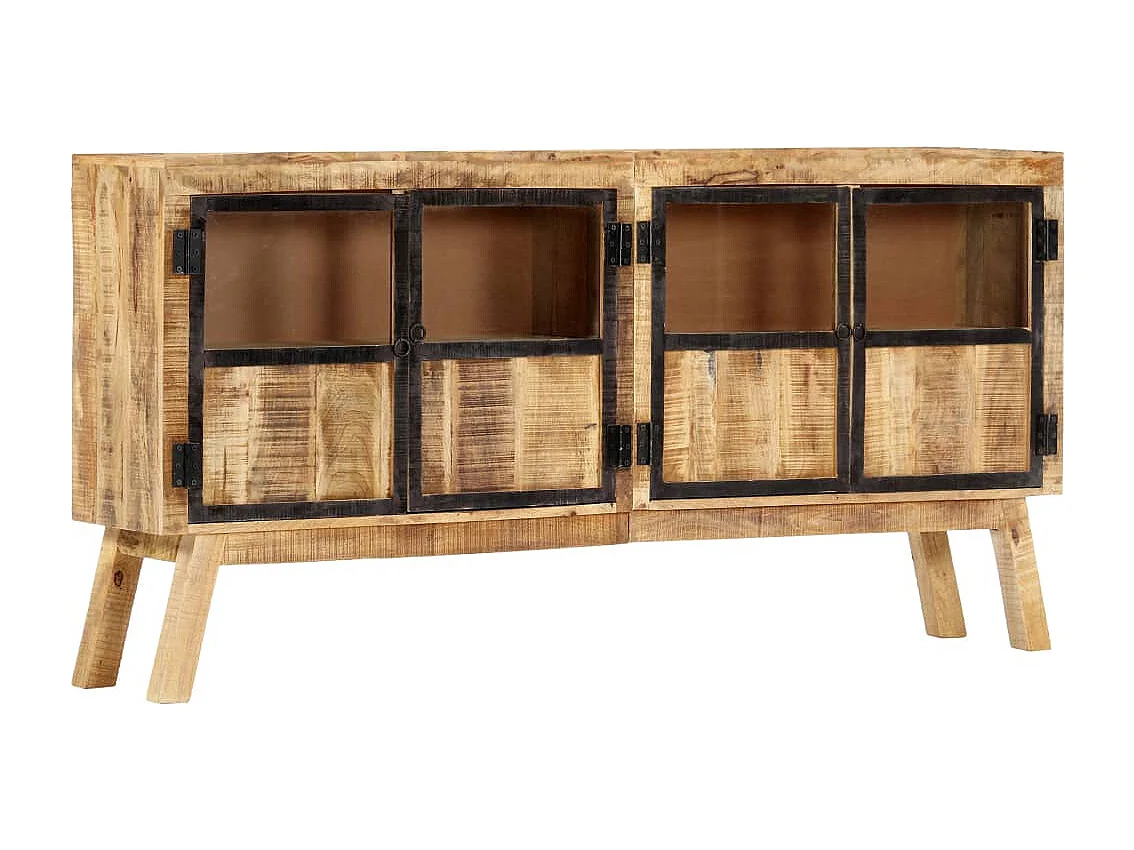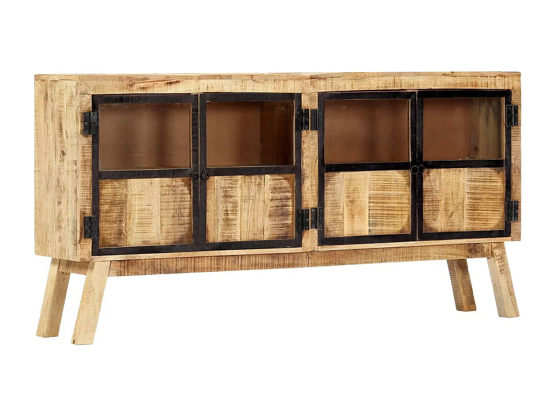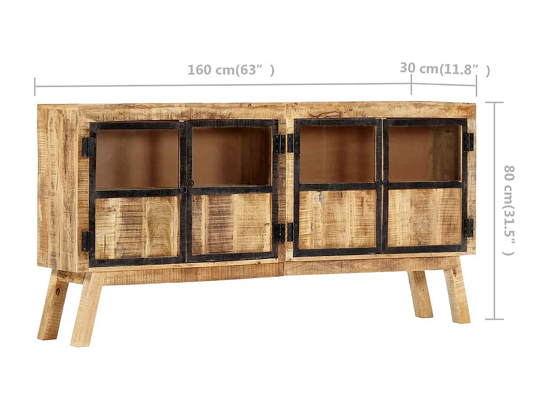 Aparador em mangueira maciça áspera 160x30x80 cm castanho/preto