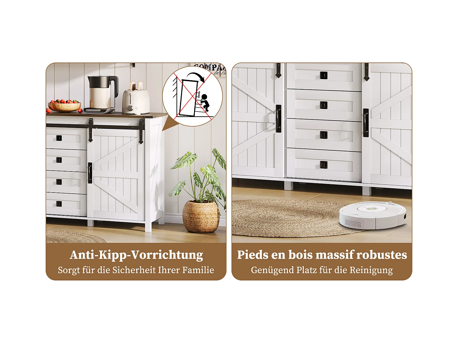 Aparador em MDF 137 cm com portas de correr e 4 gavetas, estilo vintage, para cozinha, sala, branco