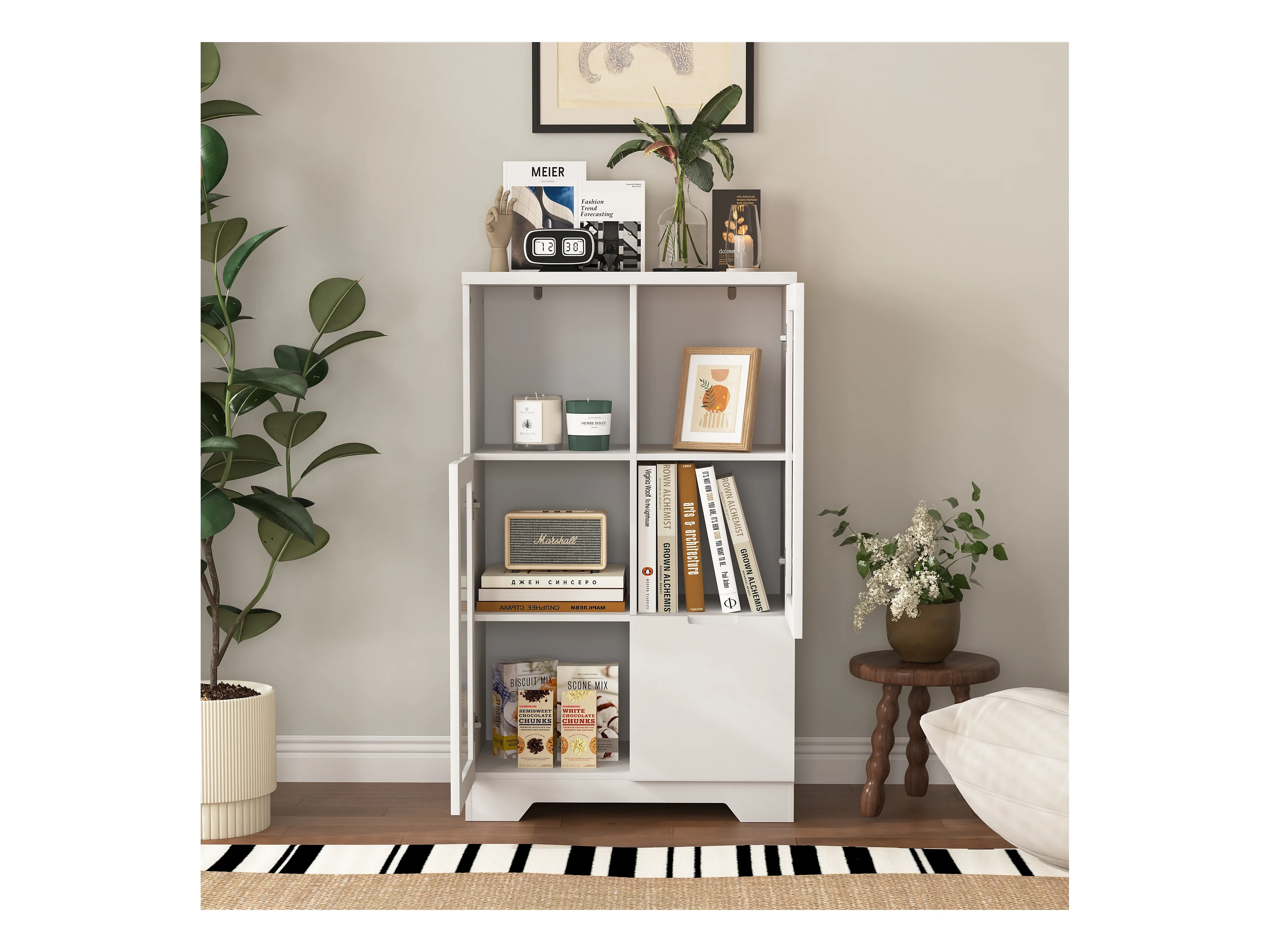 Aparador em MDF branco com portas de vidro e gaveta, arrumação multifuncional 90x40x120 cm