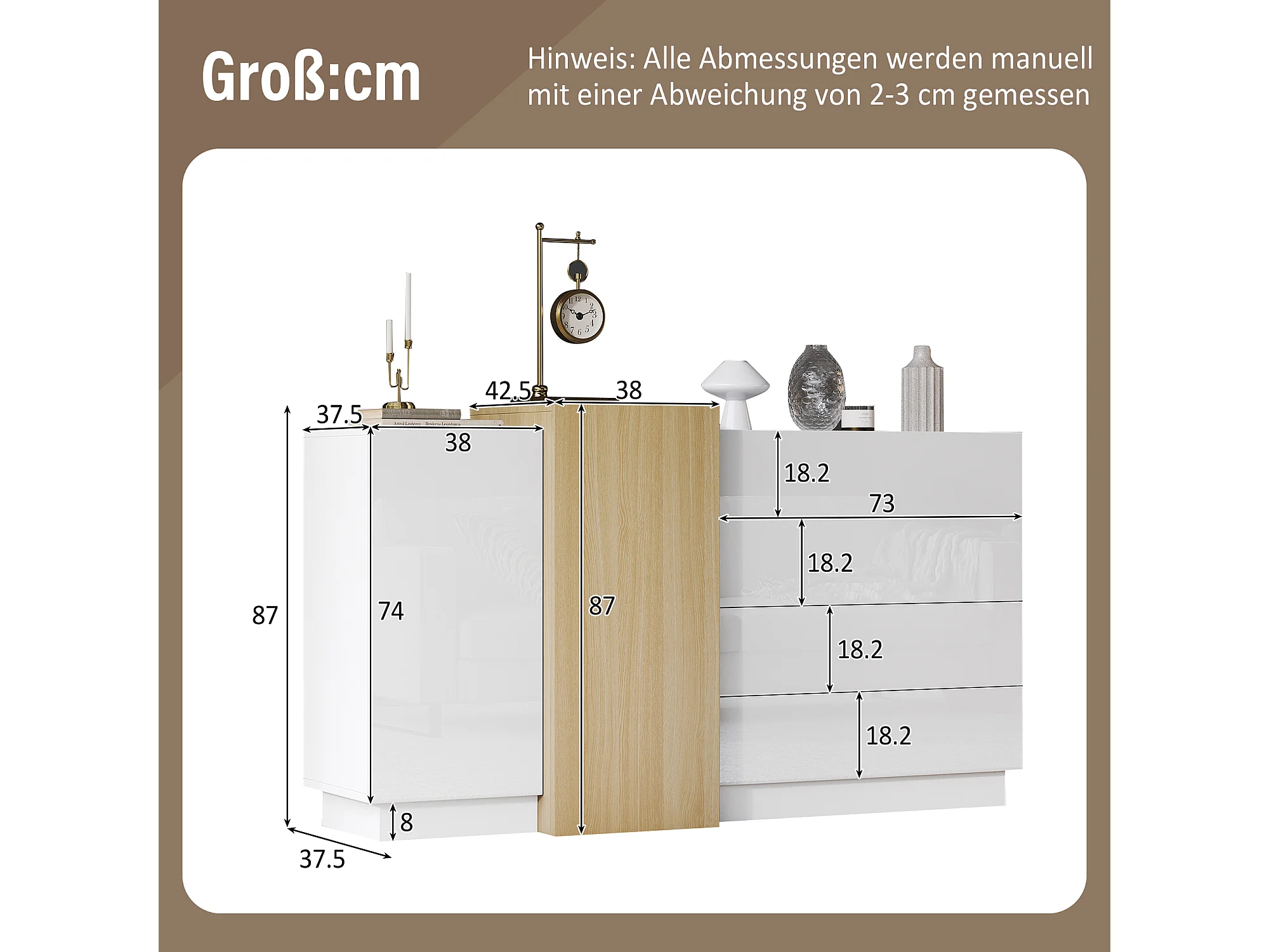 Aparador em MDF lacado branco, arrumação sem puxadores, 160 cm, sala de estar, entrada, quarto