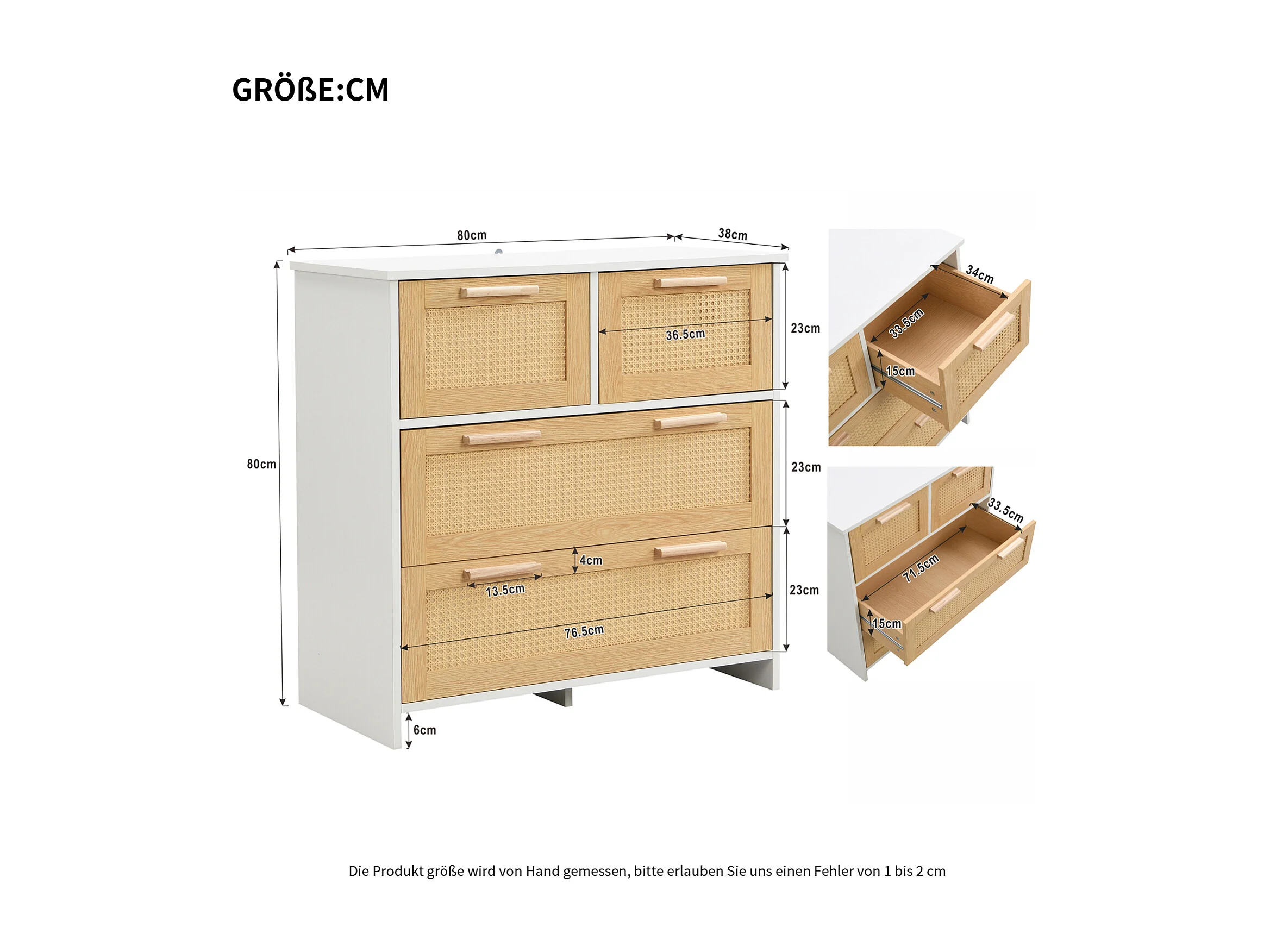 Aparador em rattan - 80 x 80 x 38 cm - com 4 gavetas - versátil para sala de estar, sala de jantar, branco