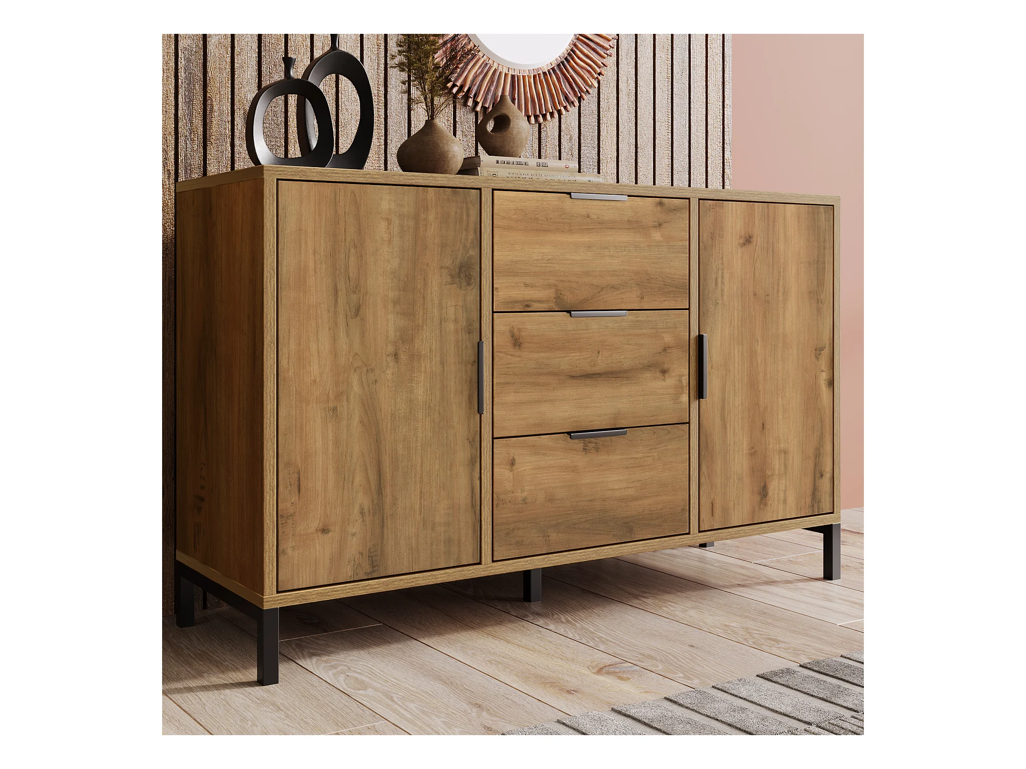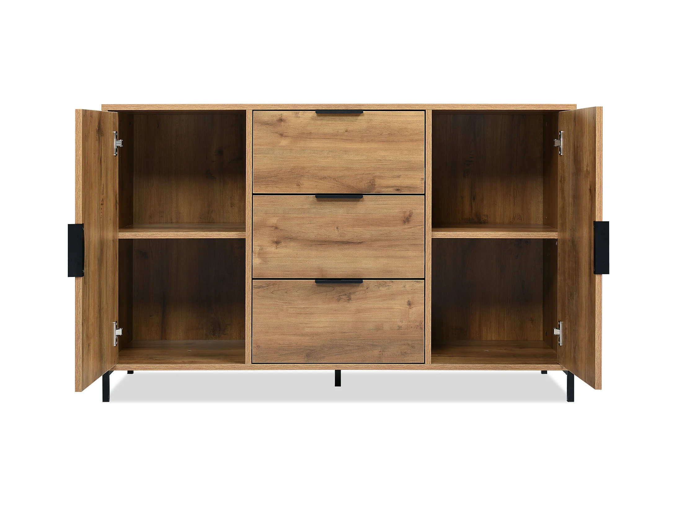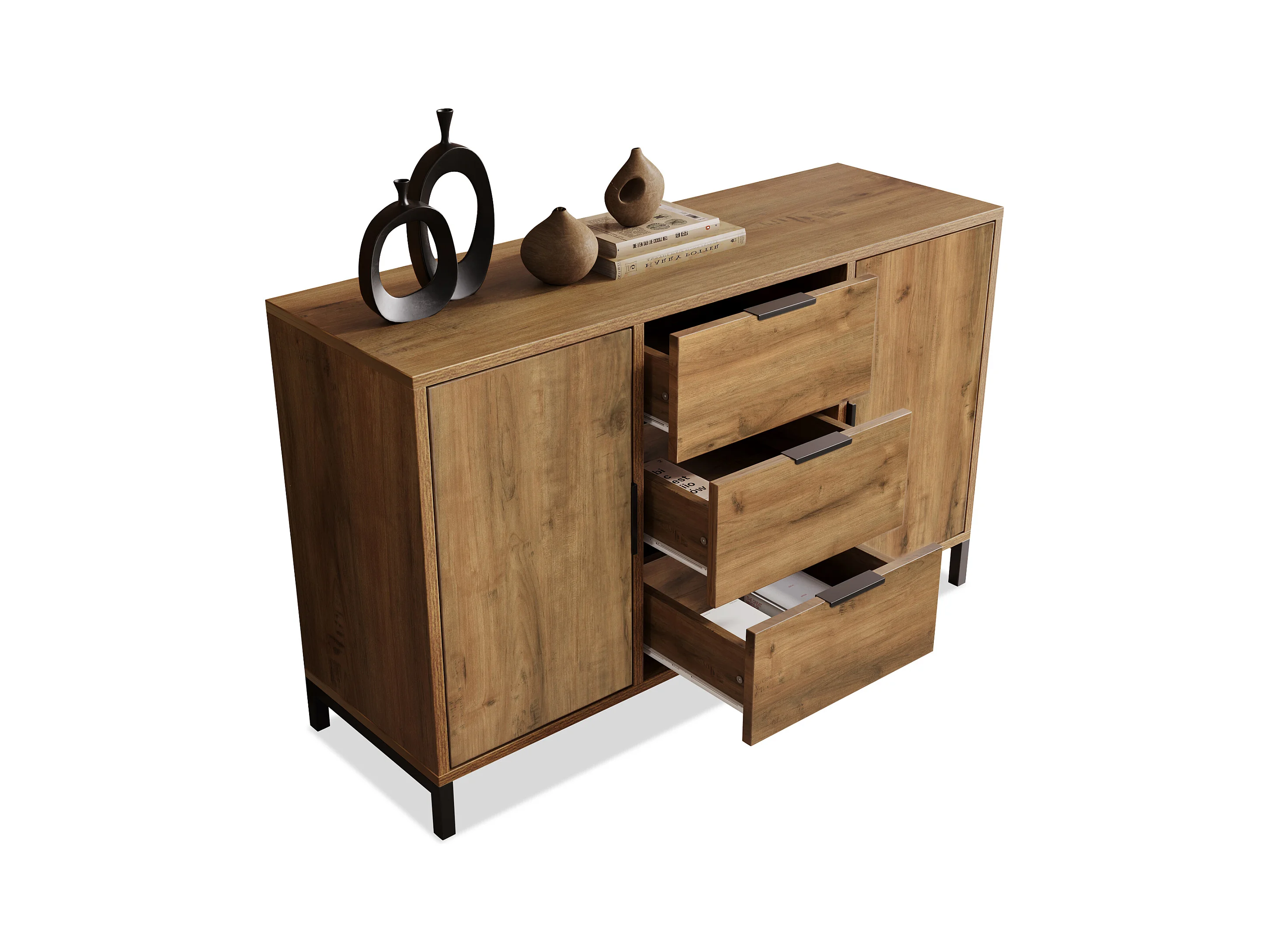 Aparador industrial 2 portas 3 gavetas MDF metal armazenamento sala quarto 120x40x76 cm