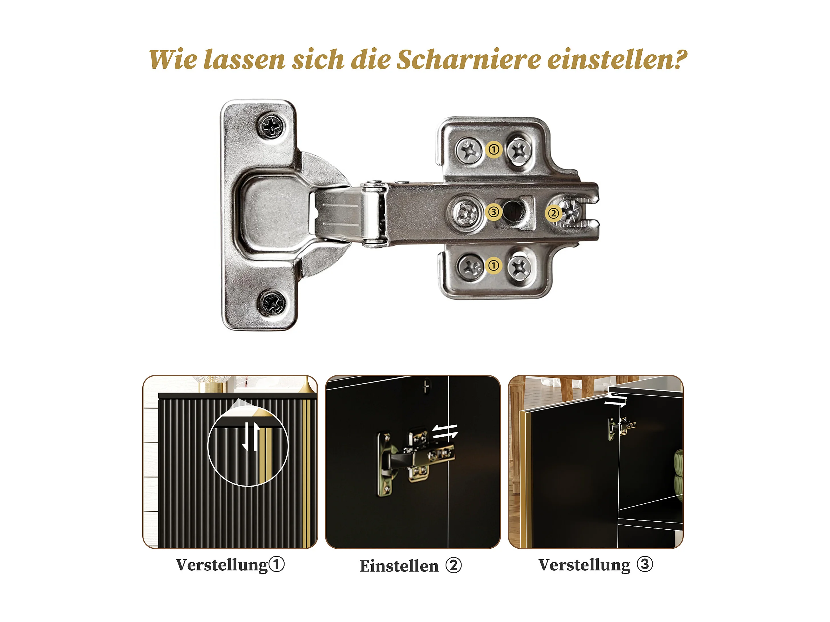 Aparador MDF 150 cm portas onduladas pés de metal reguláveis para sala cozinha preto