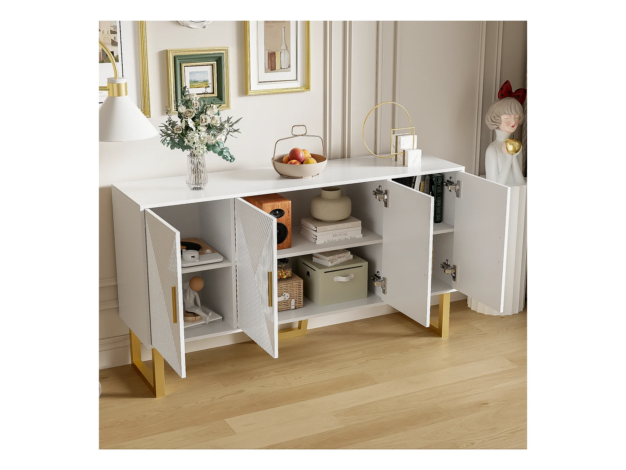 Aparador moderno branco 150 cm MDF 4 portas sala de estar luxo quarto com prateleiras ajustáveis