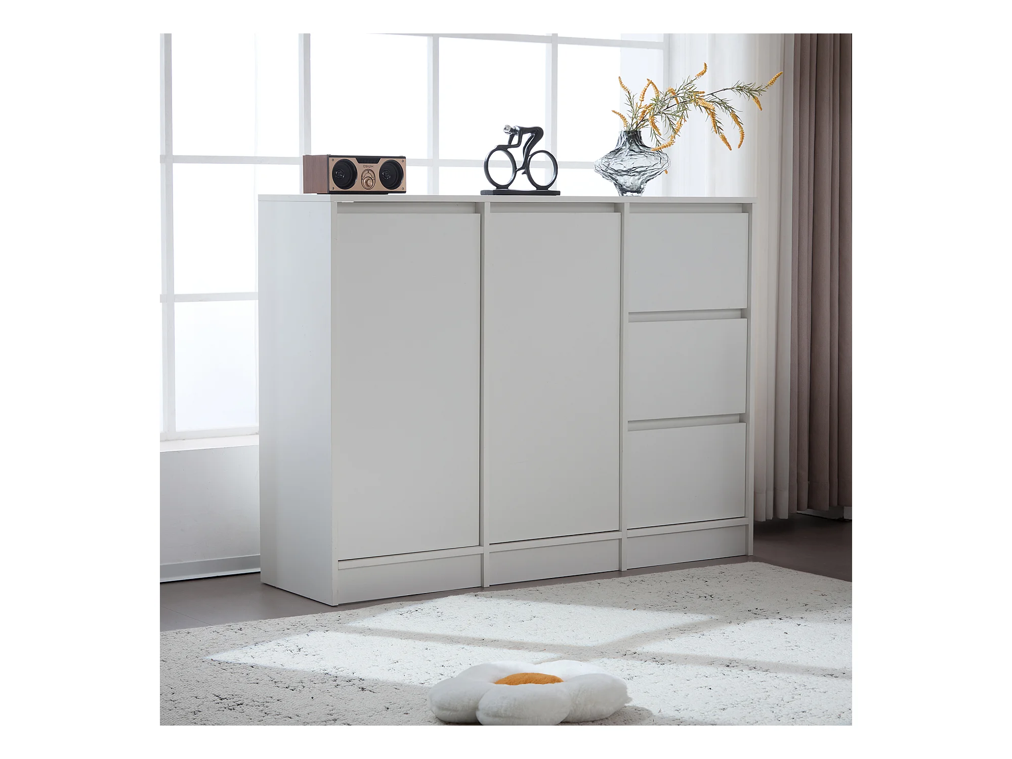 Aparador baixo em aglomerado - 3 portas e 2 gavetas - Branco