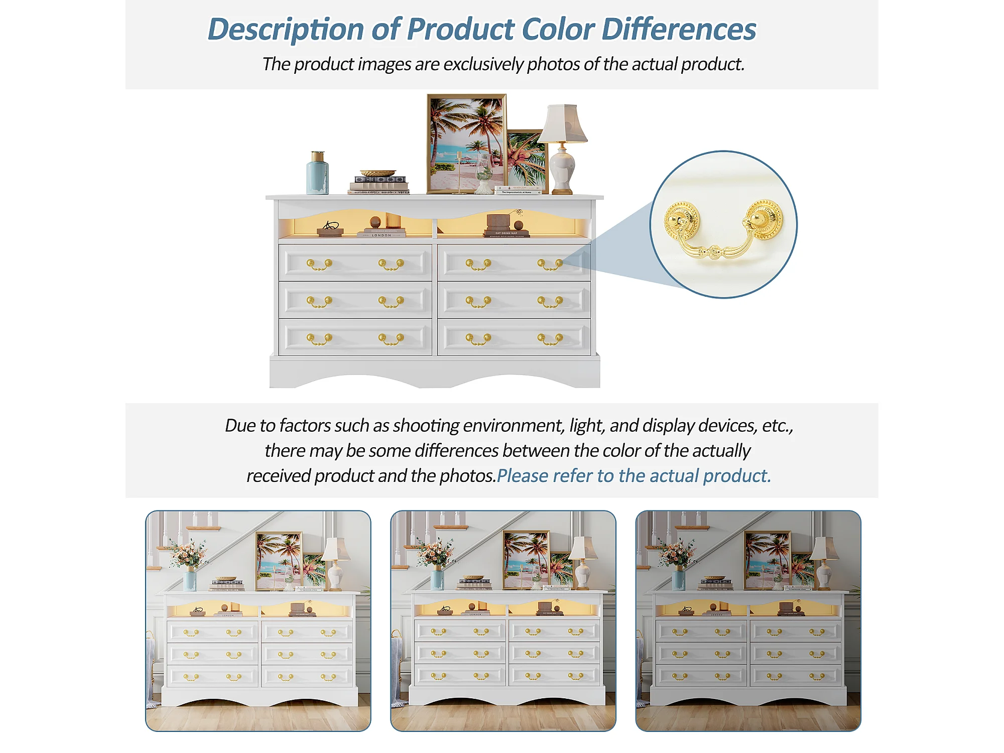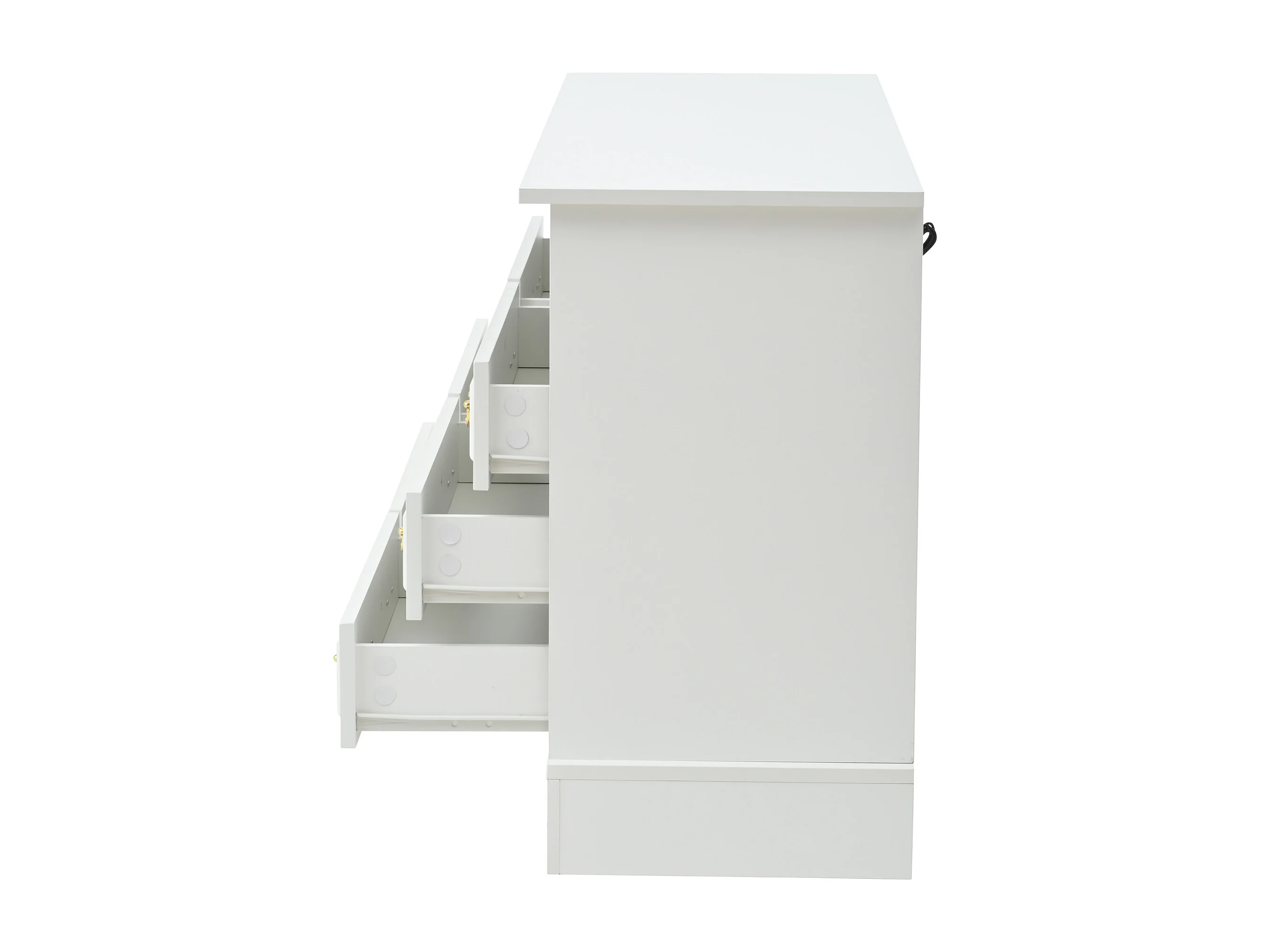 Aparador moderno de 120x40x70cm com 6 compartimentos e iluminação LED, branco com espaço de armazenamento aberto.