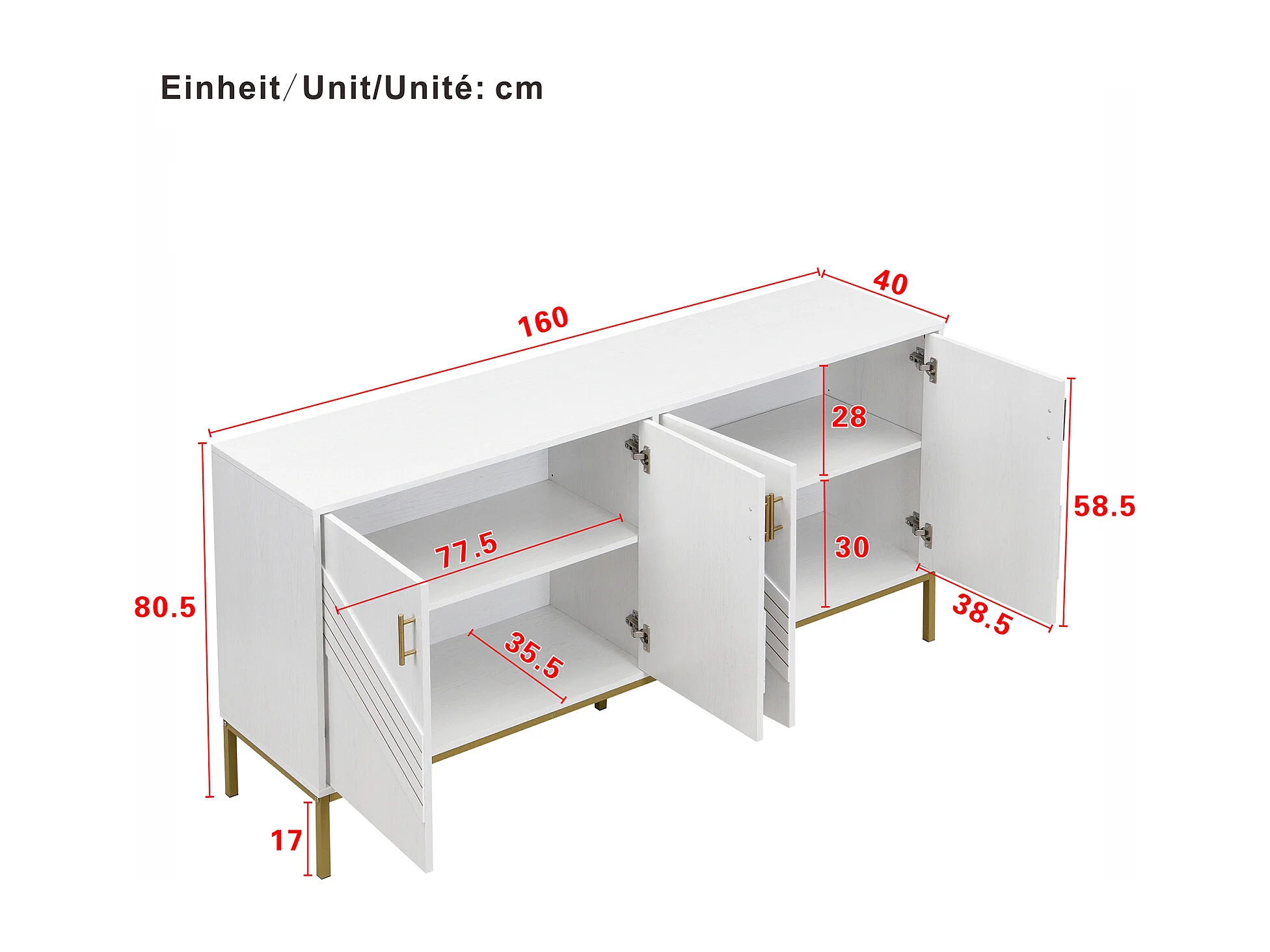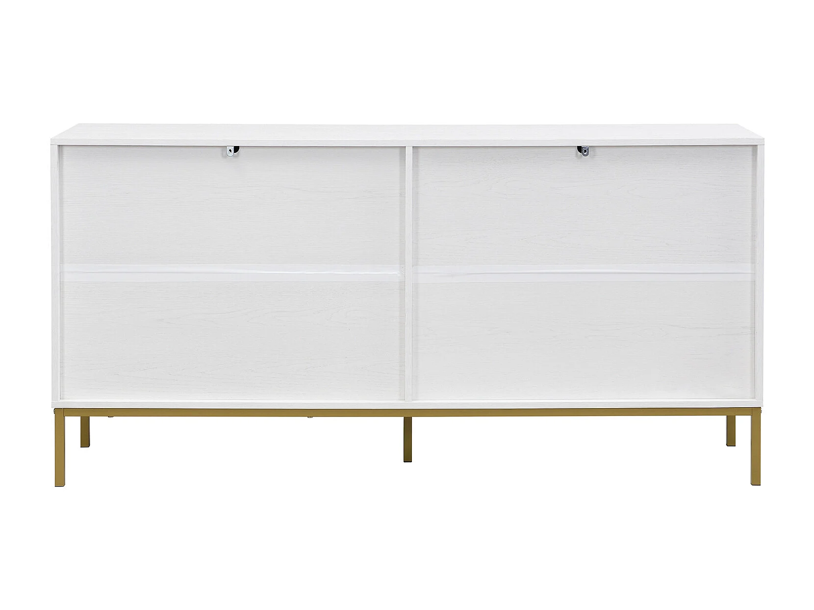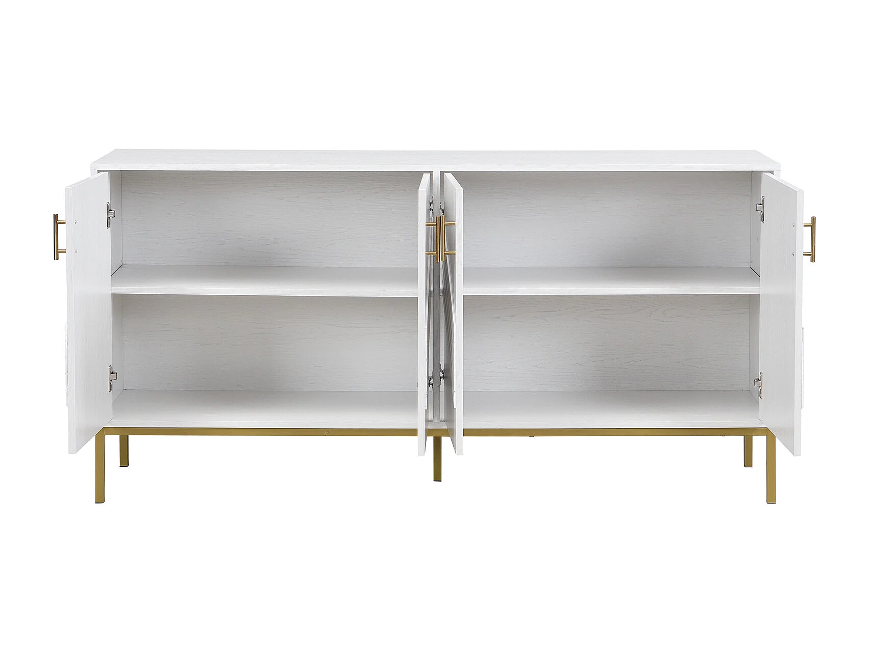 Aparador moderno de 4 portas em branco e dourado – MDF, pés de metal, para sala de estar e sala de jantar.