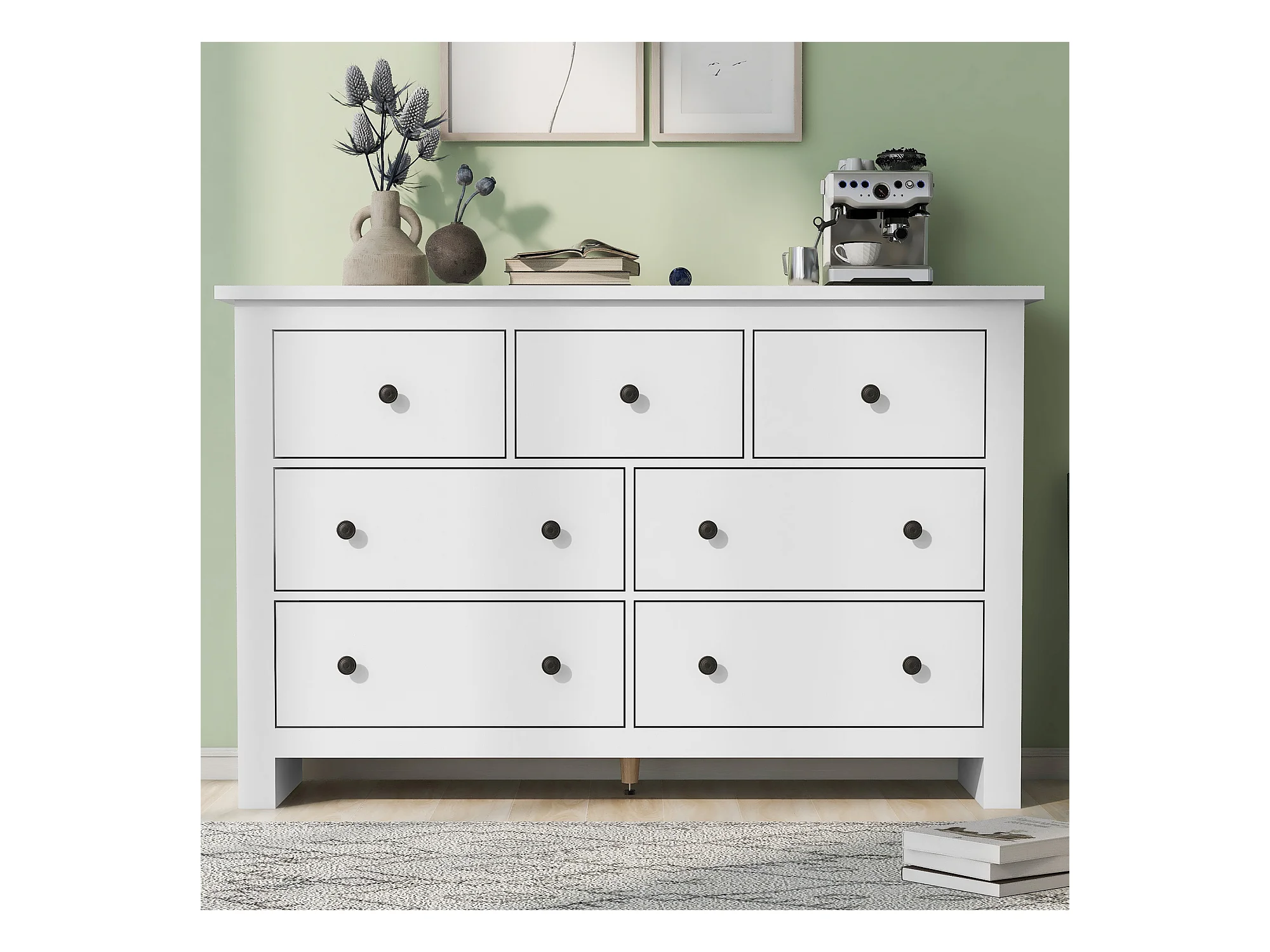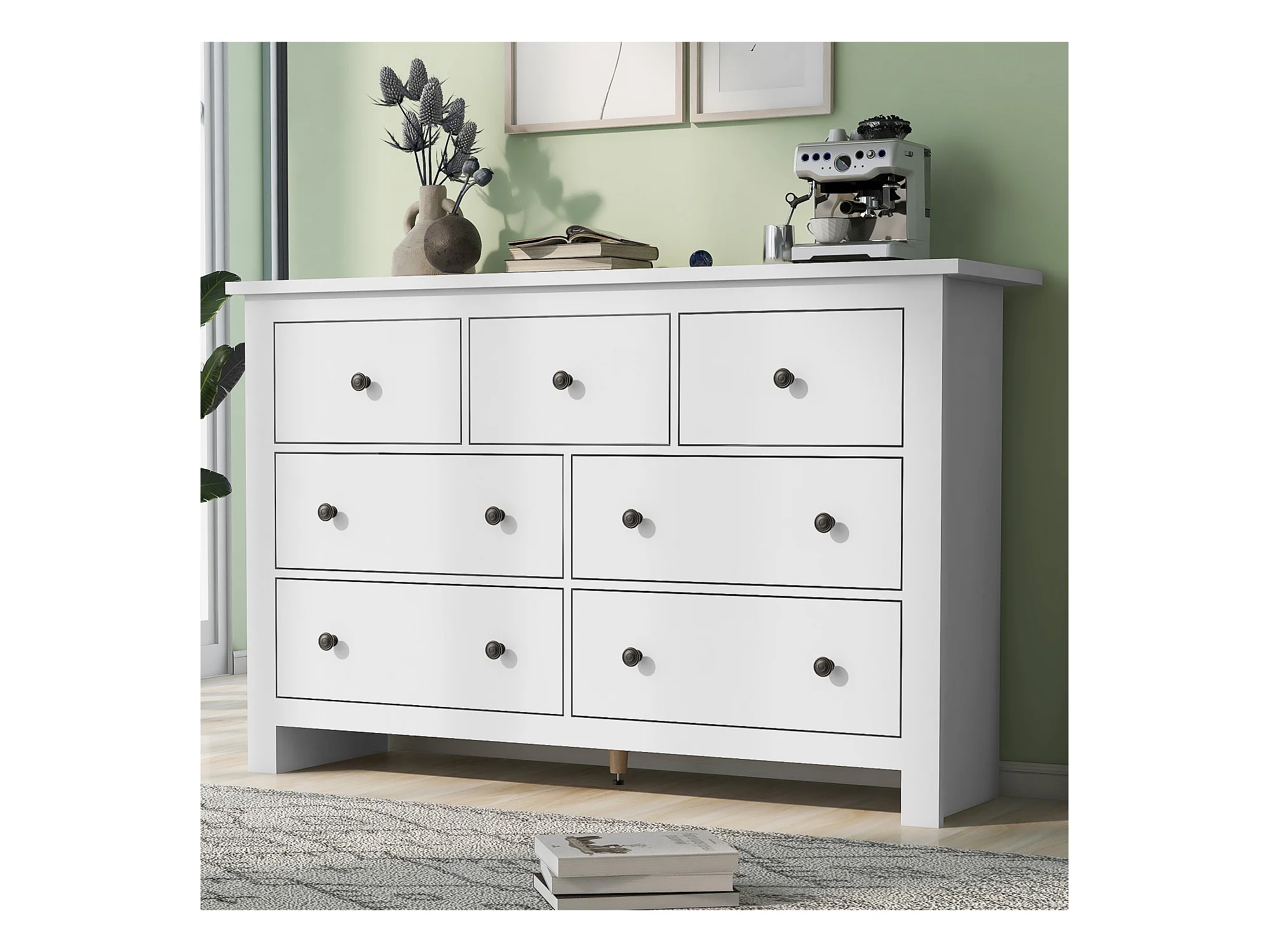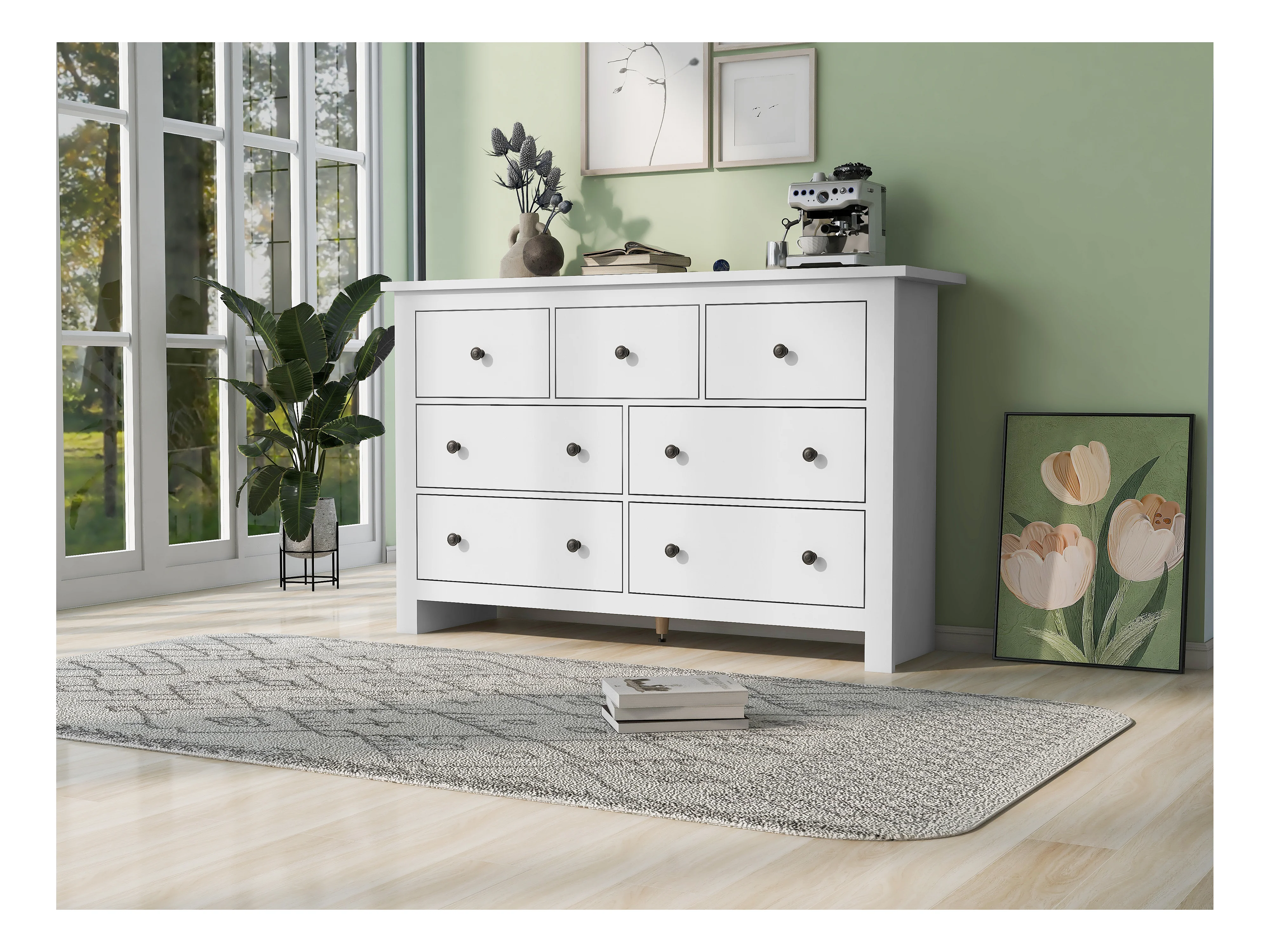 Aparador moderno de grande capacidade para sala de jantar com 7 gavetas, 152 x 40 x 88 cm, branco