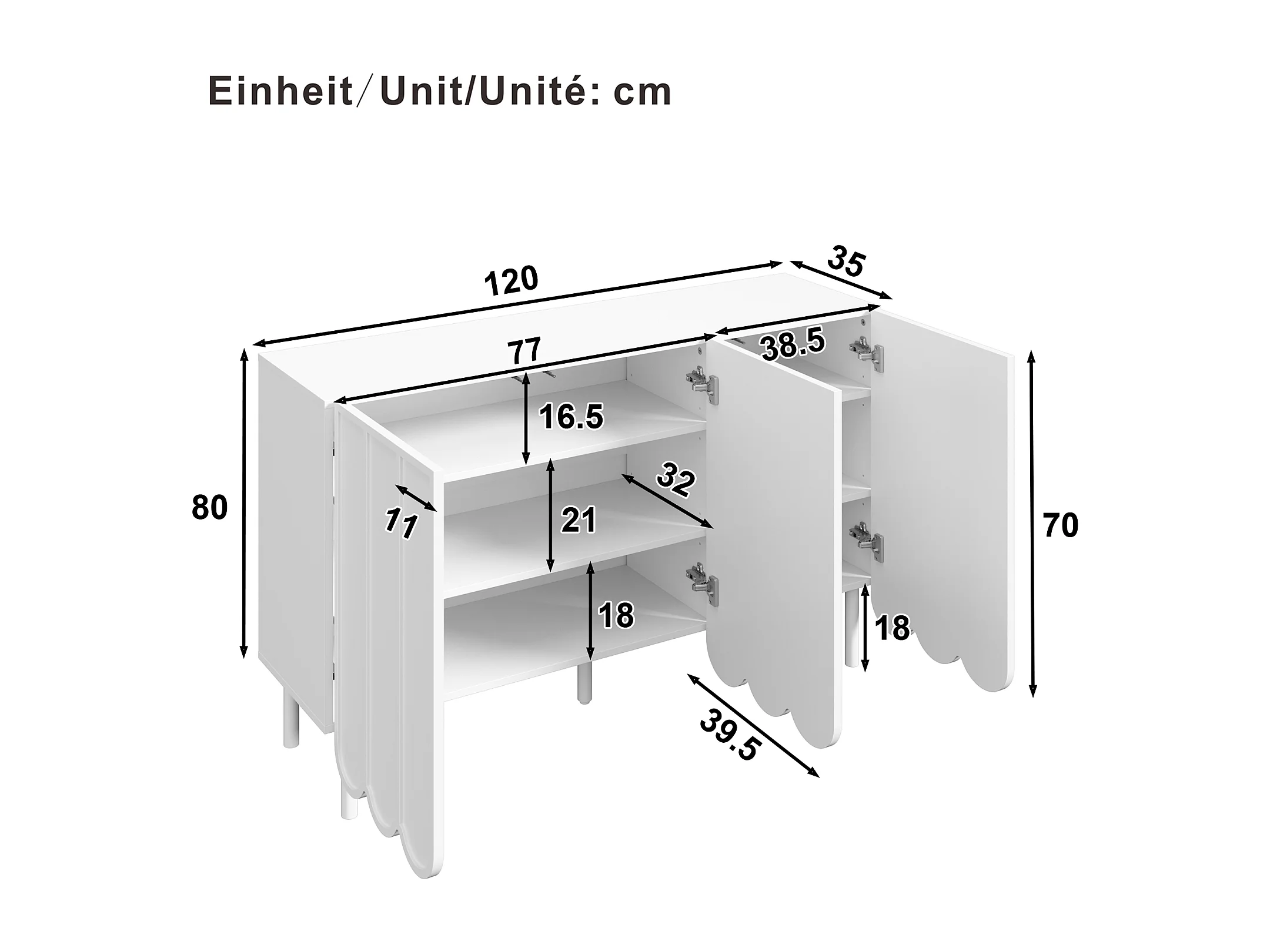 Aparador moderno de madeira com portas onduladas – 120x35x80 cm – para sala de estar, corredor e sala de jantar, branco