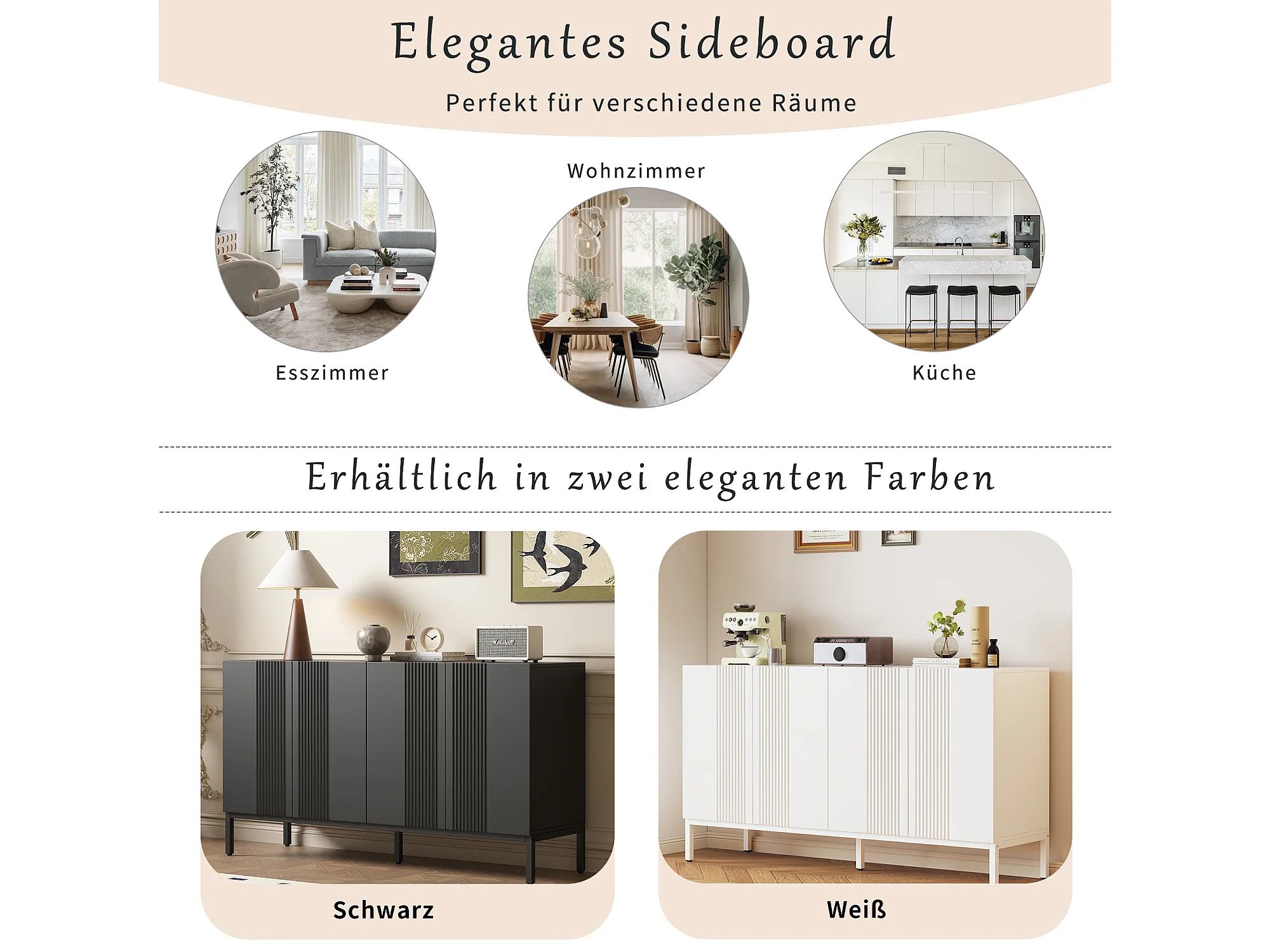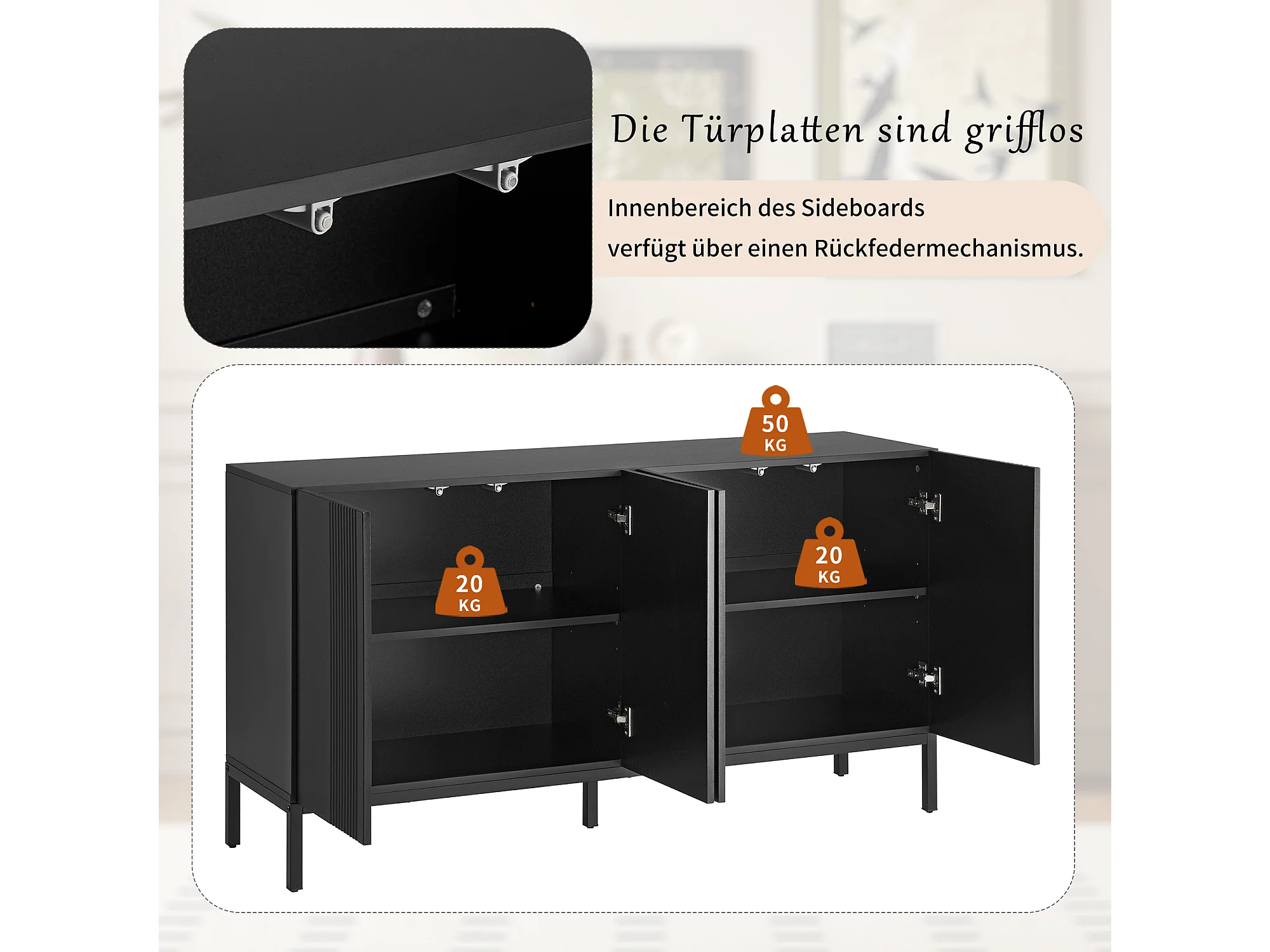 Aparador MDF 150 cm portas onduladas pés de metal reguláveis para sala cozinha preto