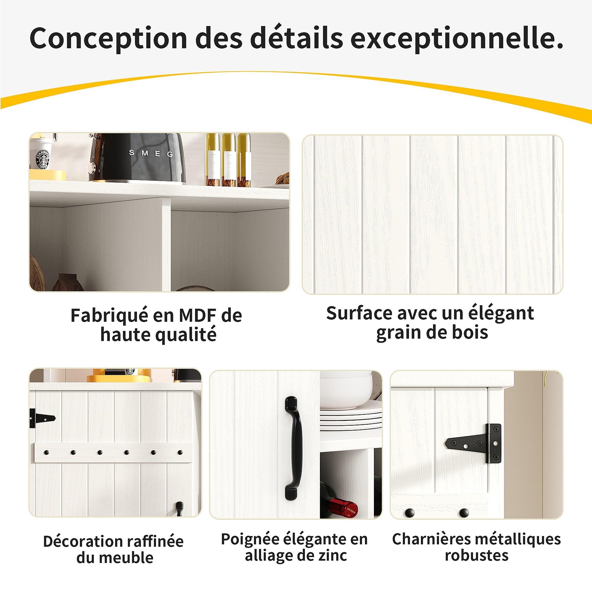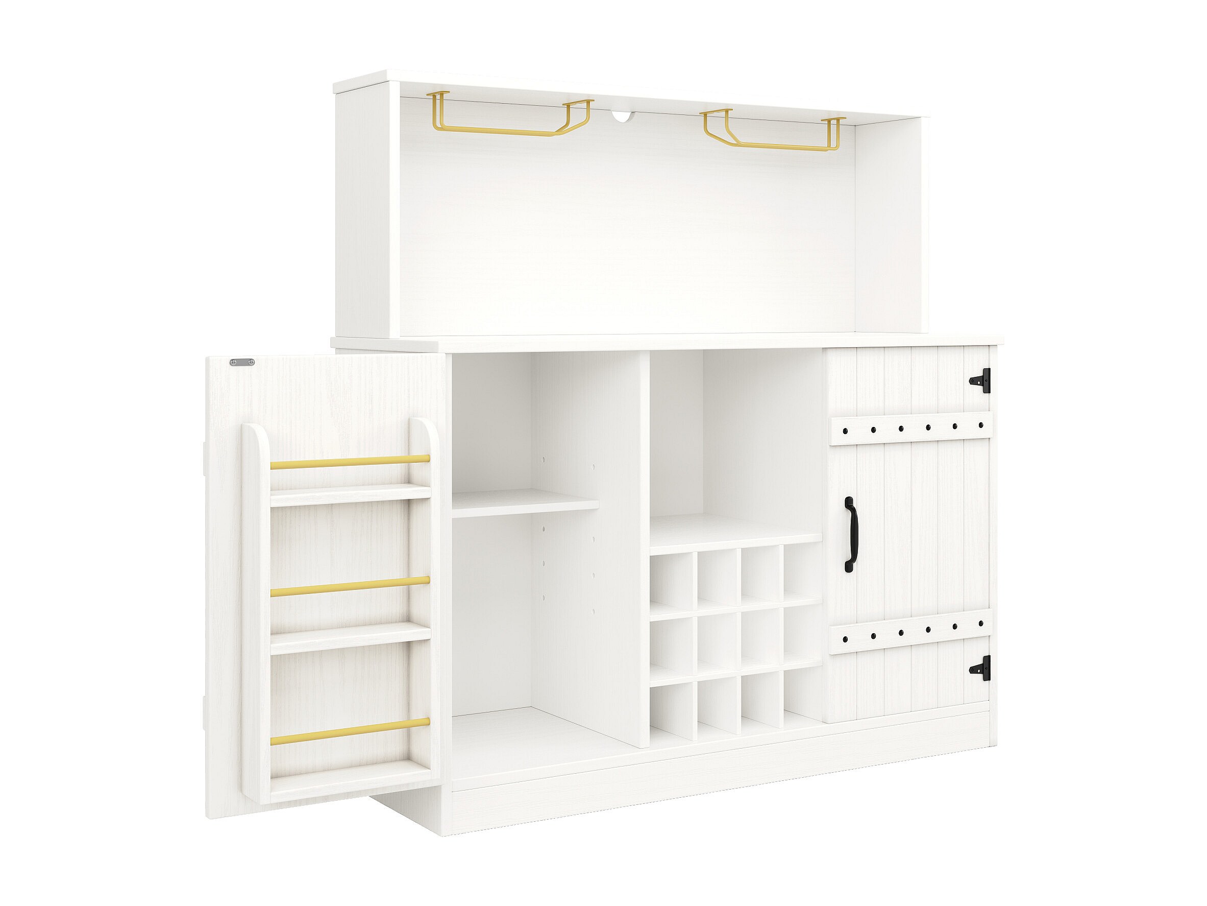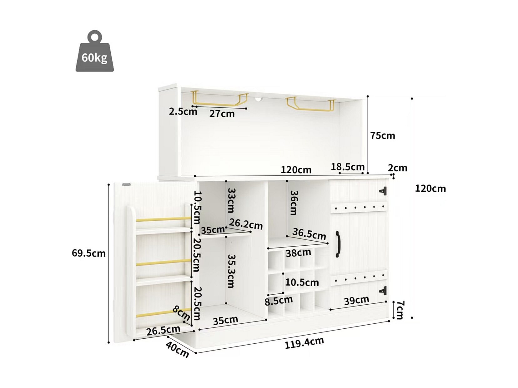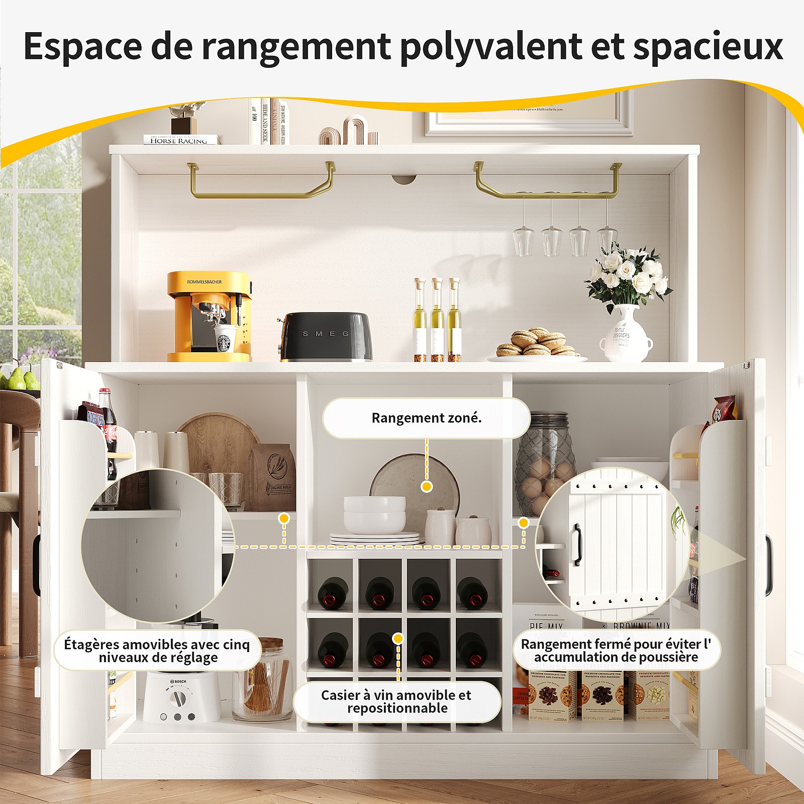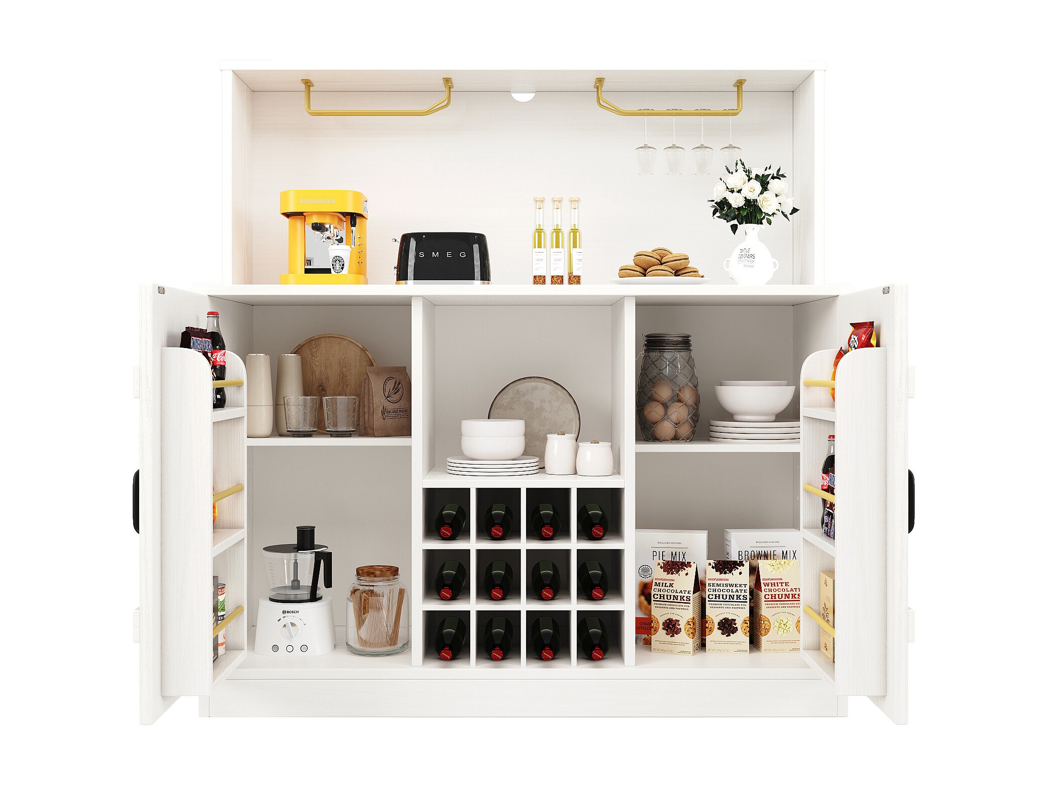 Aparador moderno e minimalista 120x40x120 cm, elegante grão de madeira, suporte para copos, armazenamento em vários níveis, branco com decoração preta