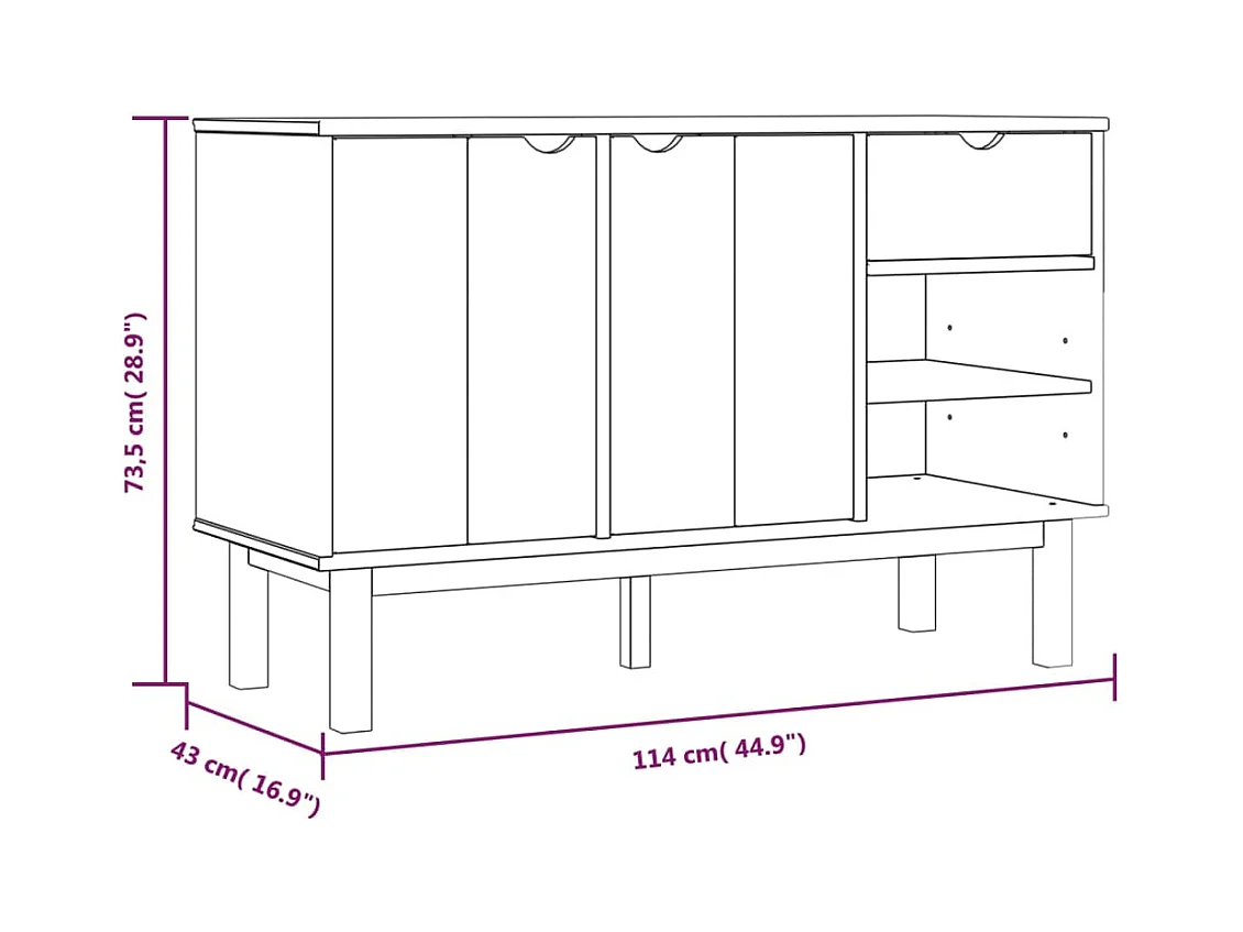 Aparador OTTA 113,5x43x73 cm madeira de pinho maciça