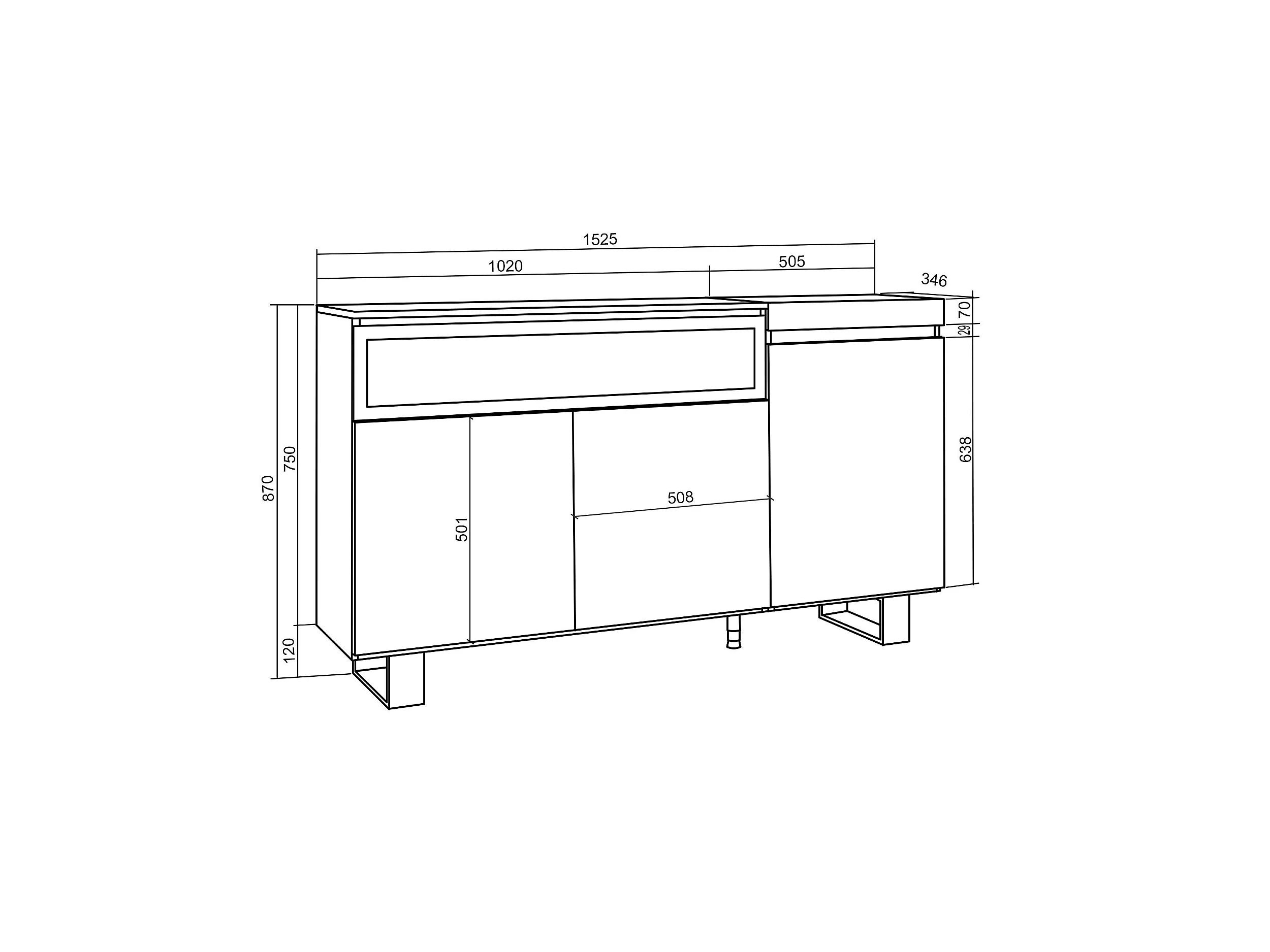 Aparador sala de jantar, 150x35x87cm, 3 Portas, Lareira eléctrica, Design industrial, Carvahlo e preto