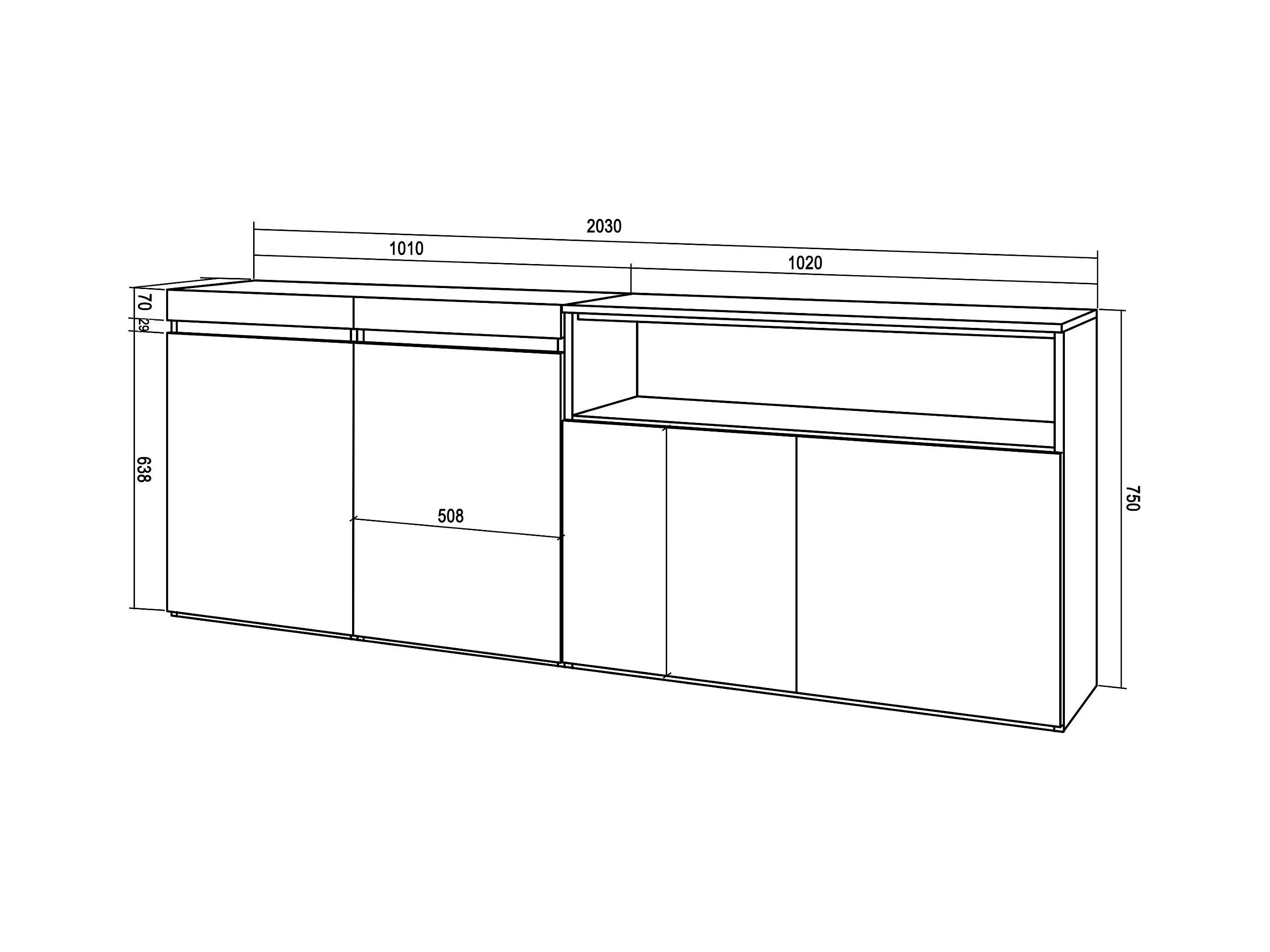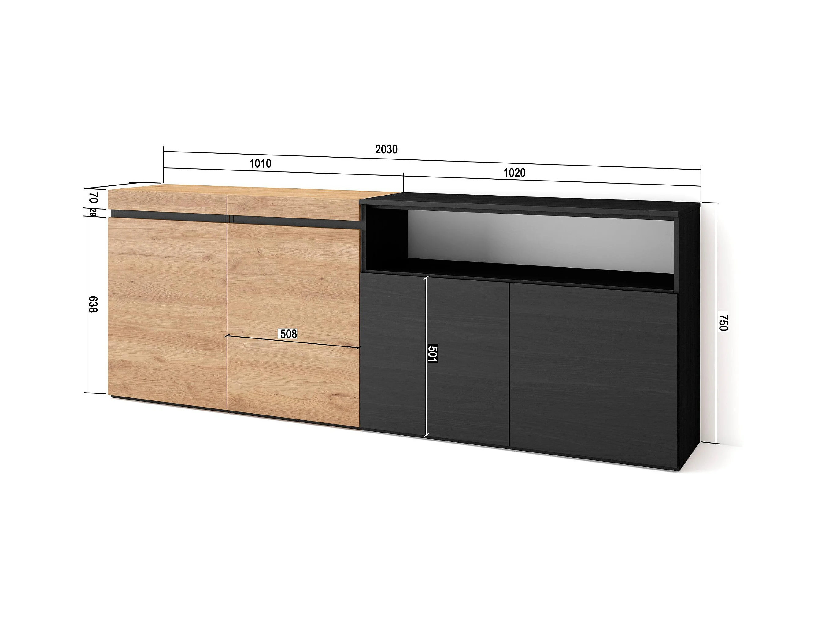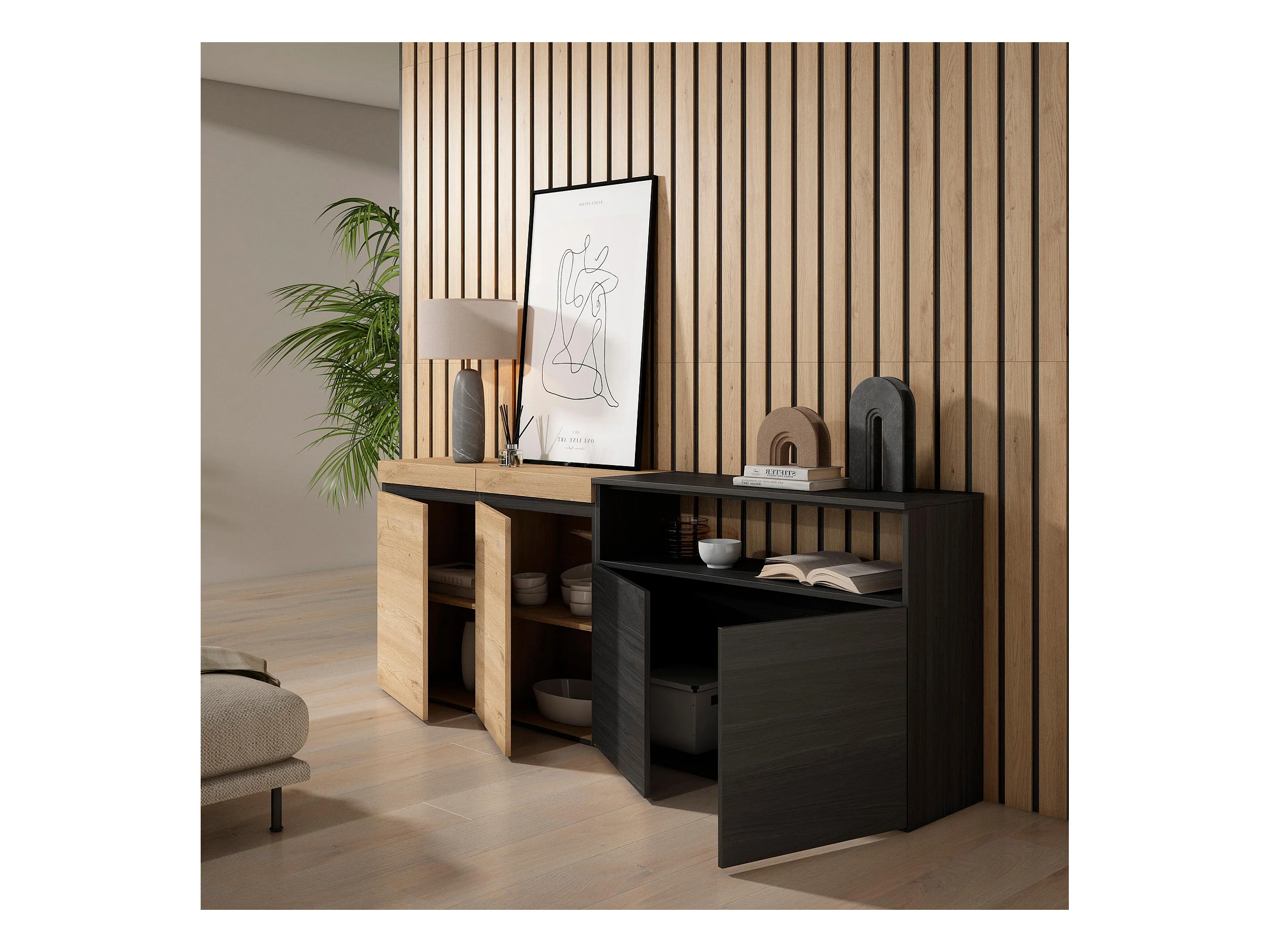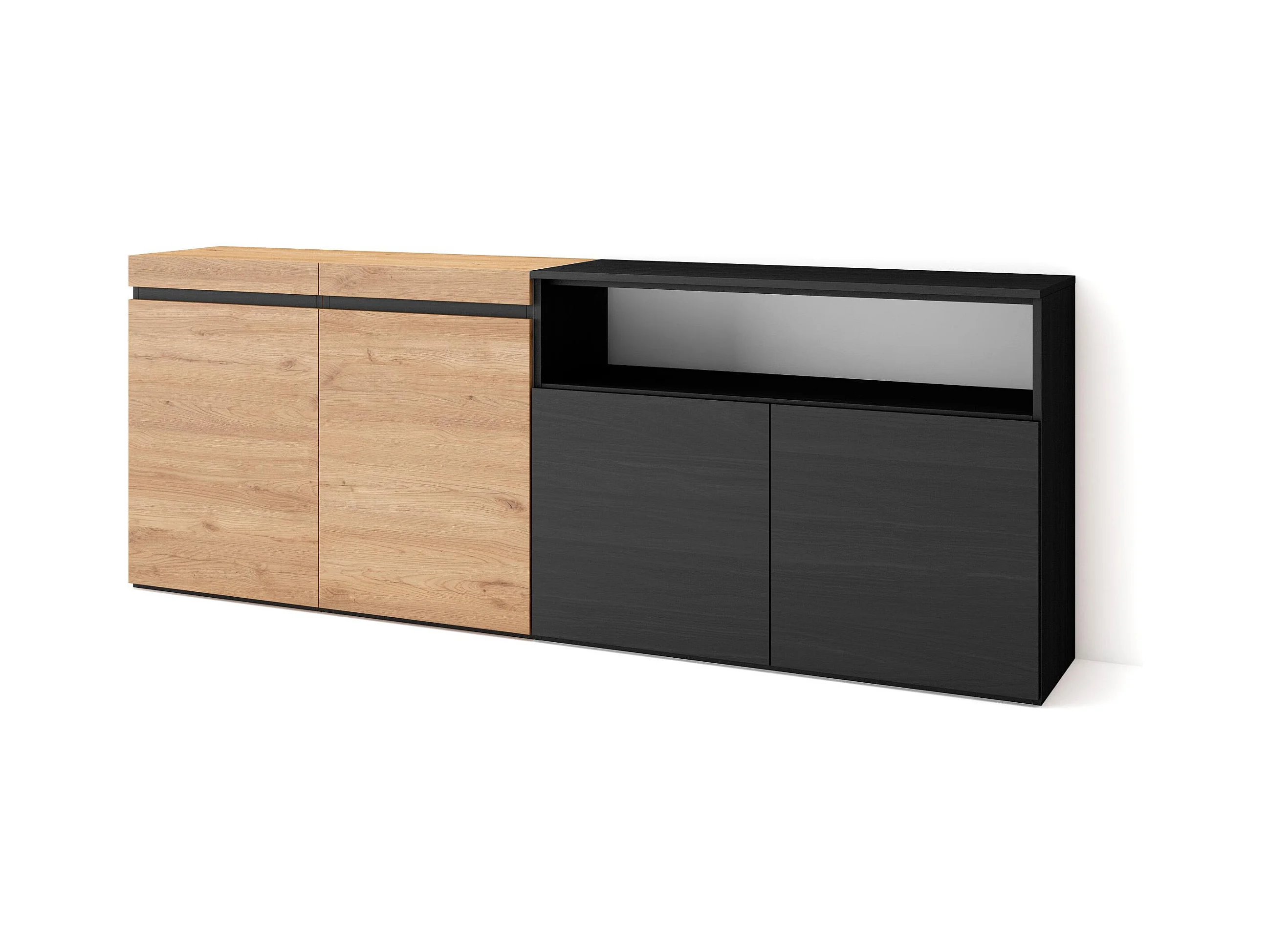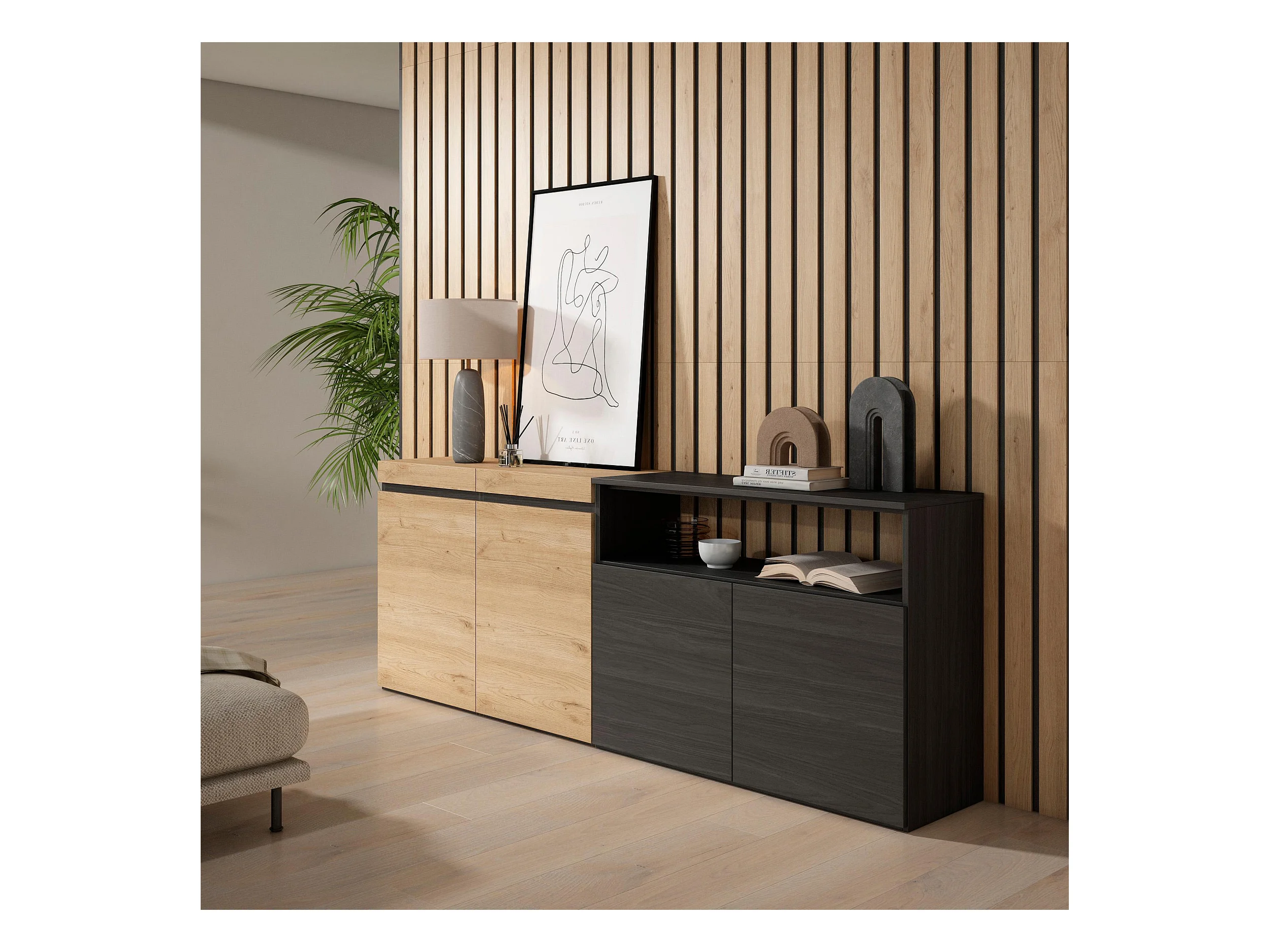 Aparador sala de jantar, 200x35x75cm, 4 Portas, Armário arrumação, Carvahlo e preto