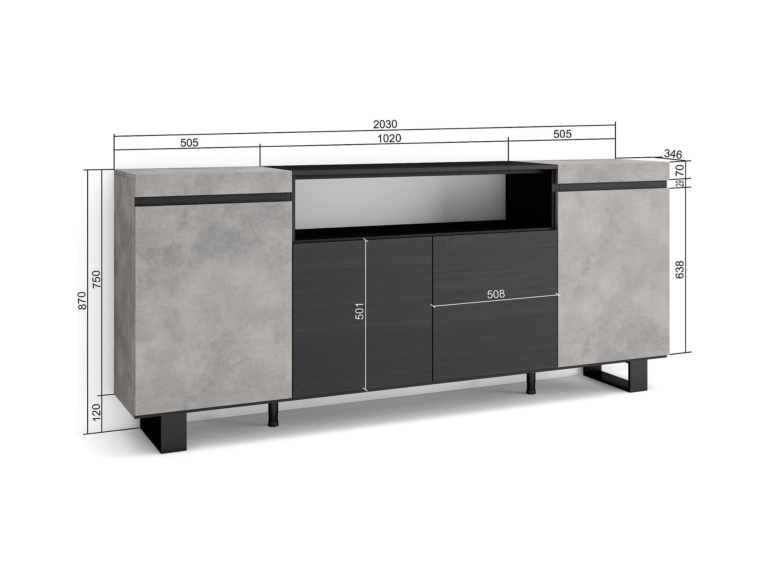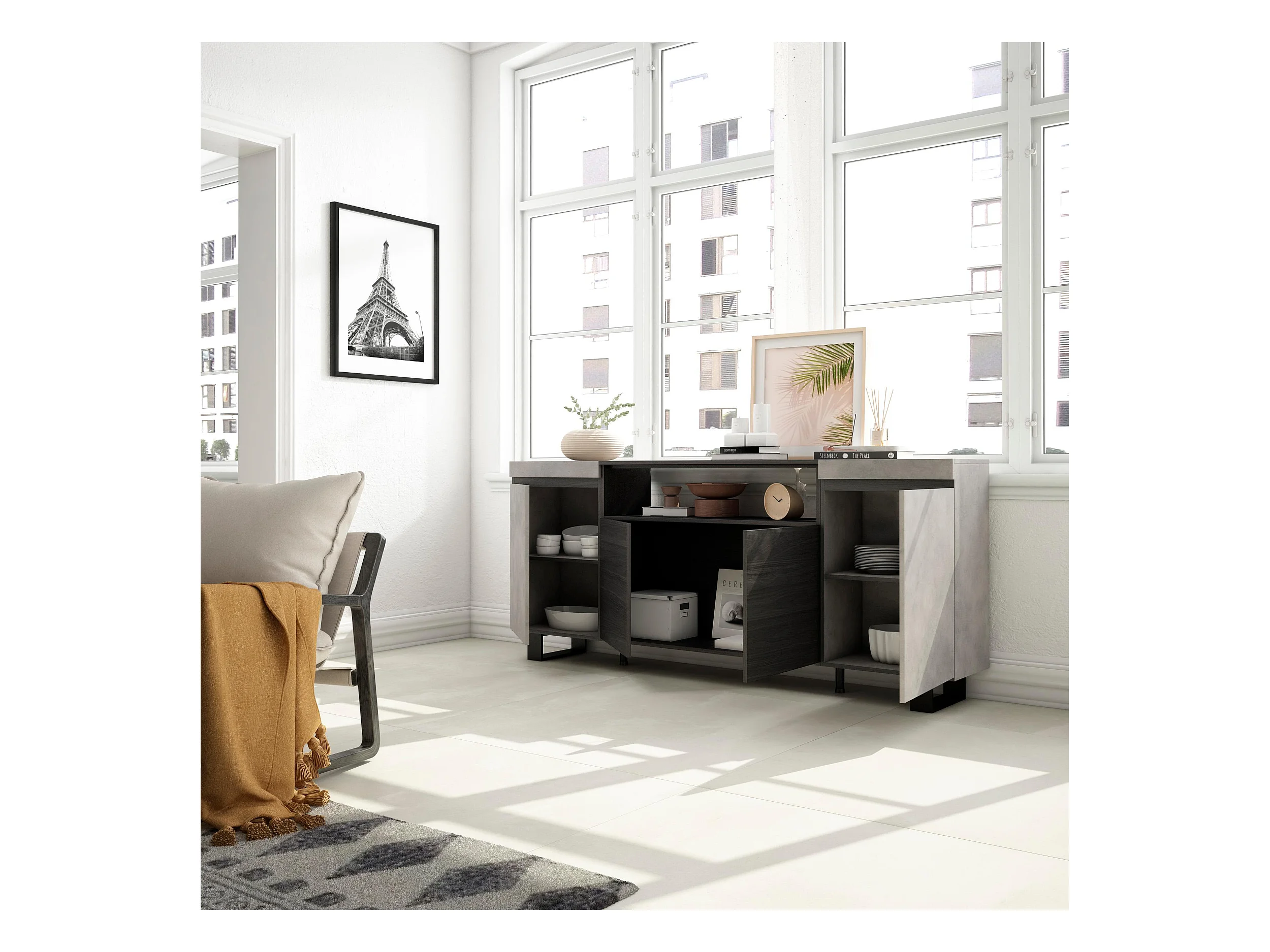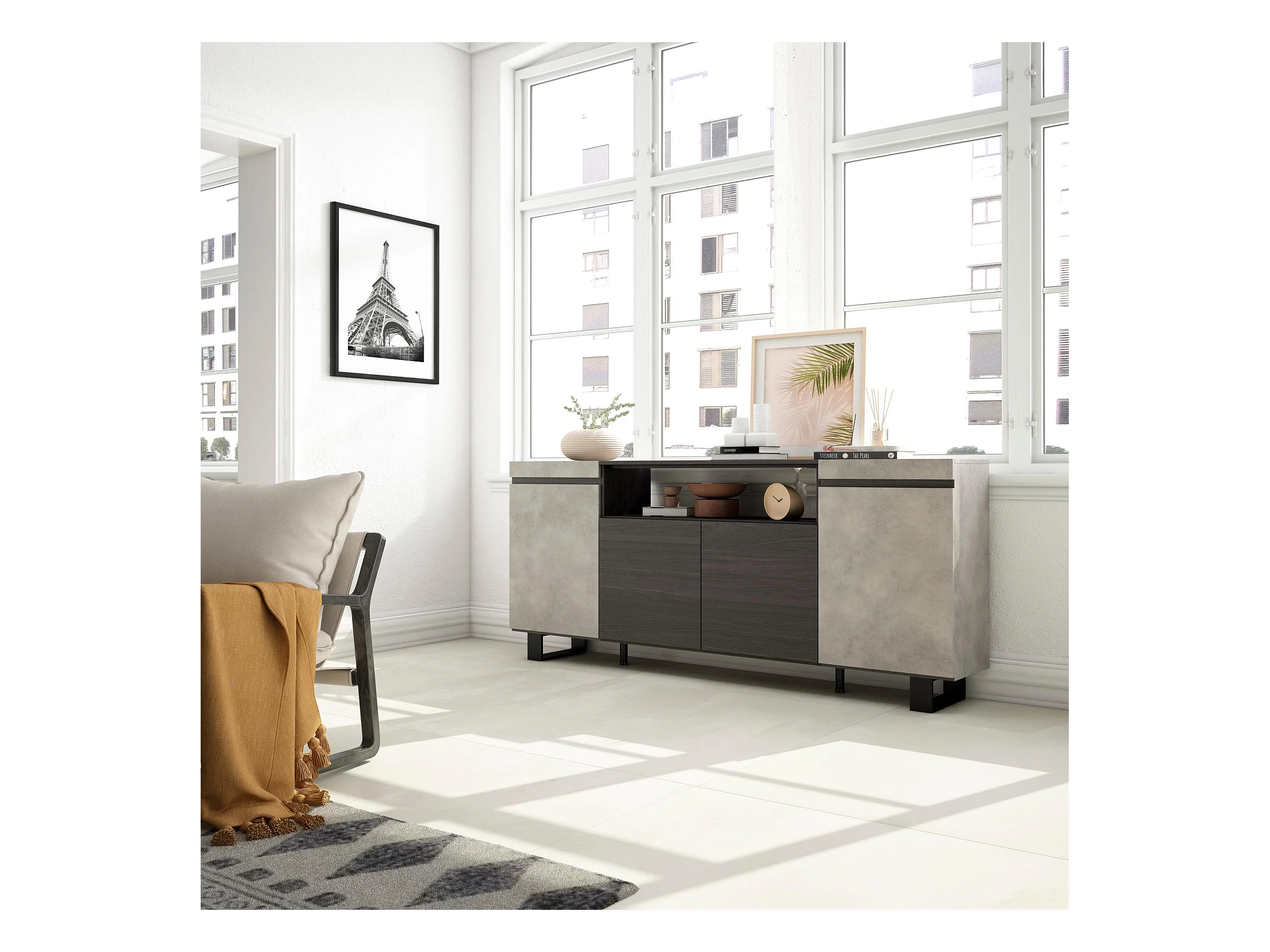 Aparador sala de jantar, 200x35x87cm, 4 Portas, Design industrial, Cimento