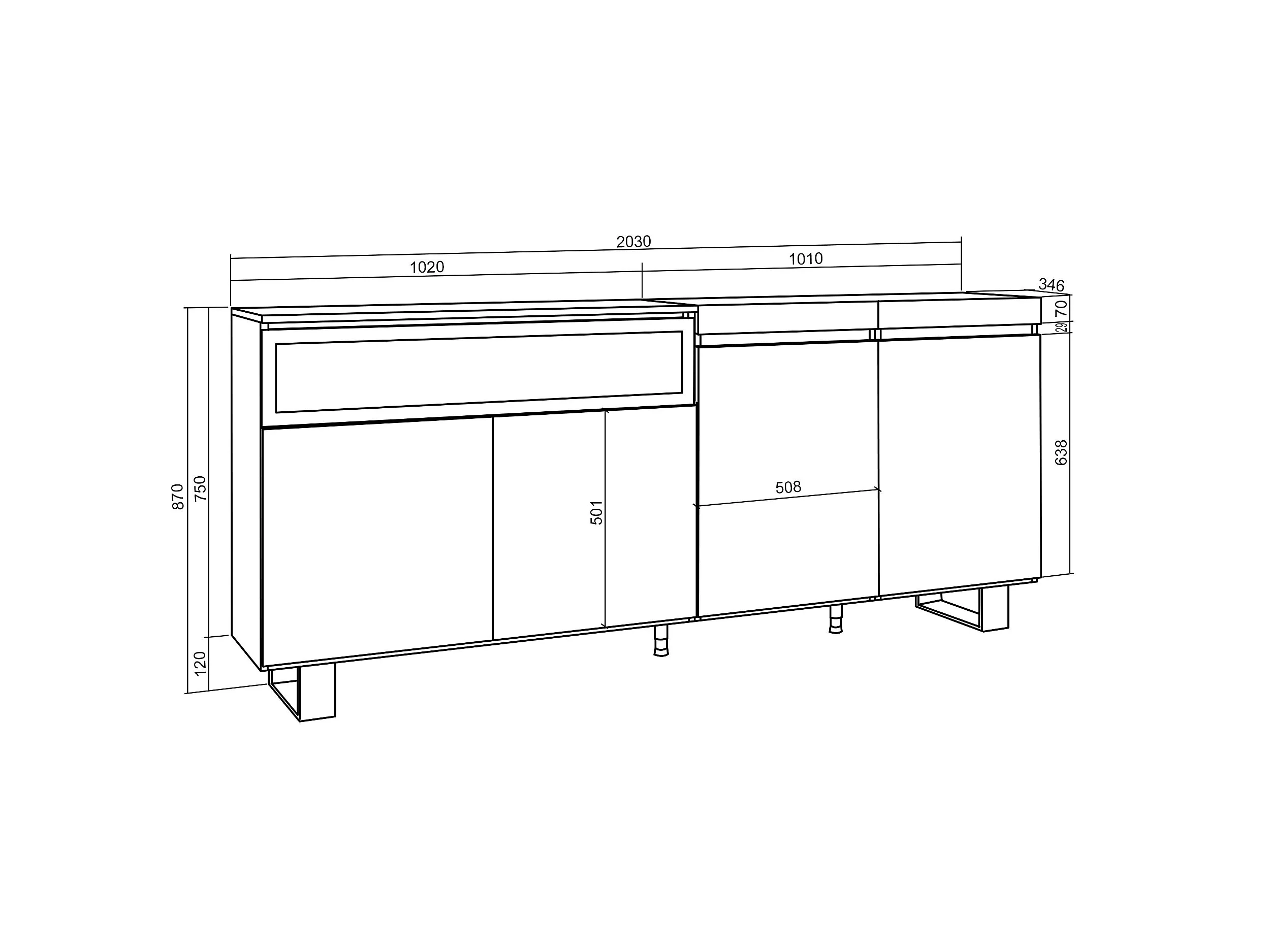 Aparador sala de jantar, 200x35x87cm, 4 Portas, Lareira eléctrica, Design industrial, Preto