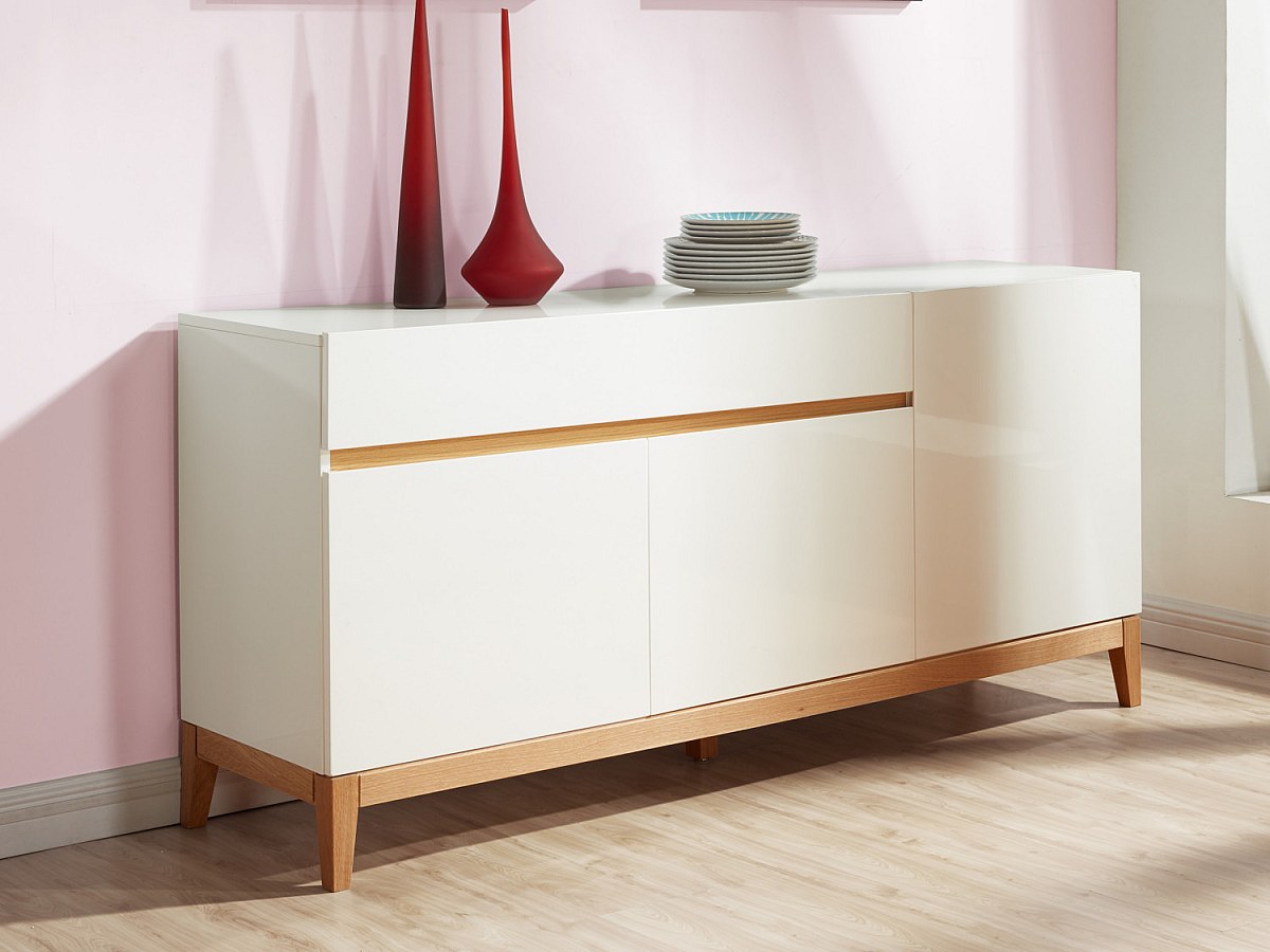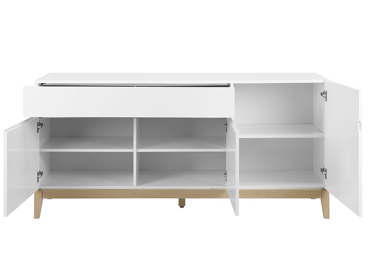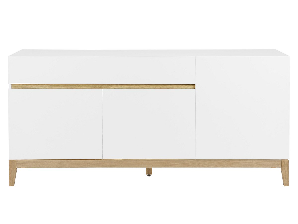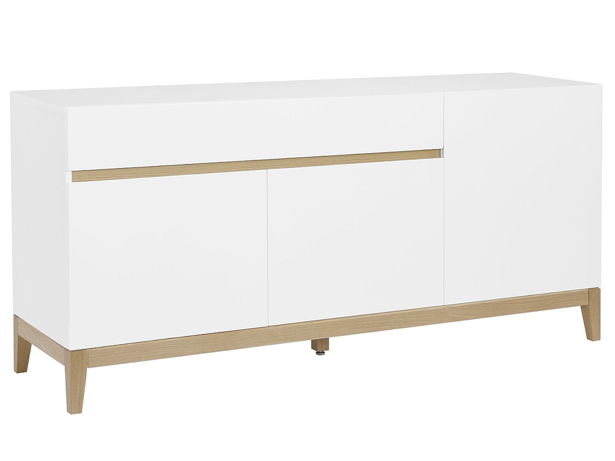 Aparador SEDNA - 3 portas & 1 gaveta - Carvalho maciço & MDF lacado branco