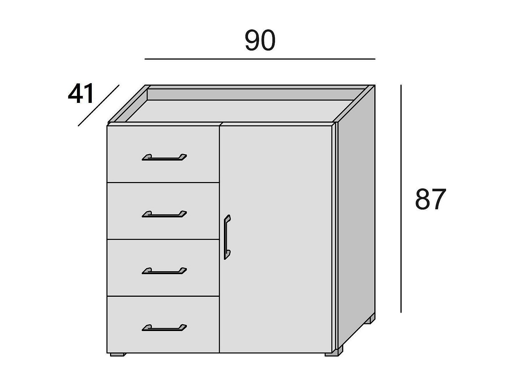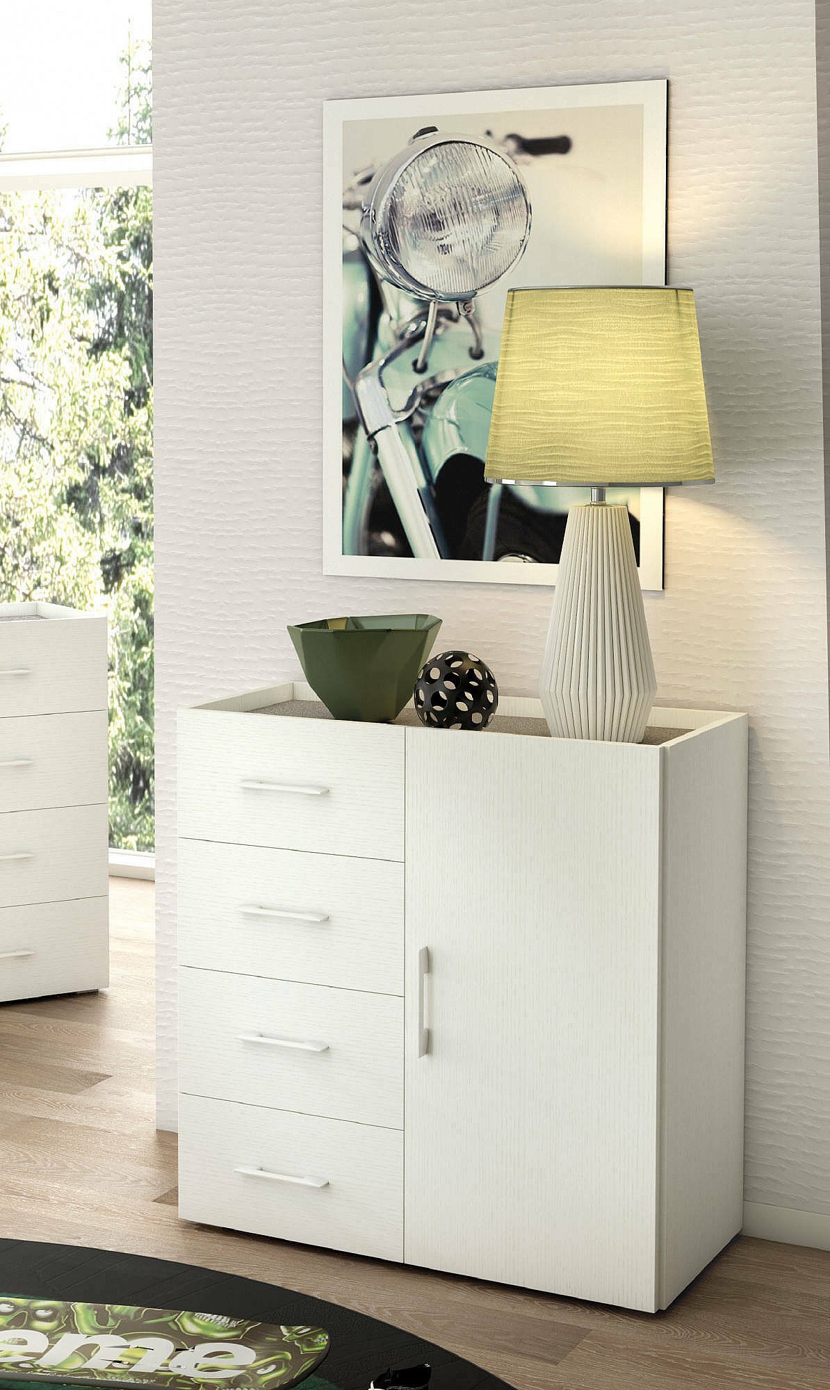 Aparador Violetta, Armário buffet com 1 porta e 4 gavetas, Aparador sala, Armário multiuso com prateleiras, 100% Fabricado na Itália, 90x41h87 cm, Branco