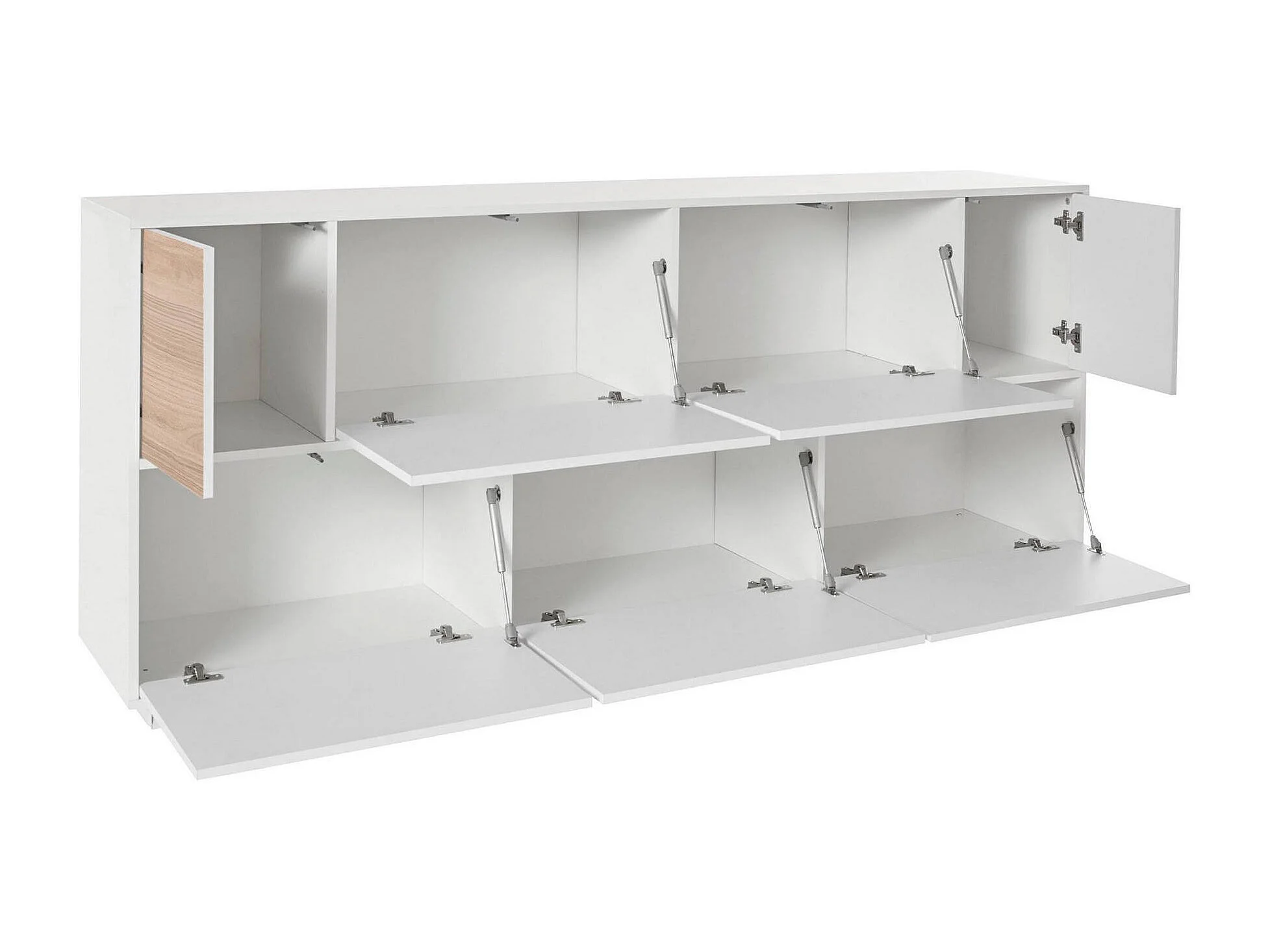 Aparador Virginio, aparador de cozinha 7 portas, Buffet de sala, 100% Fabricado na Itália, 200x41h86 cm, Branco brilhante e nogueira