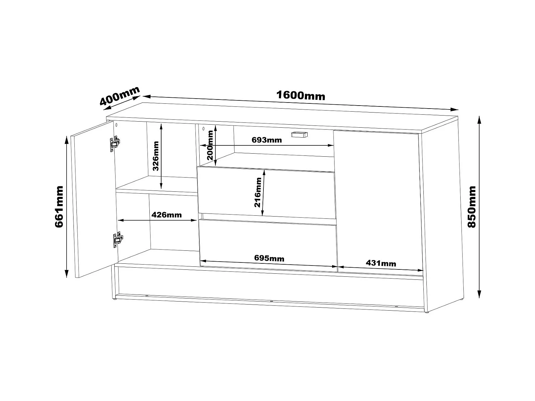 Aparador VISION SB160 2D2D 160x40x85 Preto
