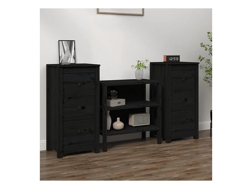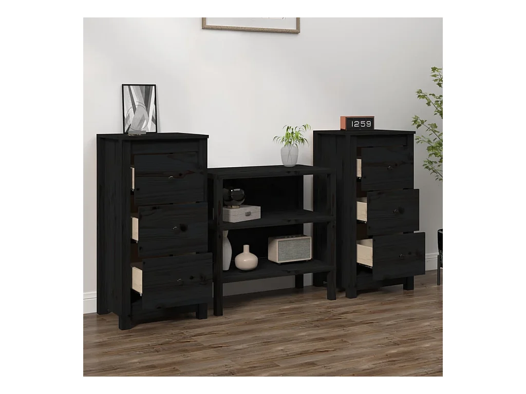 Aparador 80x40x75 cm madeira de pinho maciça preto PT733570