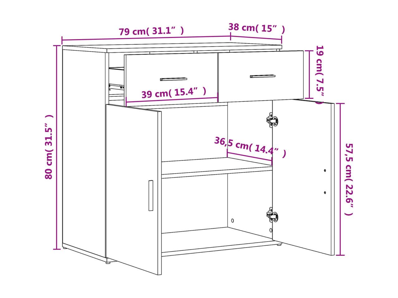 Aparador 79x38x80 cm derivados de madeira carvalho fumado