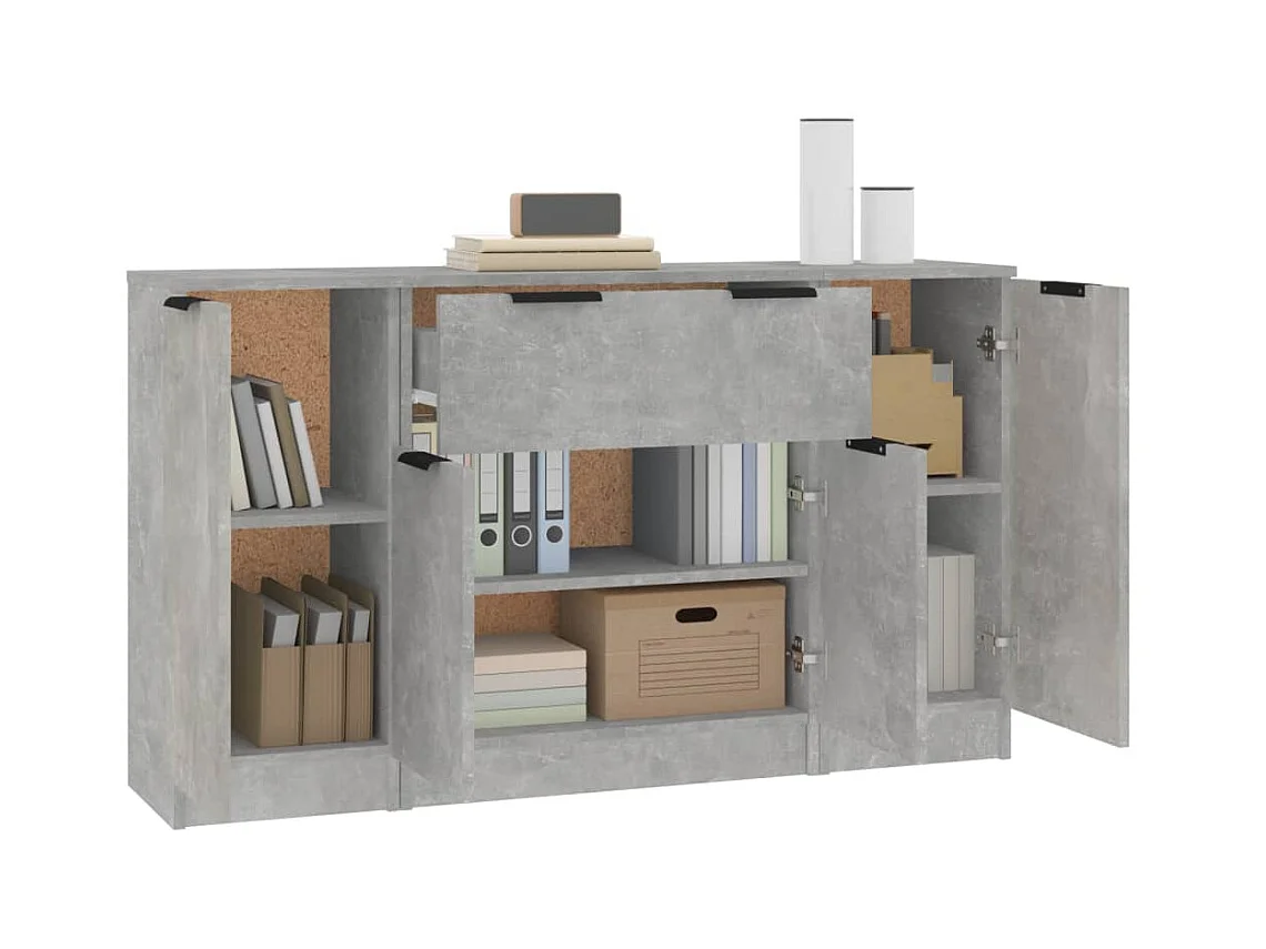 Aparadores 3 pcs derivados de madeira cinzento cimento PT637123