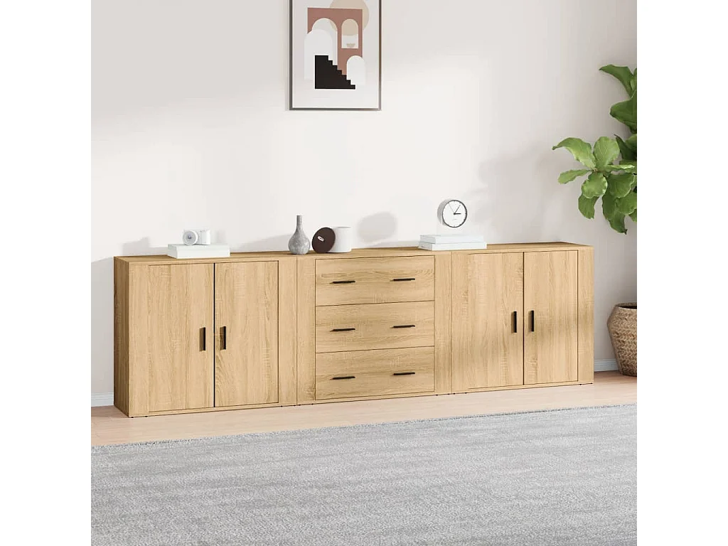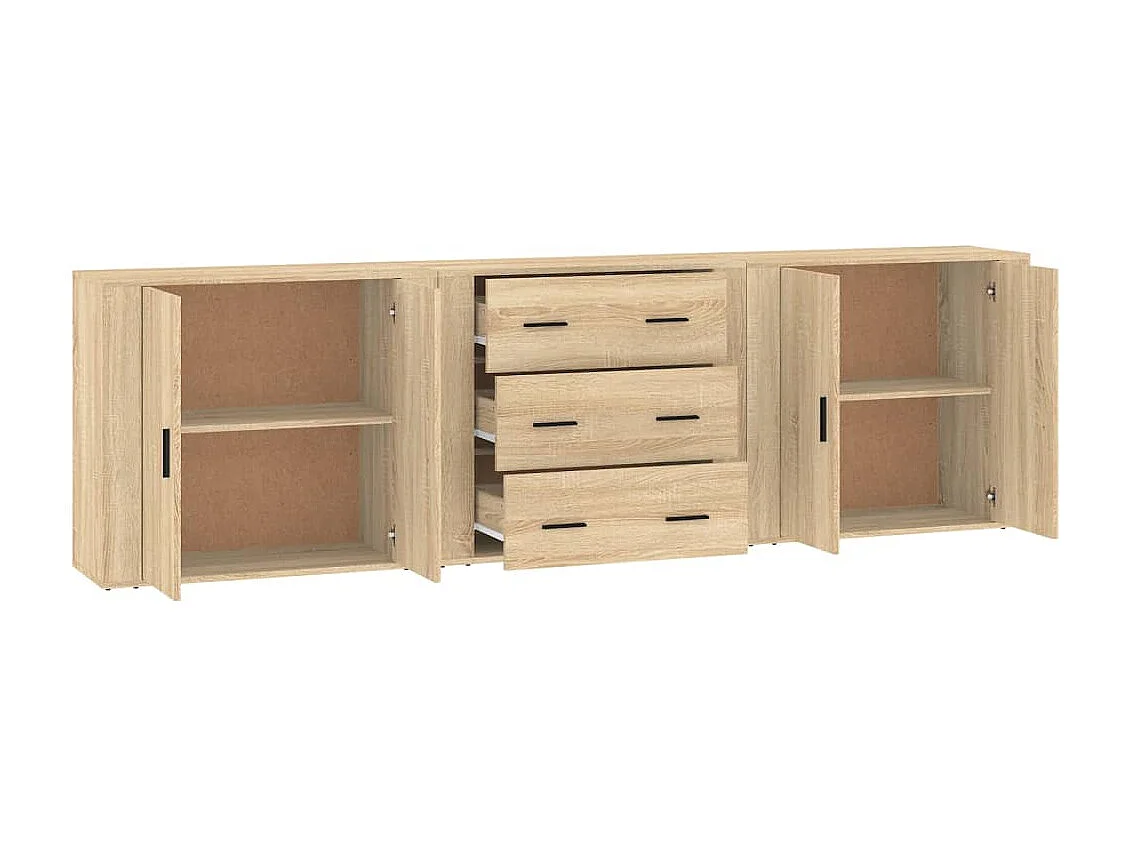 Aparadores 3 pcs madeira processada cor carvalho sonoma