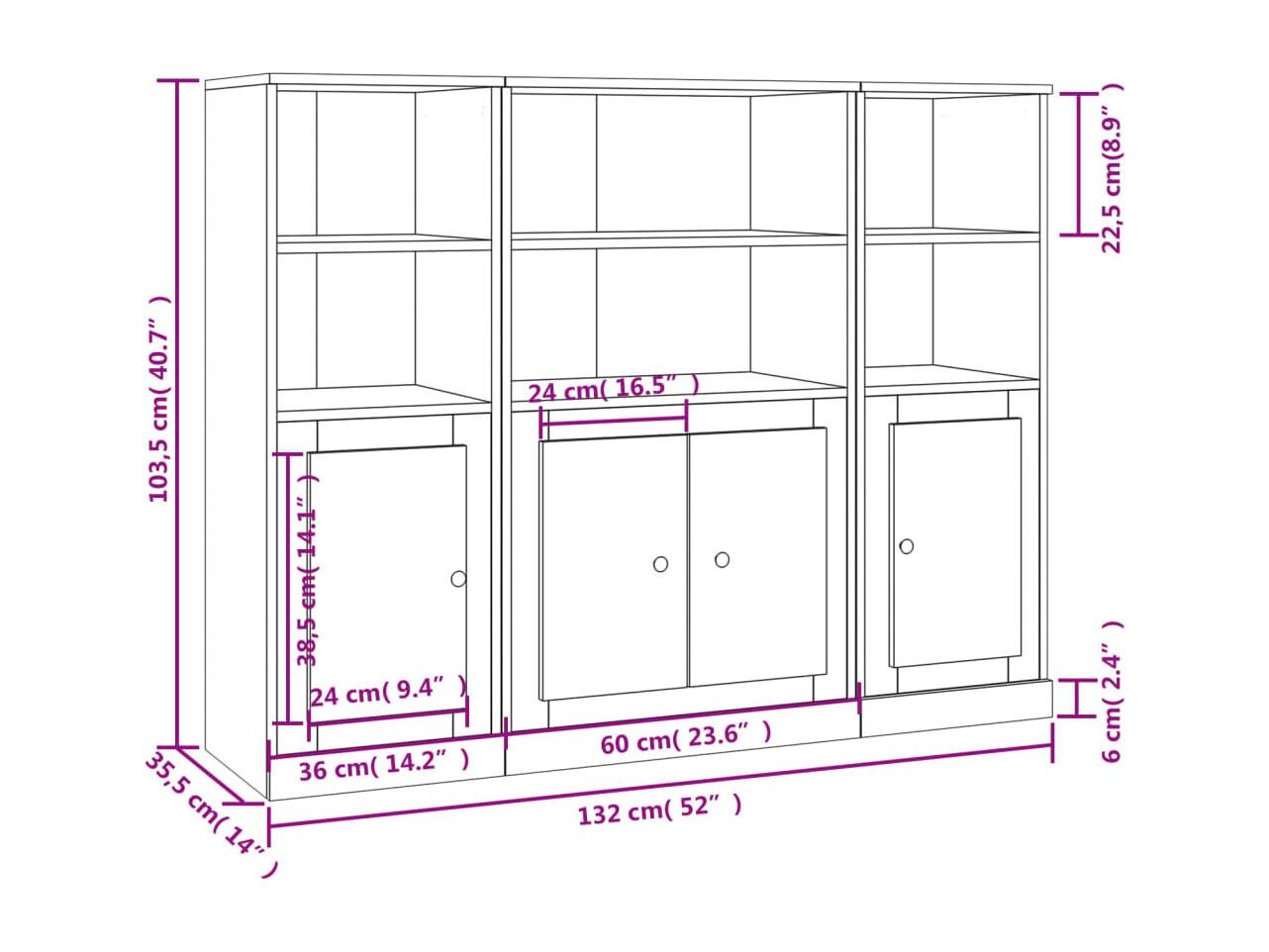 Aparadores altos 3 peças derivados de madeira cor carvalho sonoma