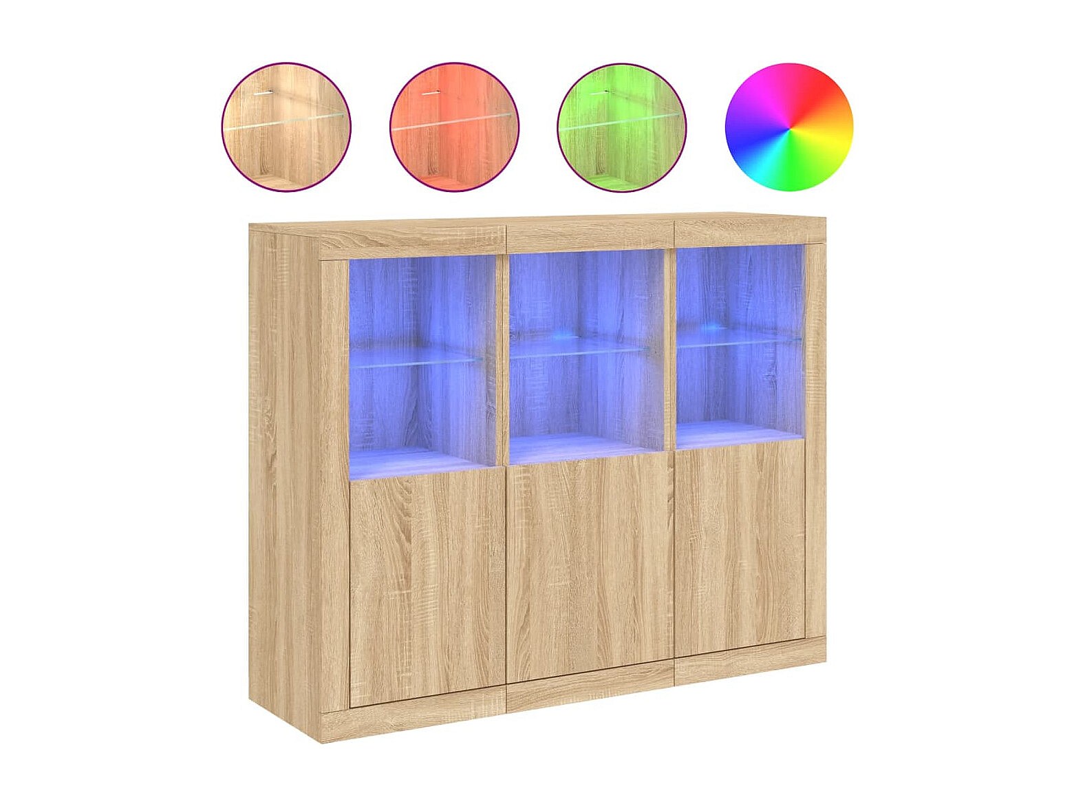 Aparadores c/ LEDs 3 pcs derivados de madeira carvalho sonoma