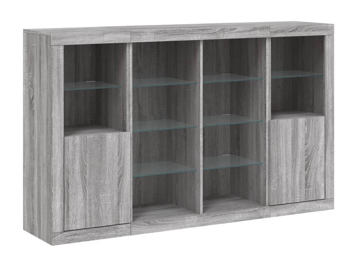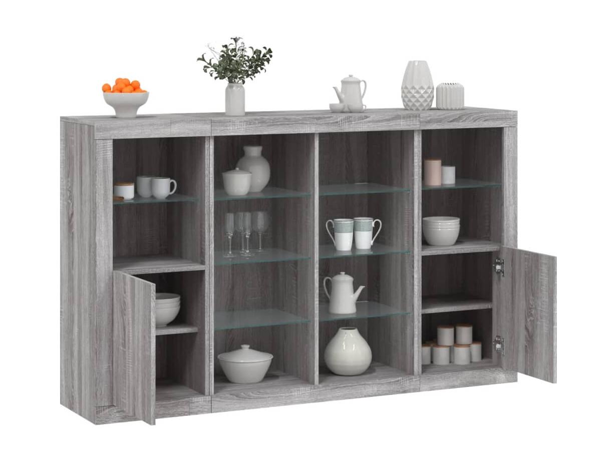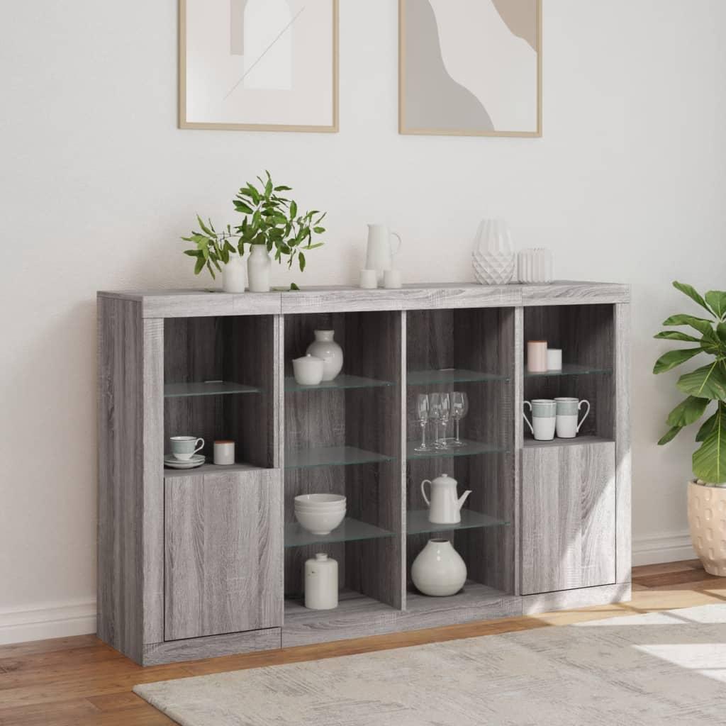 Aparadores com LEDs 3 peças derivados de madeira cinzento sonoma