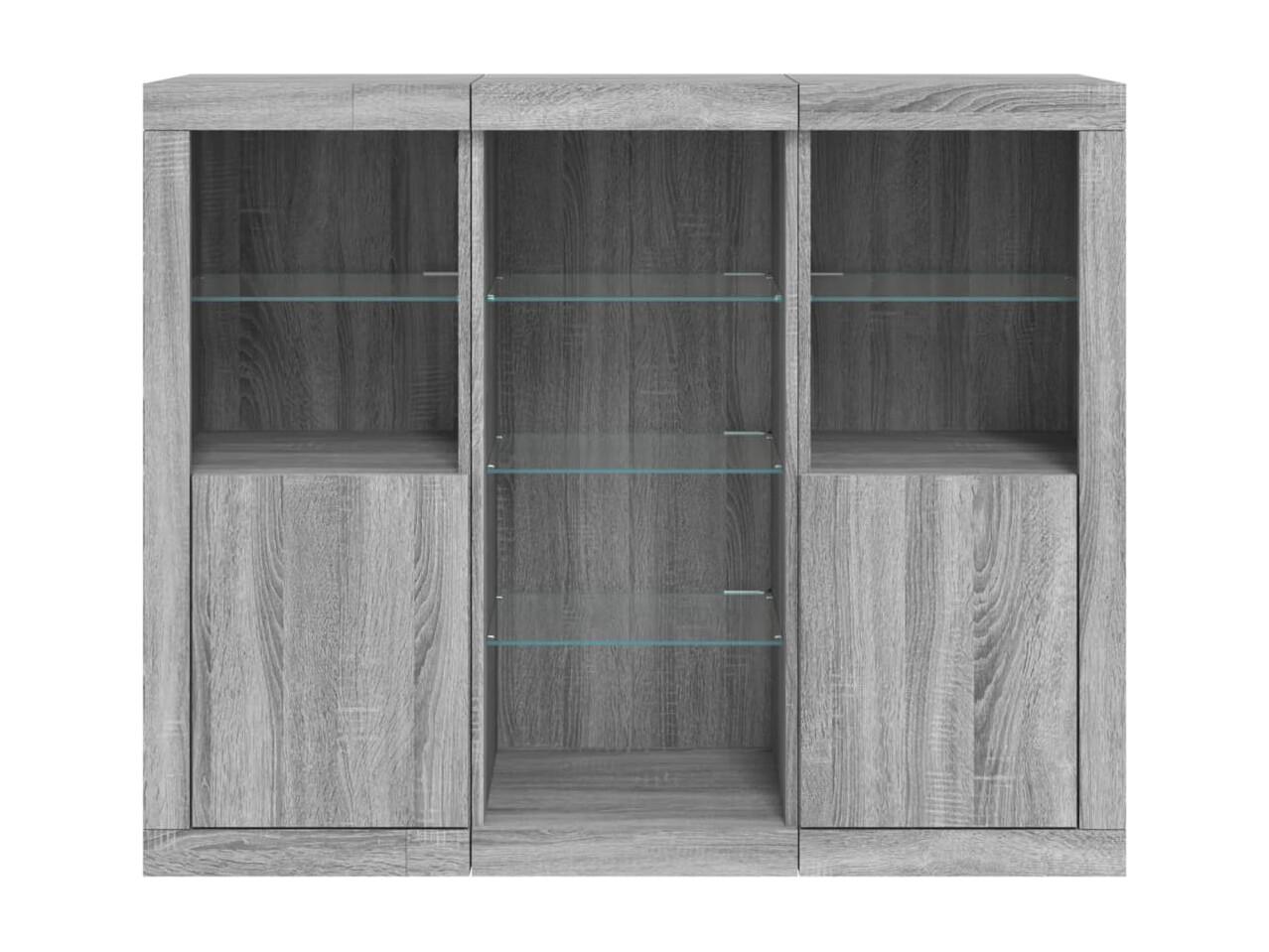 Aparadores com LEDs 3 peças derivados de madeira cinzento sonoma