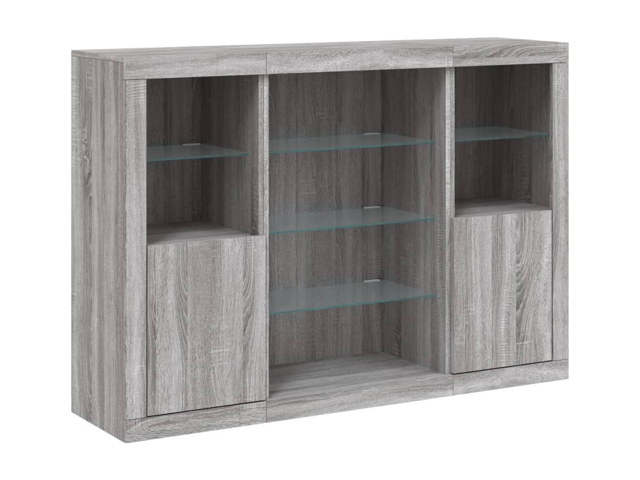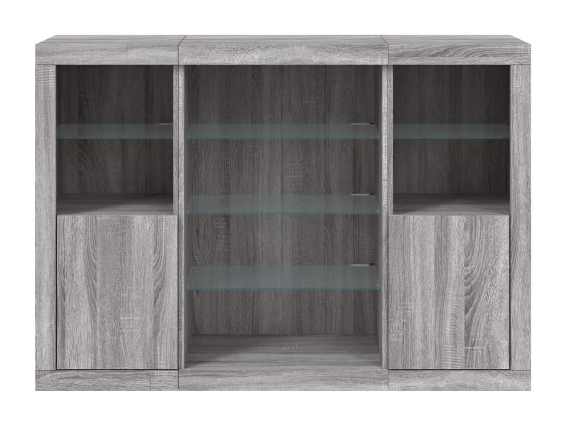 Aparadores com LEDs 3 peças derivados de madeira cinzento sonoma