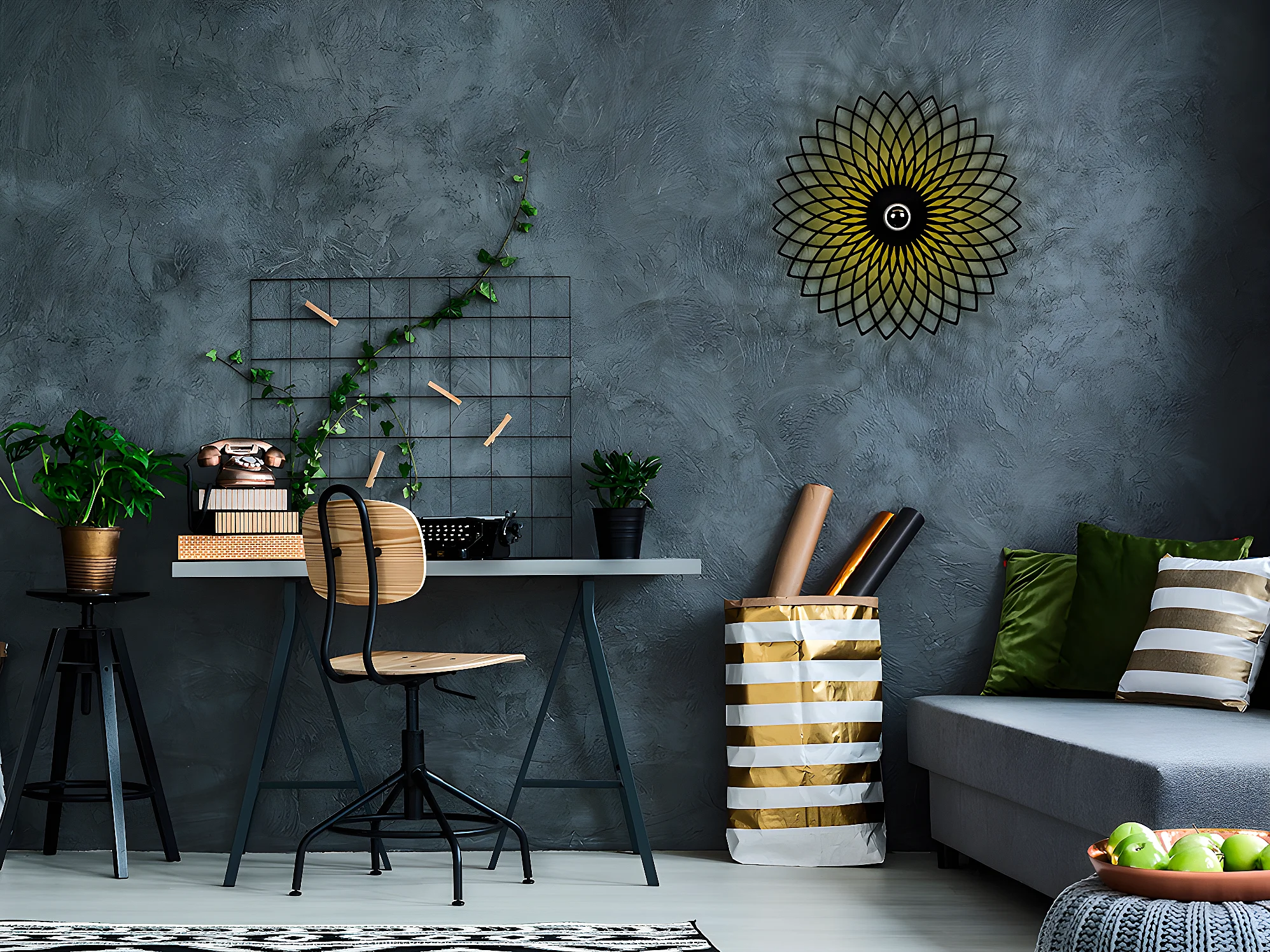 Aplique de parede em metal de D. 50 cm cor preto - FOLINA