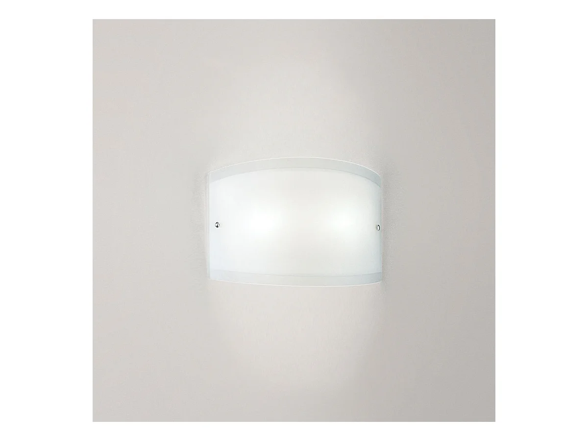 Aplique Nereide 35x14cm em vidro acetinado serigrafado branco 2XE14, candeeiro de parede moderno com base cromada, IP20, max 2x28W