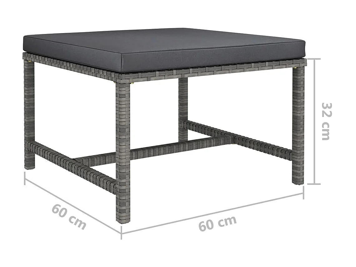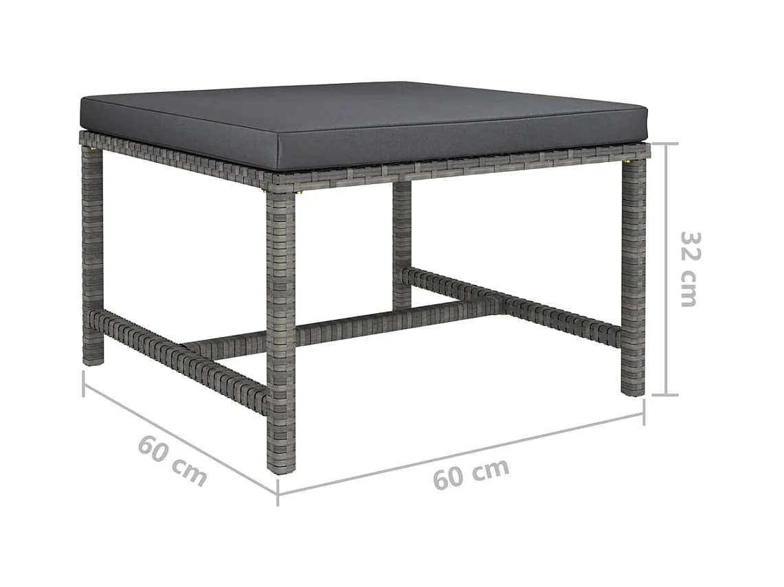 Apoio de pés seccional com almofadão vime PE cinzento PT587674