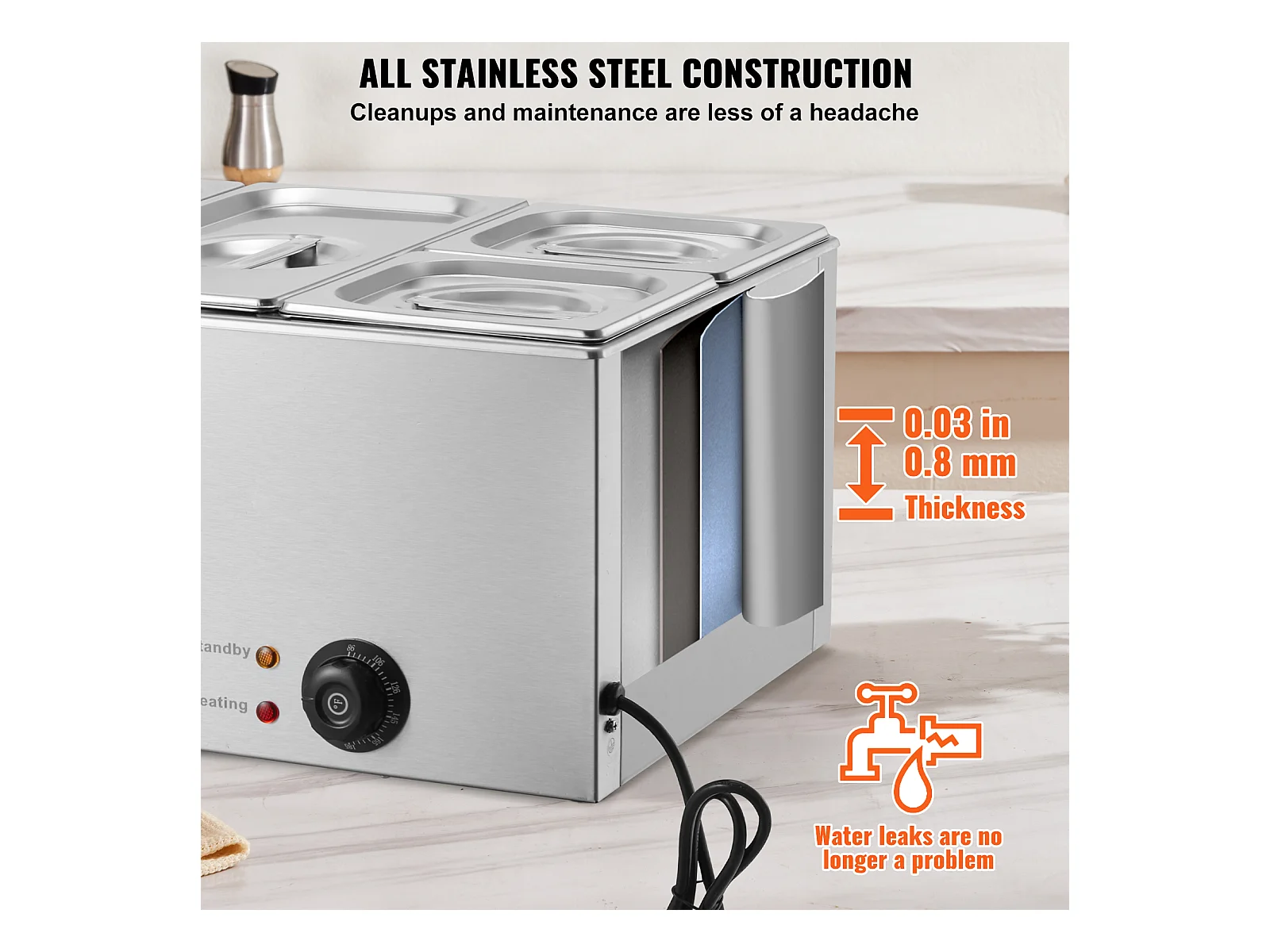 Aquecedor Eléctrico de Pratos SucceBuy para Buffet com 4 Placas Comercial 15.5 L Banho Mariano para Balcão
