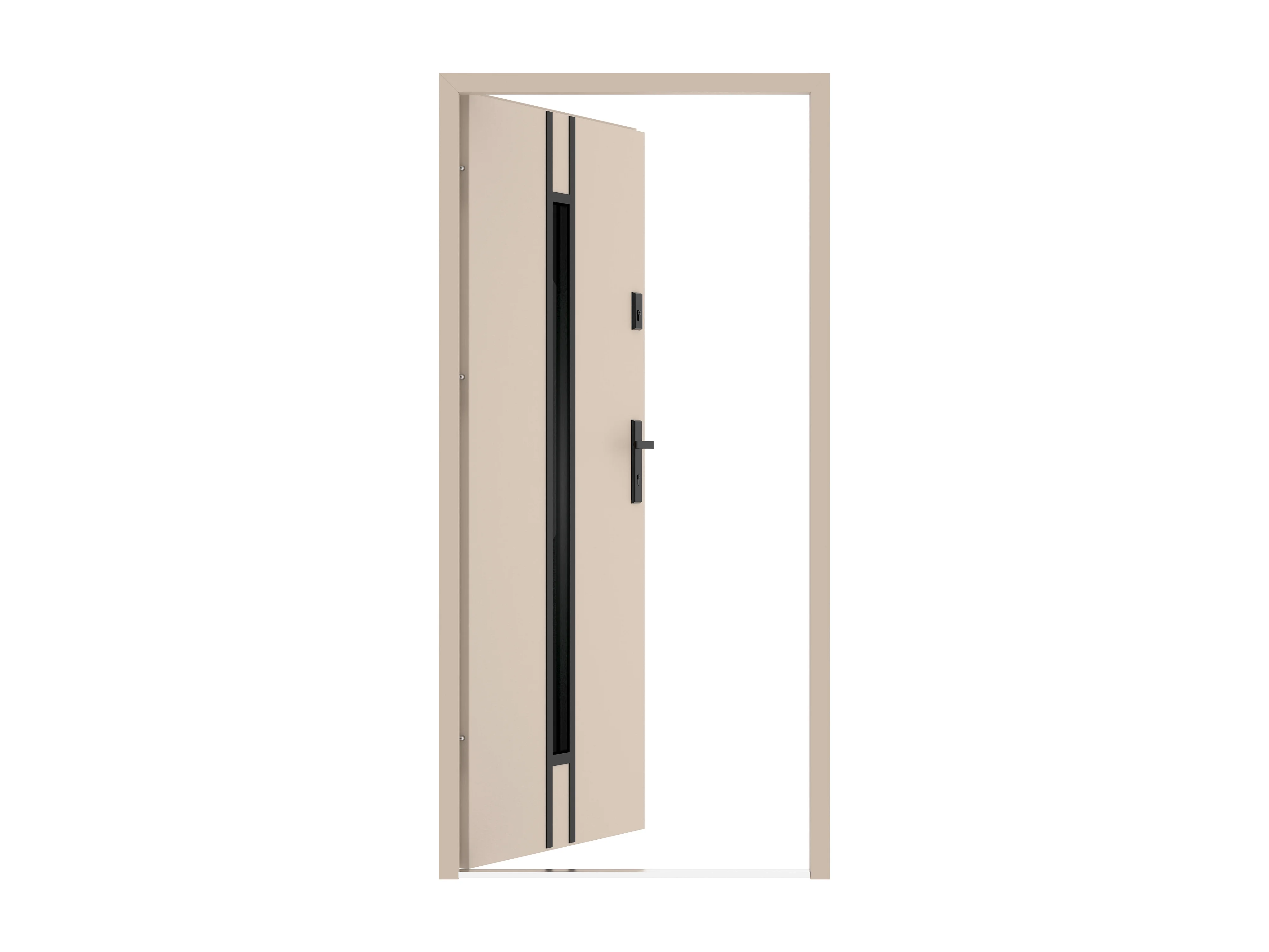 Porta de entrada em aço maciço e inox H207 x C100 cm - vidro fumado - bege - espessura 55 mm - abertura à esquerda - ARICANE